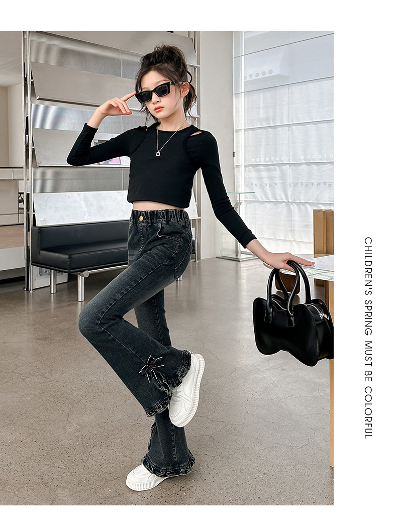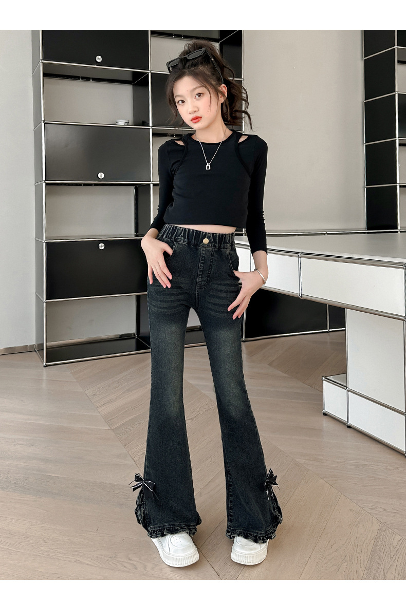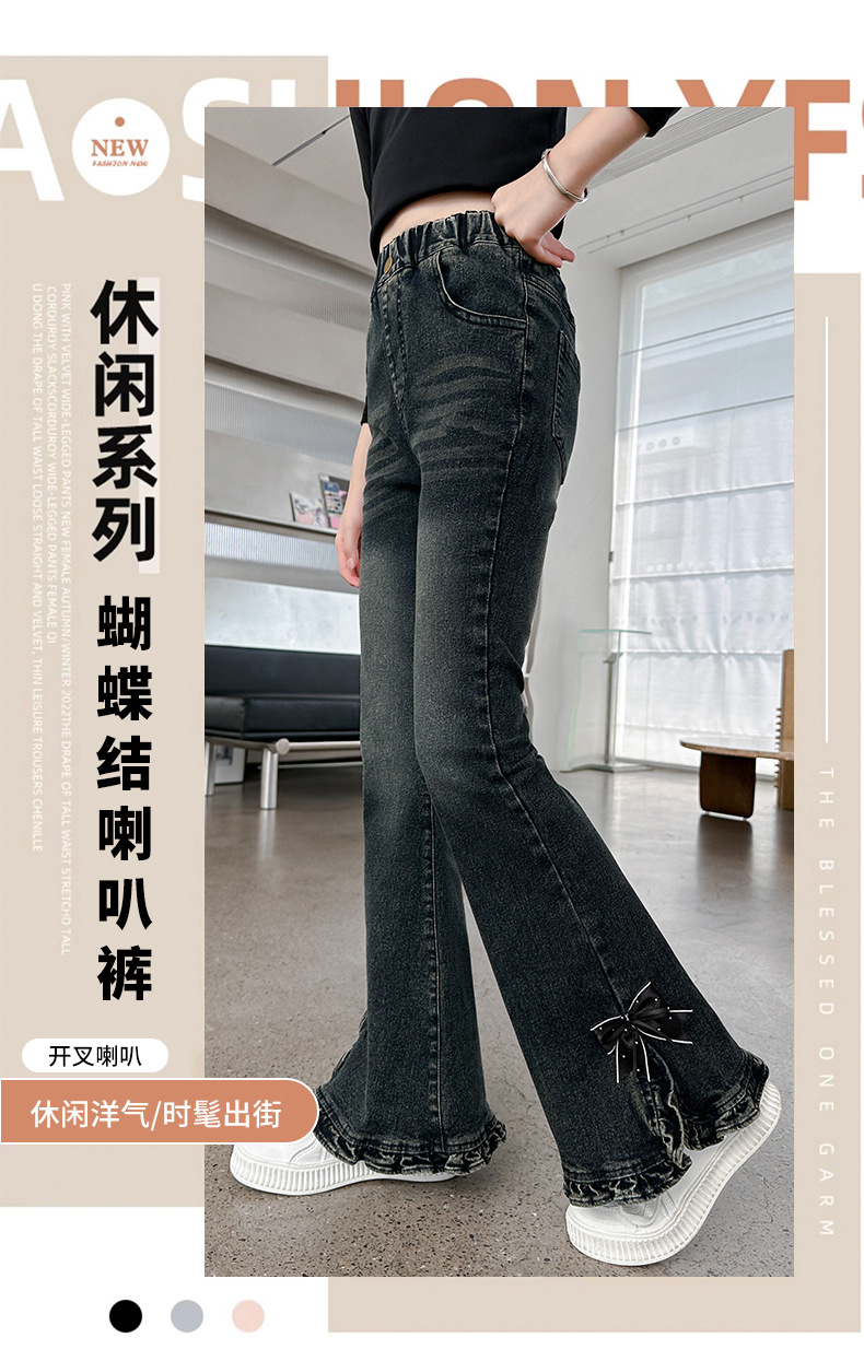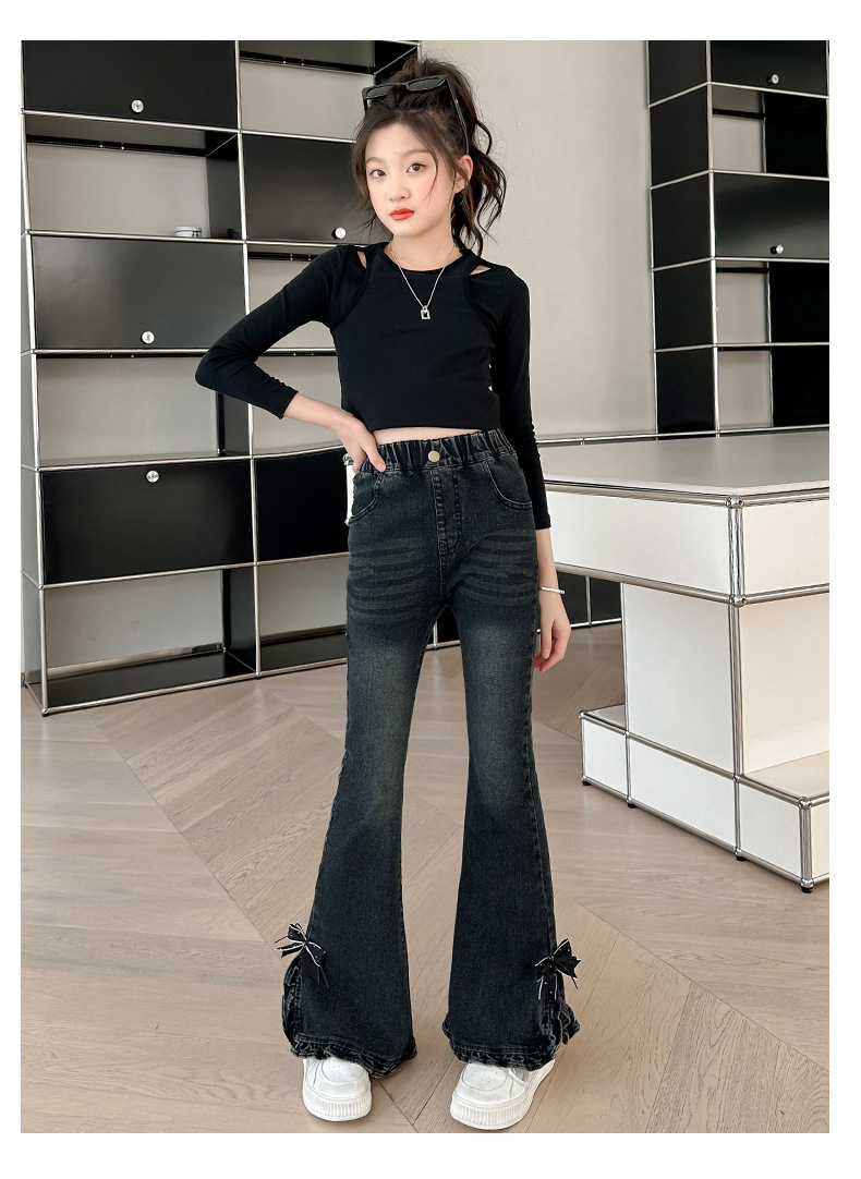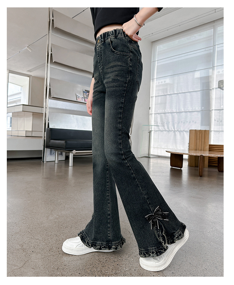 소녀 기모 가을 및 겨울 새로운 대형 어린이 두꺼운 원피스 슬림 바지 외국식 어린이 청바지스토어 가기