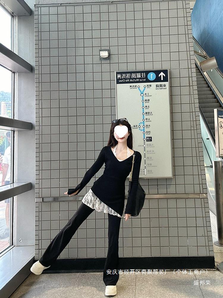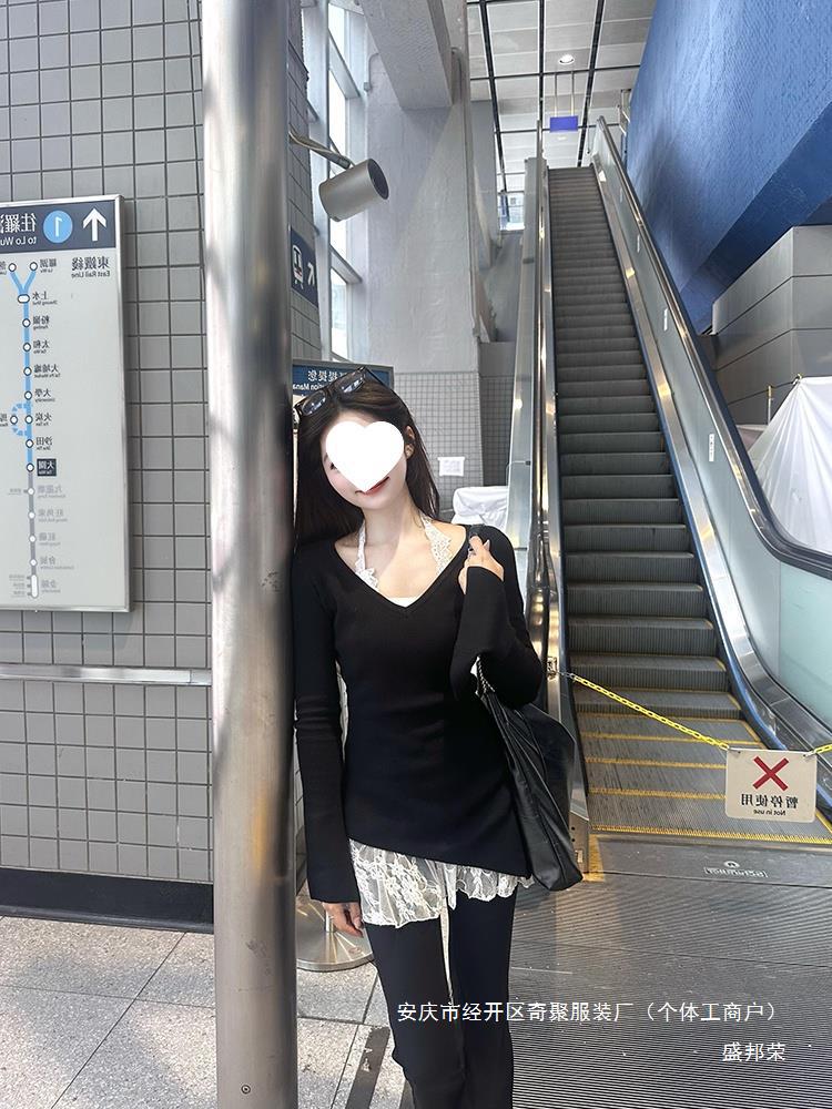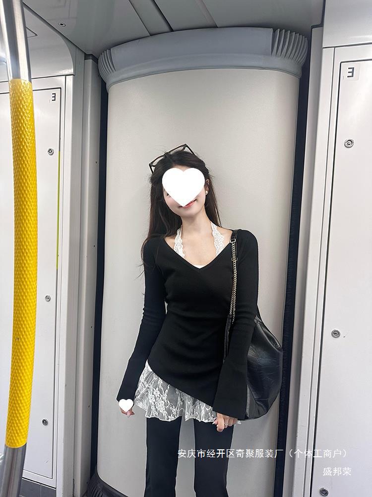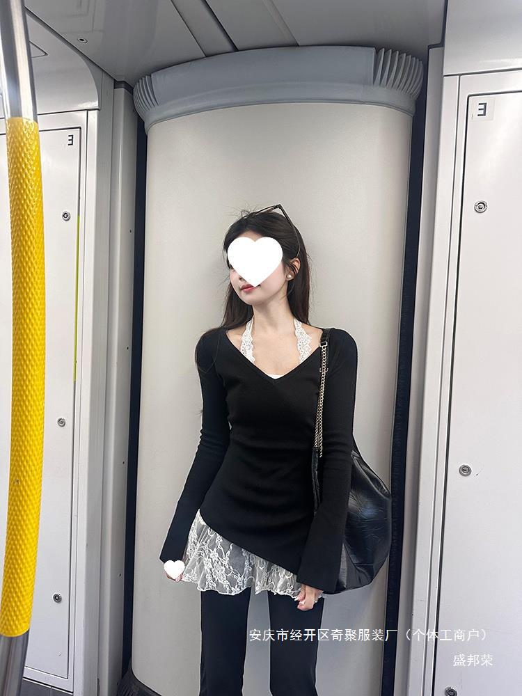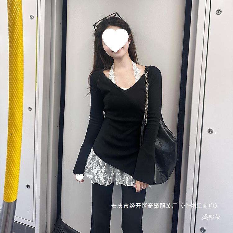 공장 레이스 센스 블랙 분위기 새로운 초가을 착용 한국 스타일 게으른 스타일 목 투피스 스택 스웨터 여성용 바늘스토어 가기