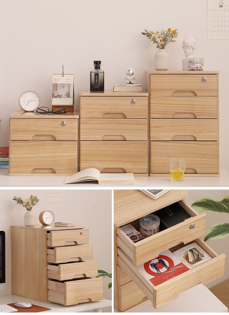 잠금 서랍 형 데스크탑 저장 캐비닛 침실 사무실 A4 식료품 캐비닛 나무가있는 단단한 나무 데스크탑 보관 상자