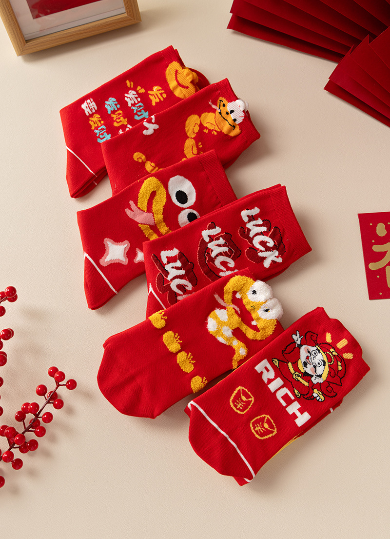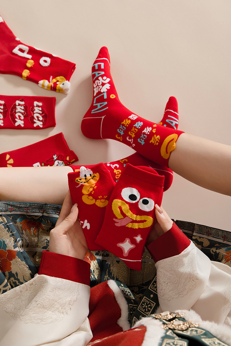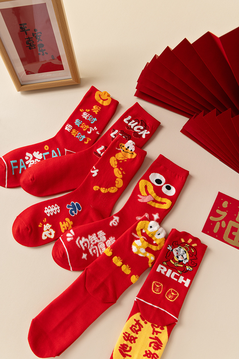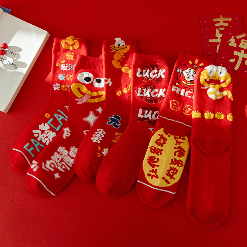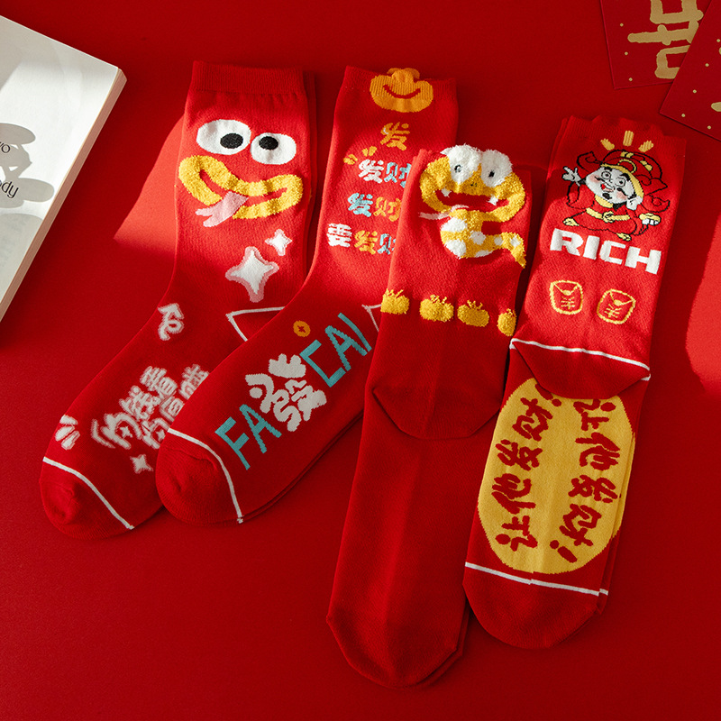 여성과 남성 출생을위한 빨간 양말 조디악 뱀 년 빗 코튼 커플 수 놓은 큰 빨간 결혼식 코튼 미드 양말스토어 가기