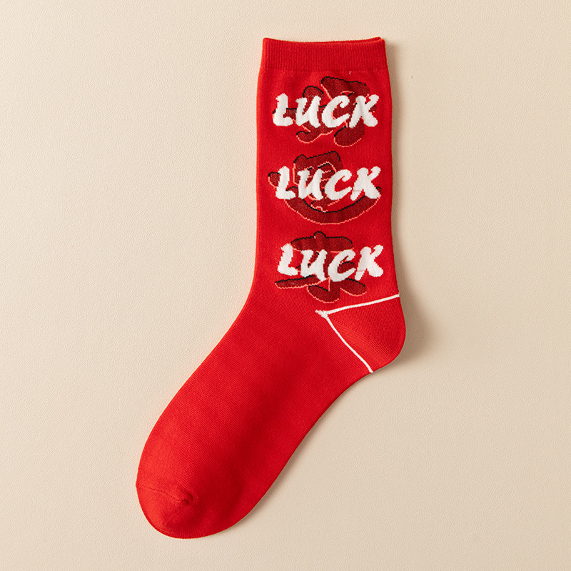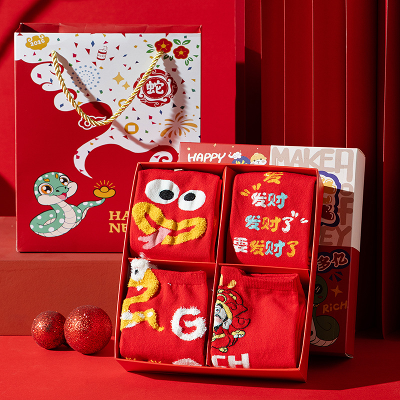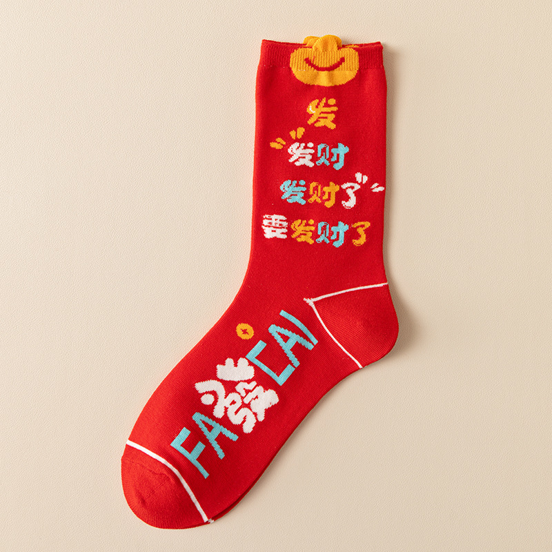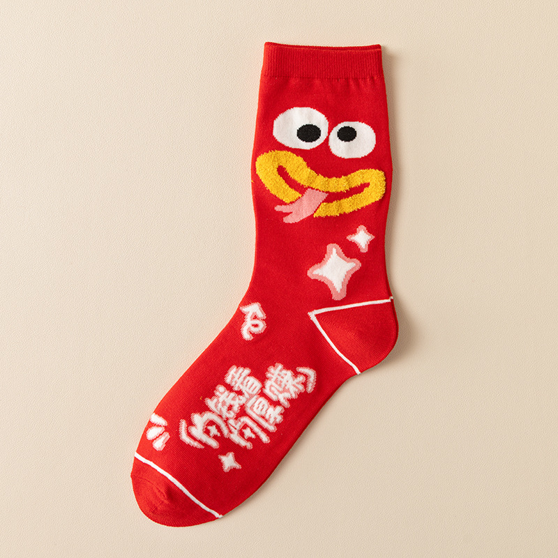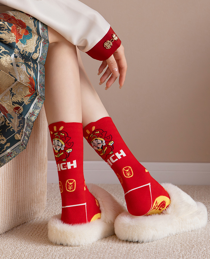 여성과 남성 출생을위한 빨간 양말 조디악 뱀 년 빗 코튼 커플 수 놓은 큰 빨간 결혼식 코튼 미드 양말스토어 가기