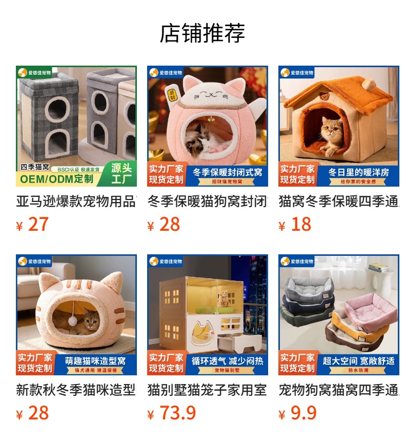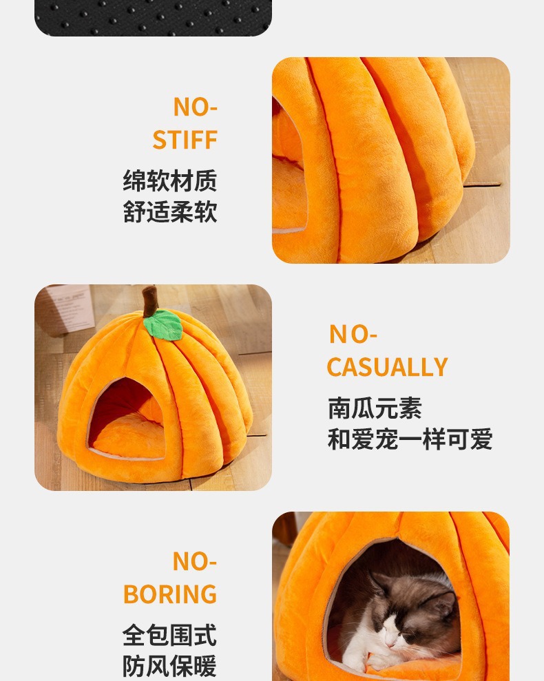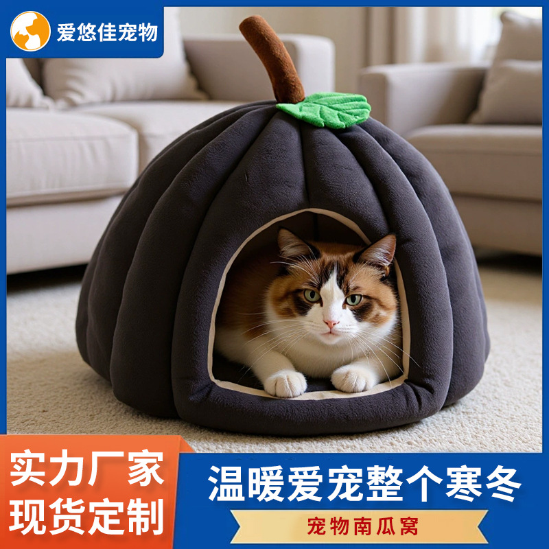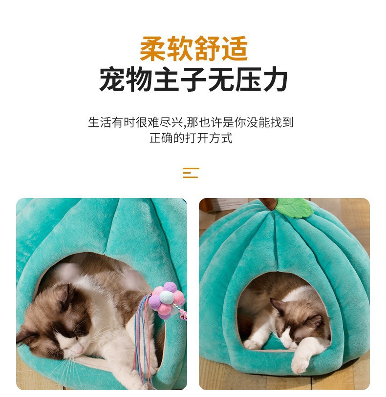 가을 겨울용 두꺼운 보온 반폐쇄형 애완동물 침대, 탈부착 및 세탁 가능, 고양이와 강아지 모두 사용 가능, 사계절용 고양이 침대 및 강아지 침대 매트스토어 가기