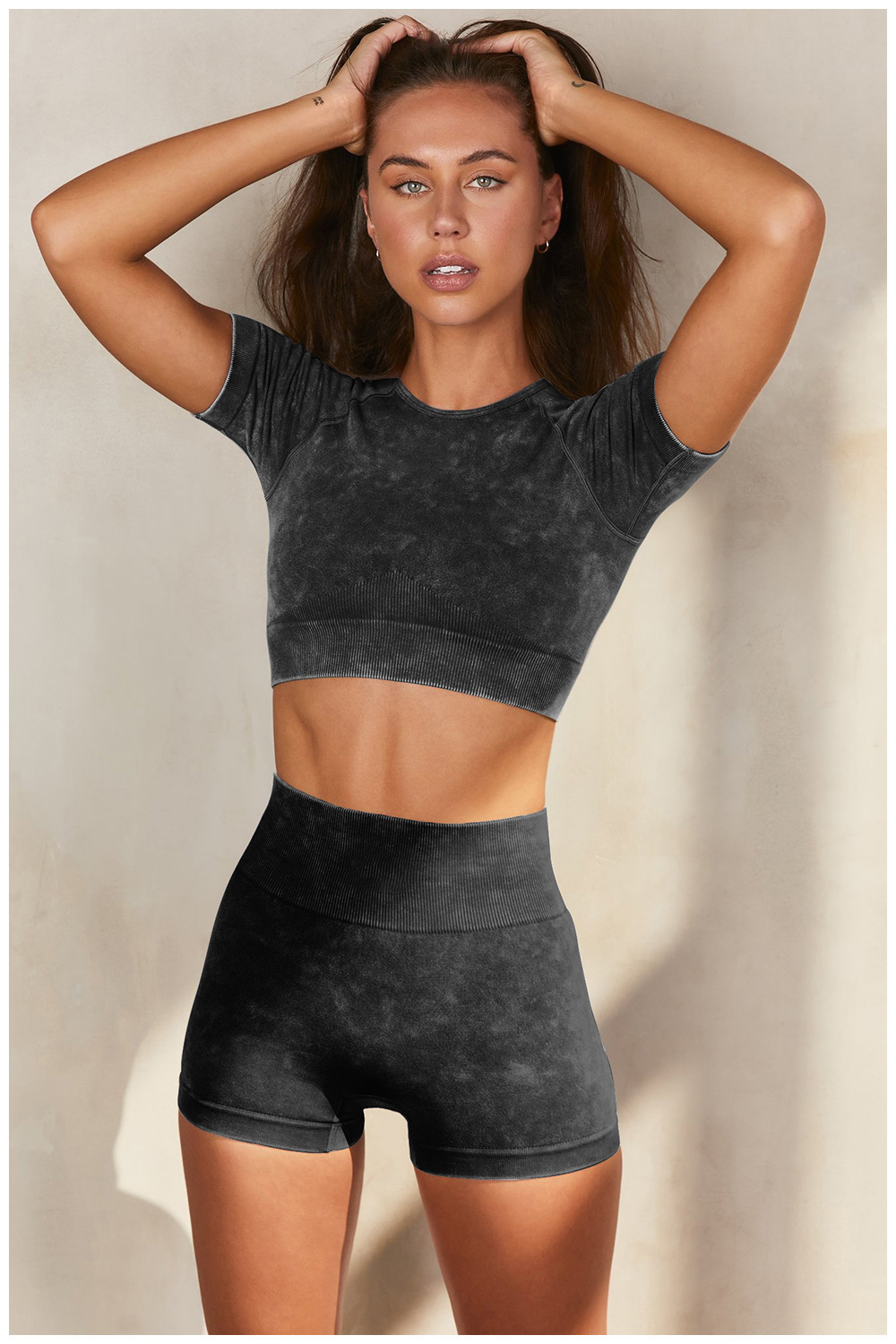 국경 간 유럽과 미국의 요가 의류 세트 여성 투피스 세트 고급 반팔 여름 스포츠 반바지 피트니스 의류 여성 세트스토어 가기