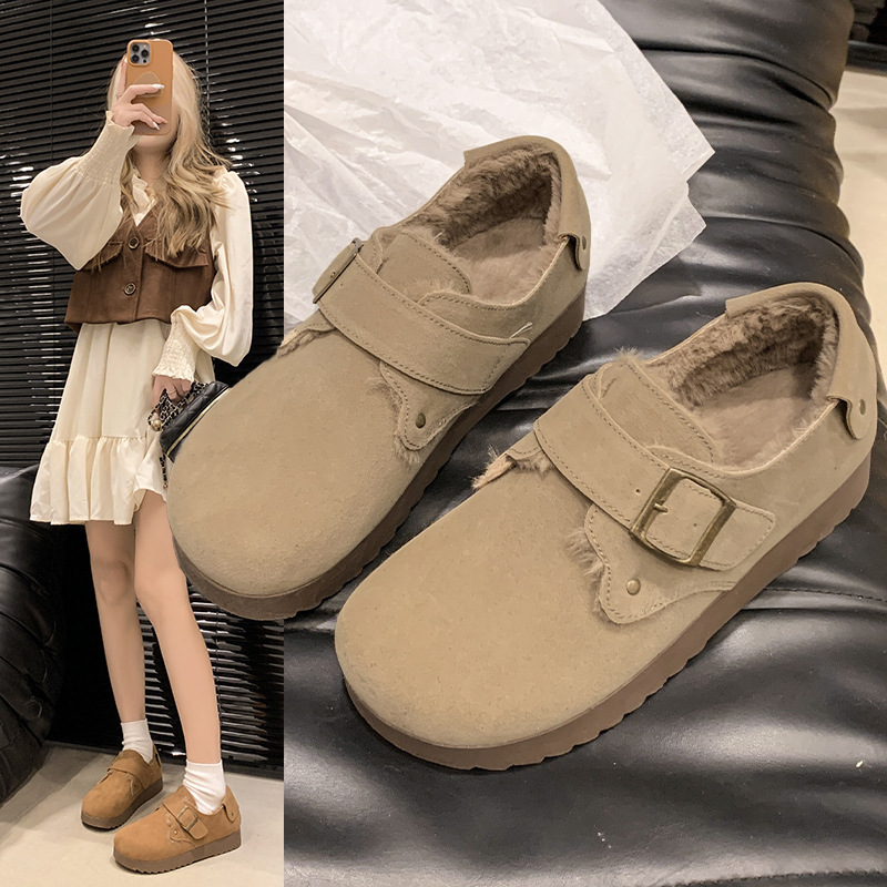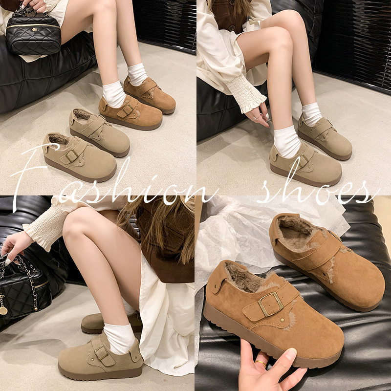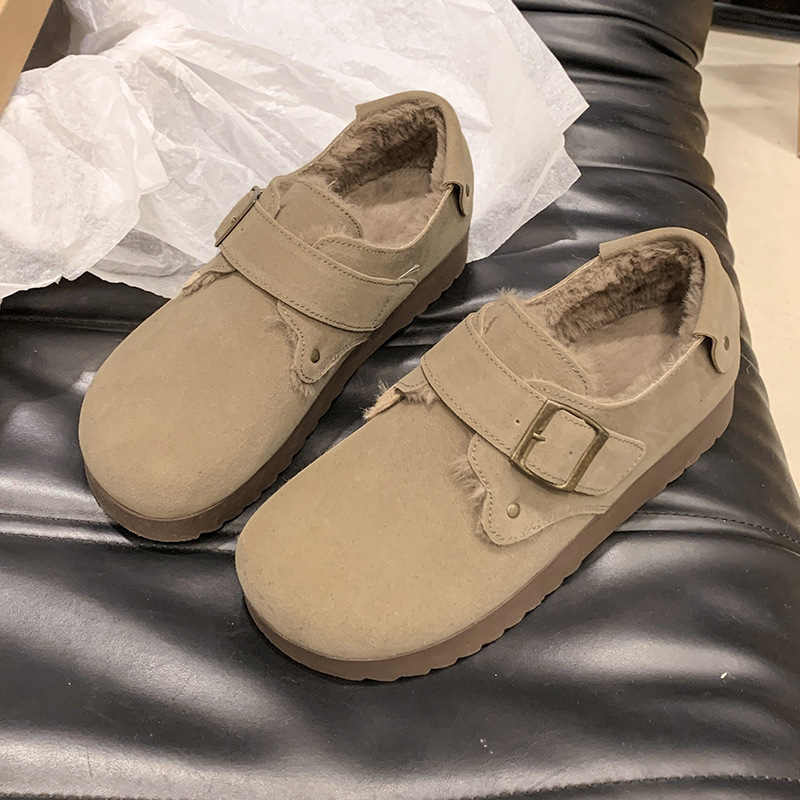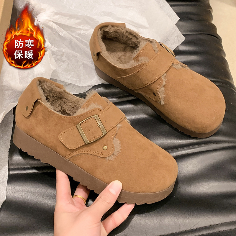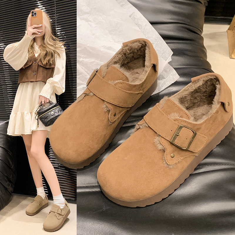 기모 보켄 신발 여성의 2024 겨울 소프트 솔 의상 캐주얼 레트로 슬립 온 기모 콩 신발 여성스토어 가기