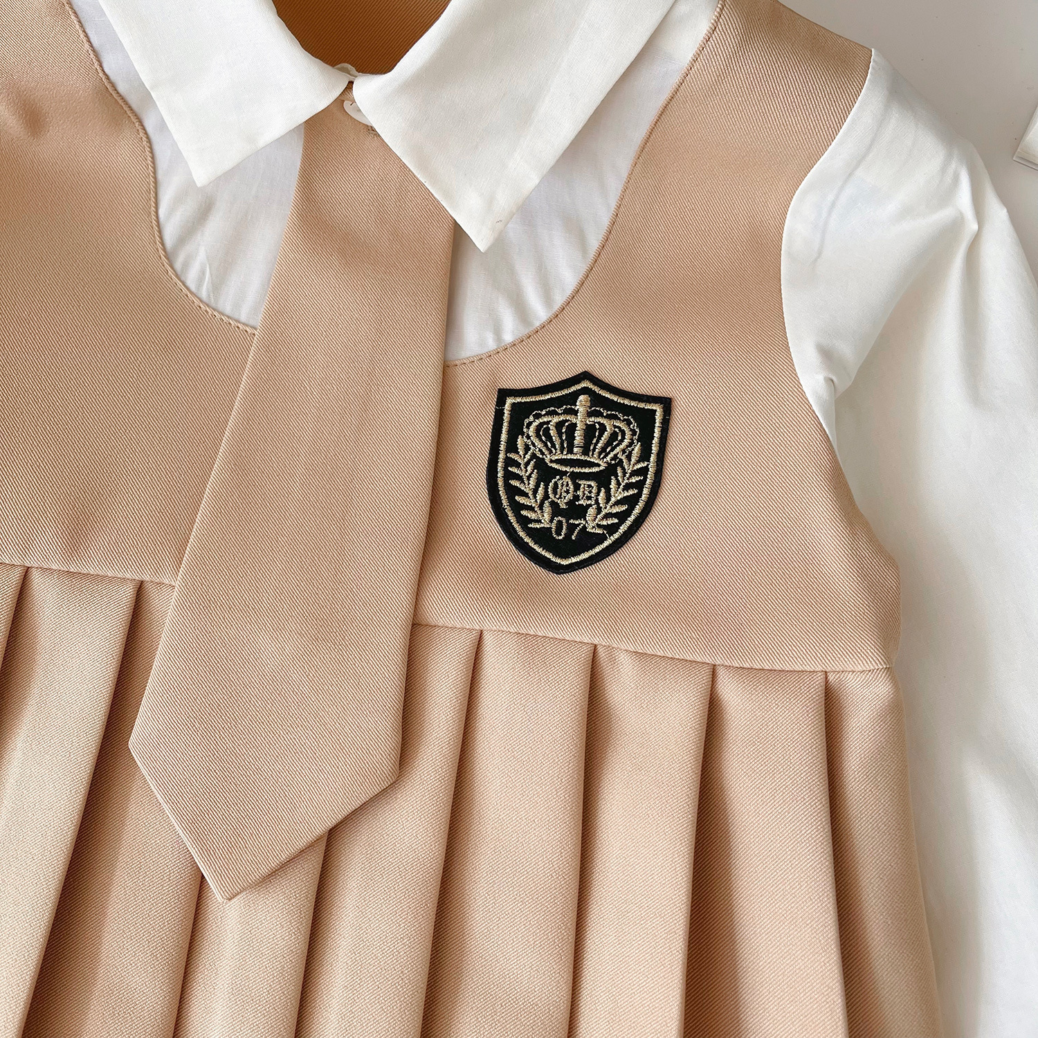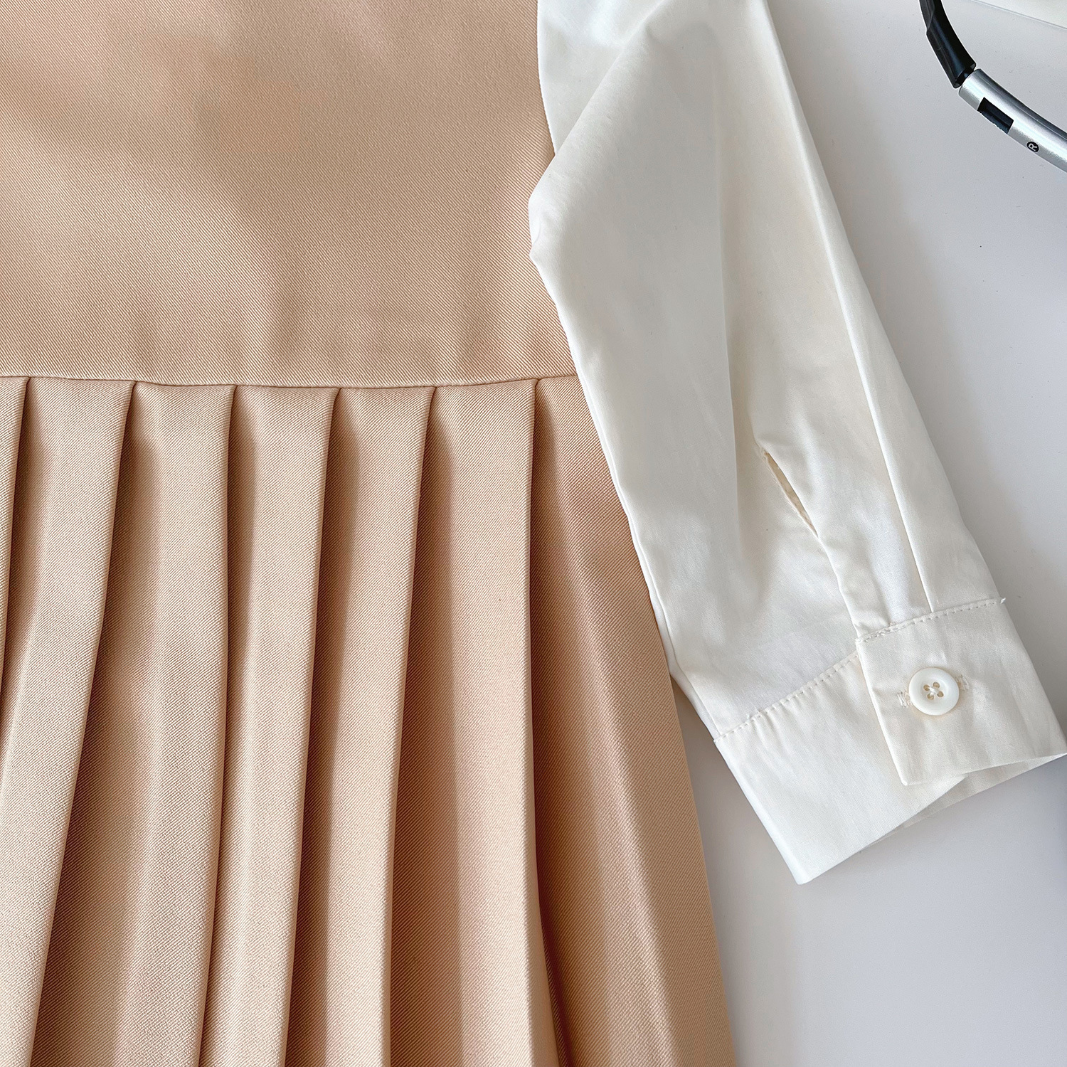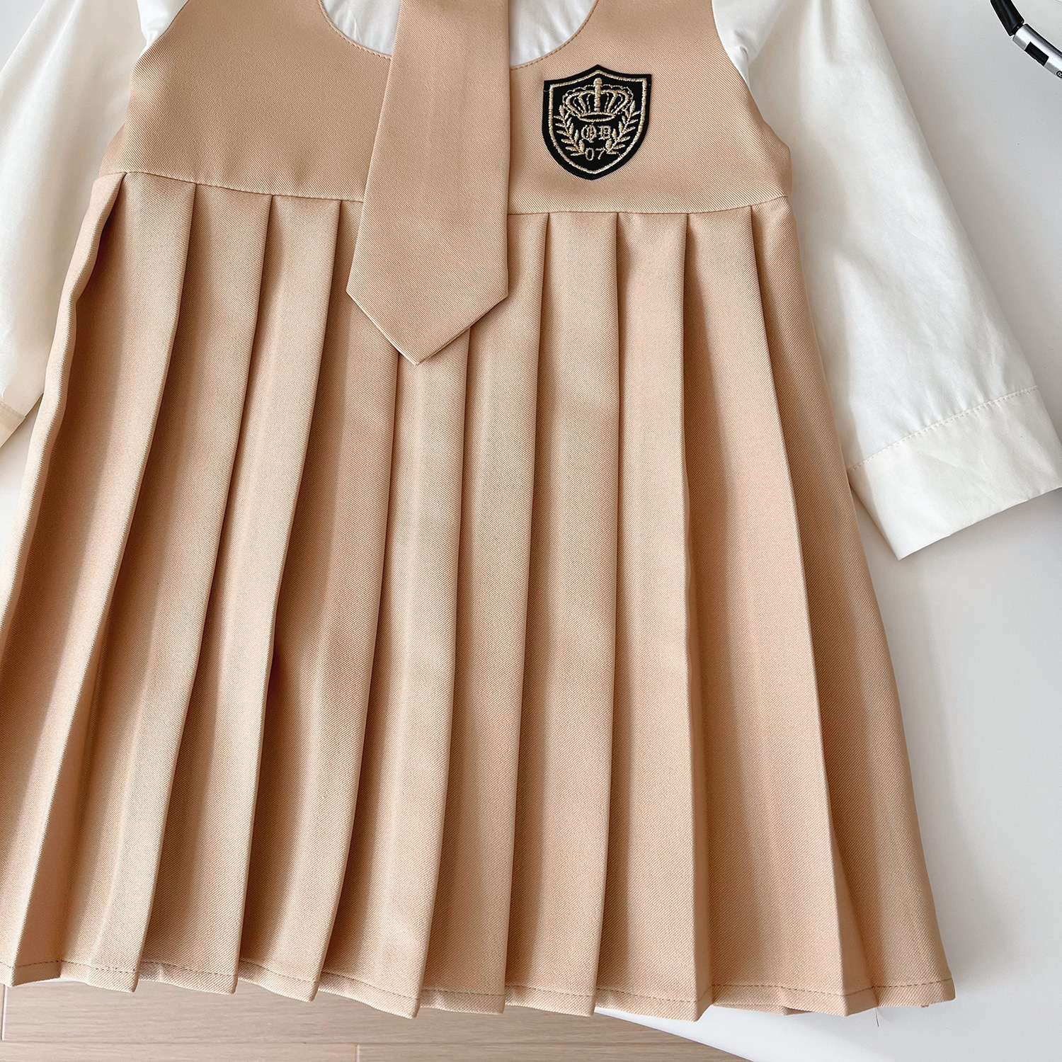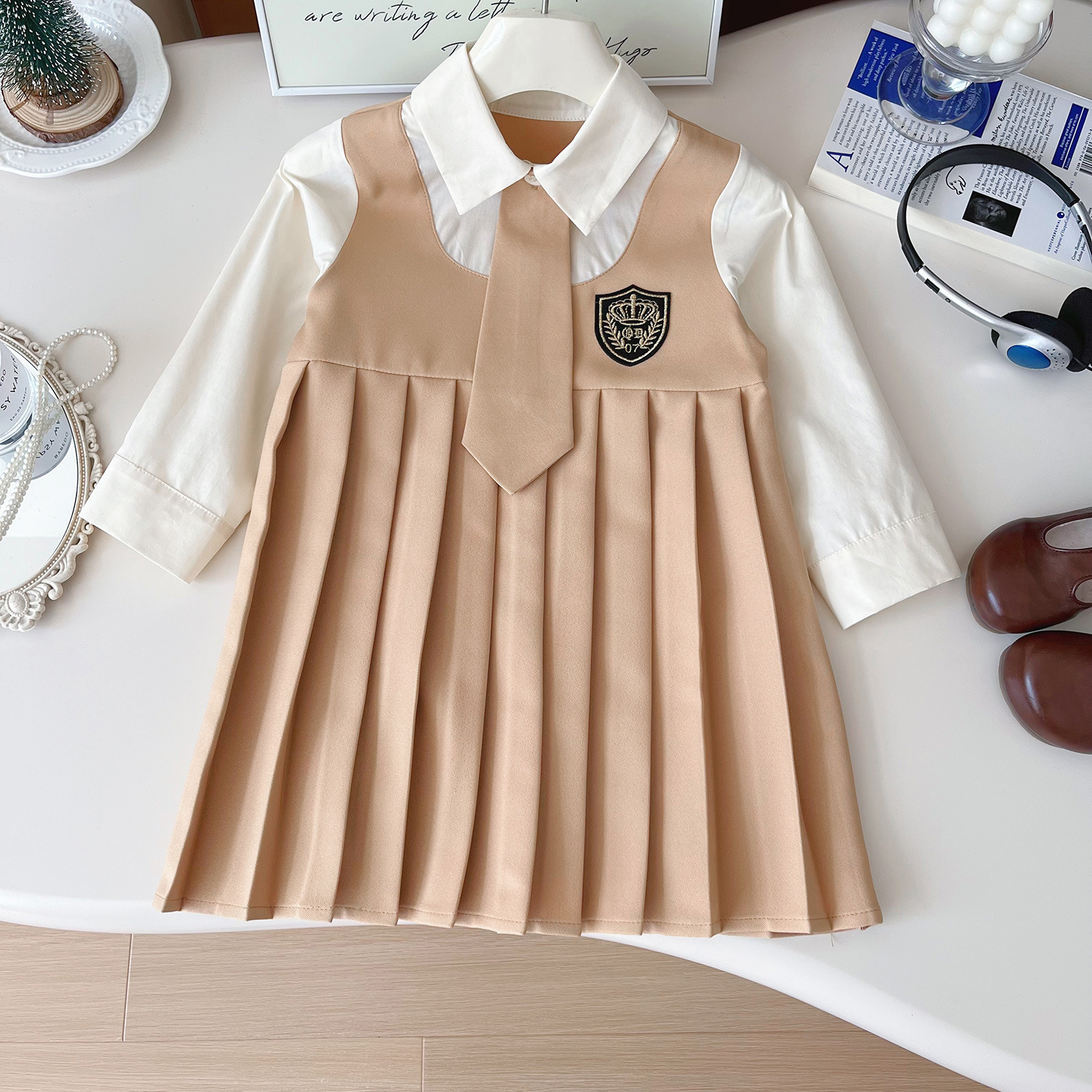 가을 2024 새로운 한국 여자 긴팔 셔츠 주름 치마 가짜 투피스 세트 학업 스타일 원피스 67363