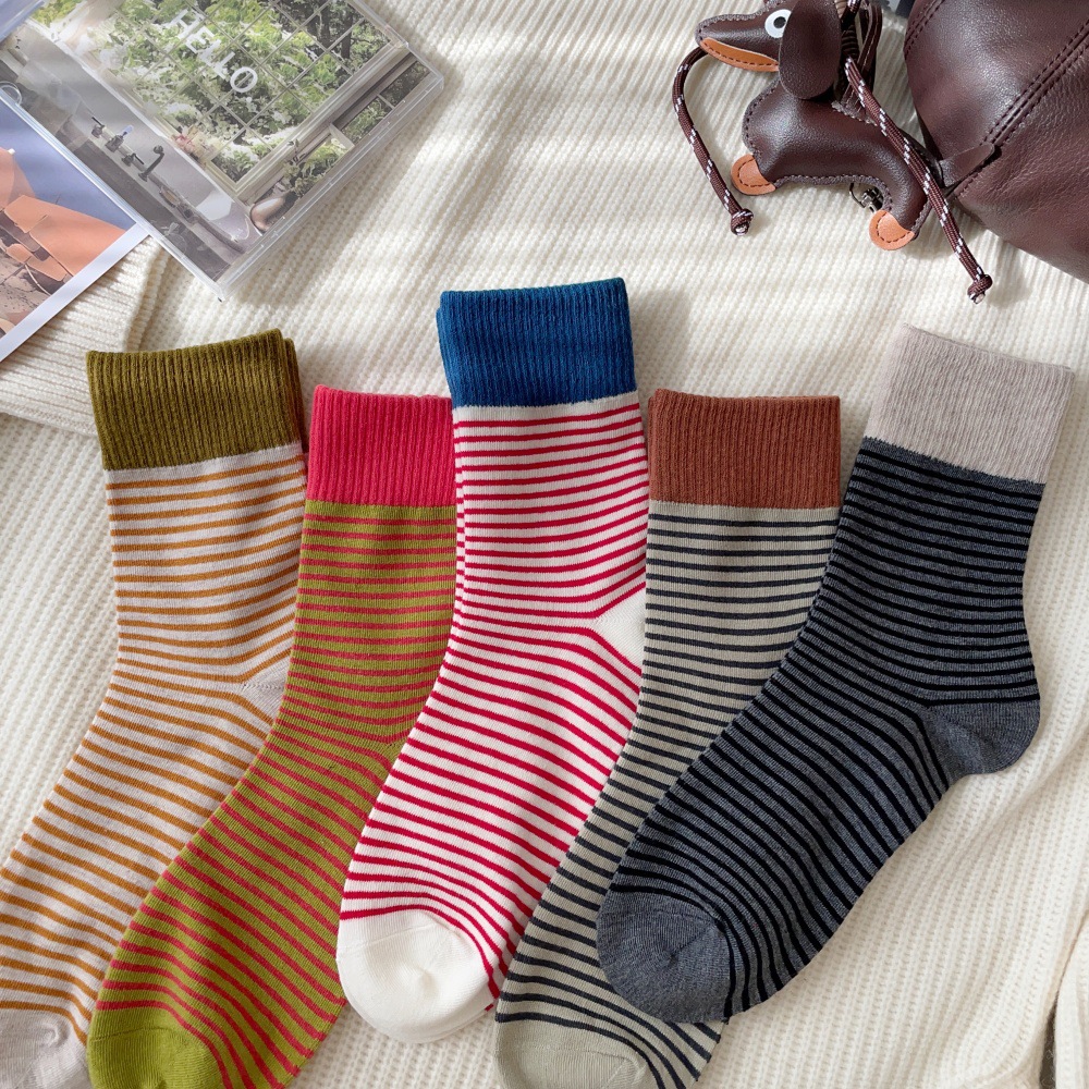 컬러 매칭 스트라이프 양말 어린이 가을 · 겨울 대비 라커우 중장 양말… 일본 한국 동대문 학생들 패딩 스타킹스토어 가기