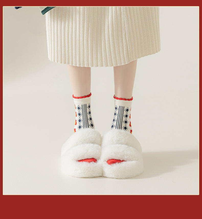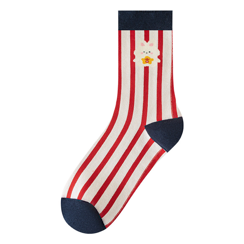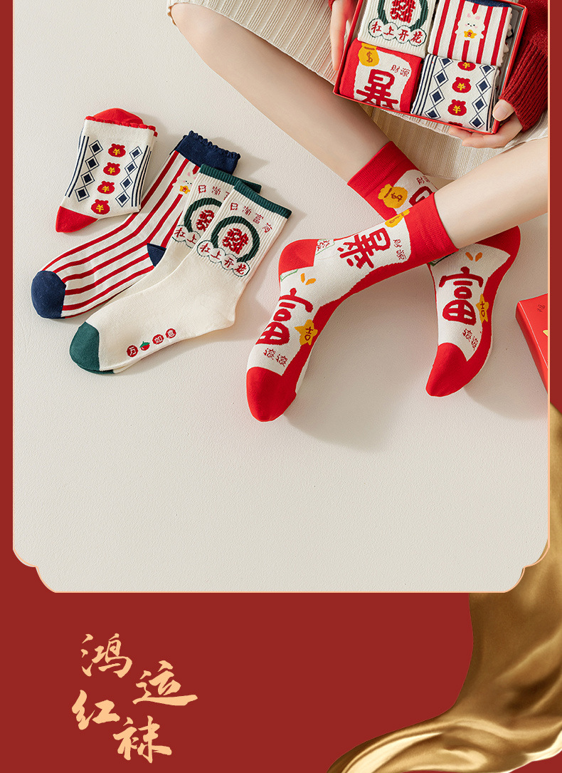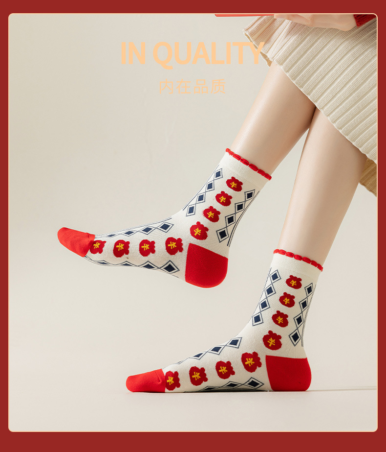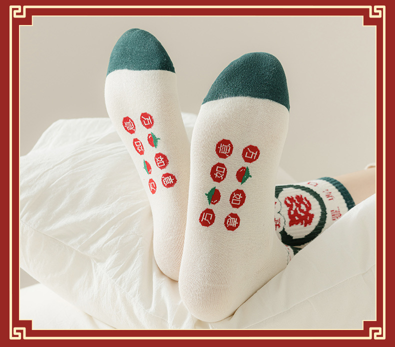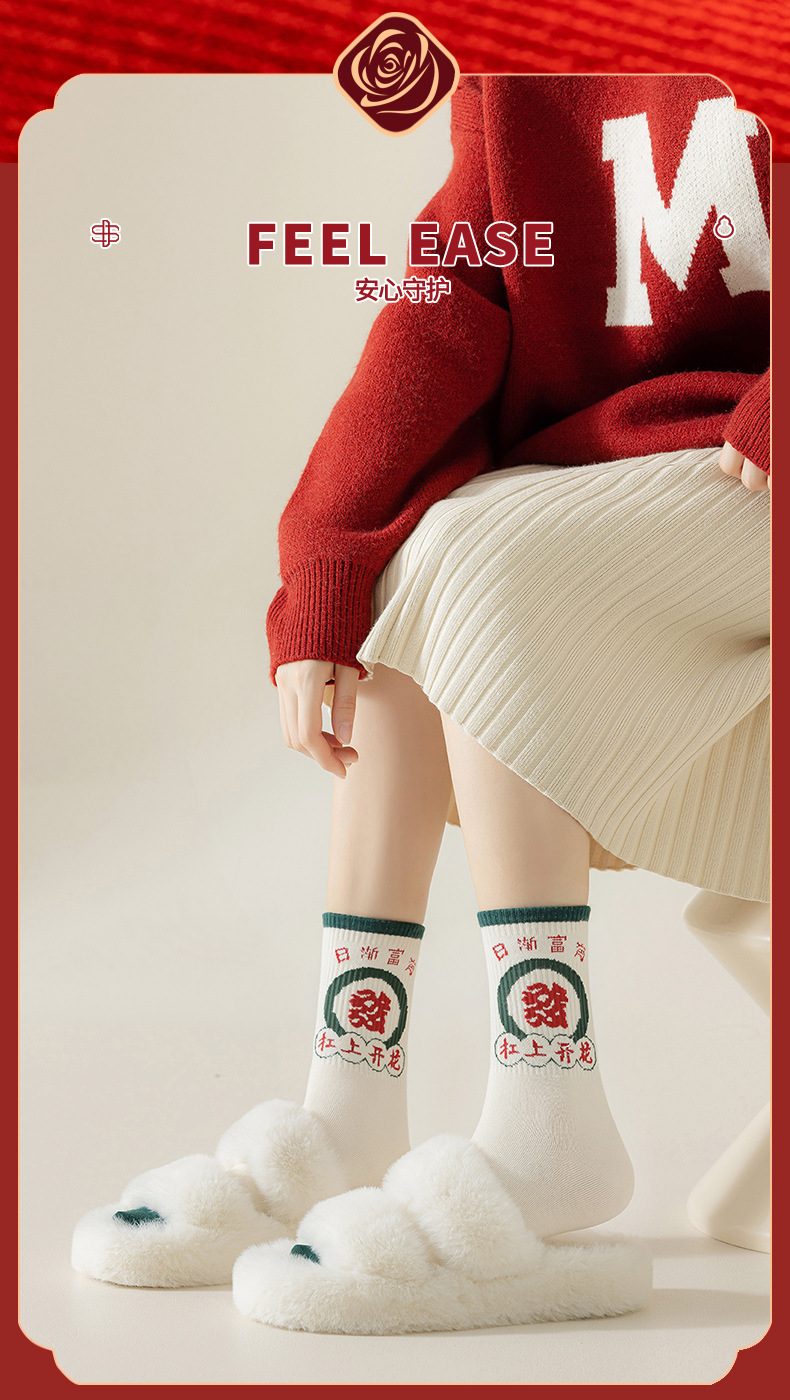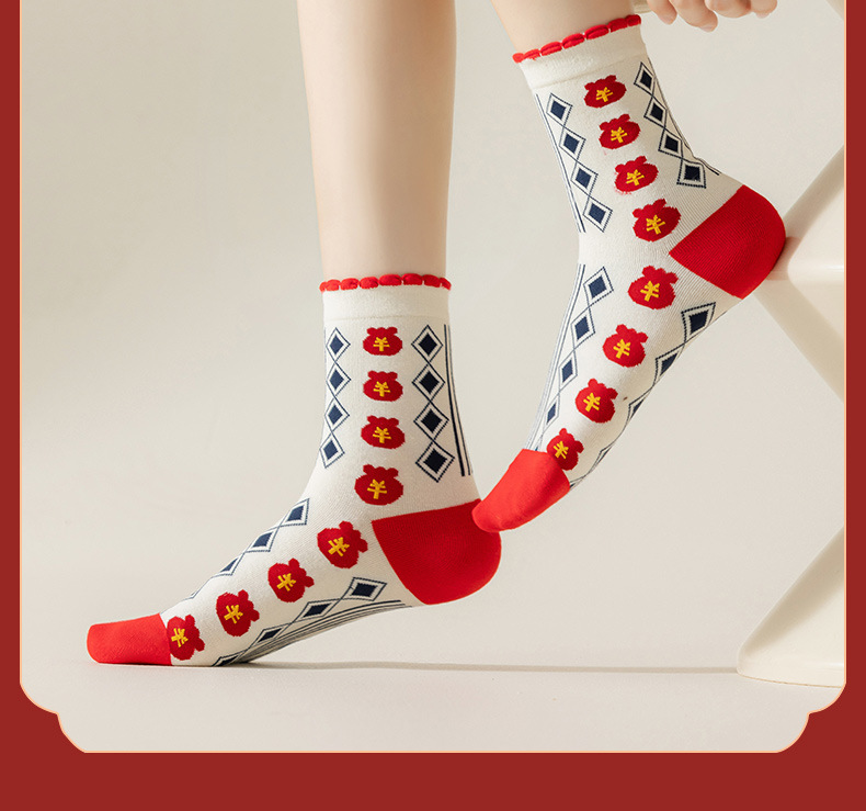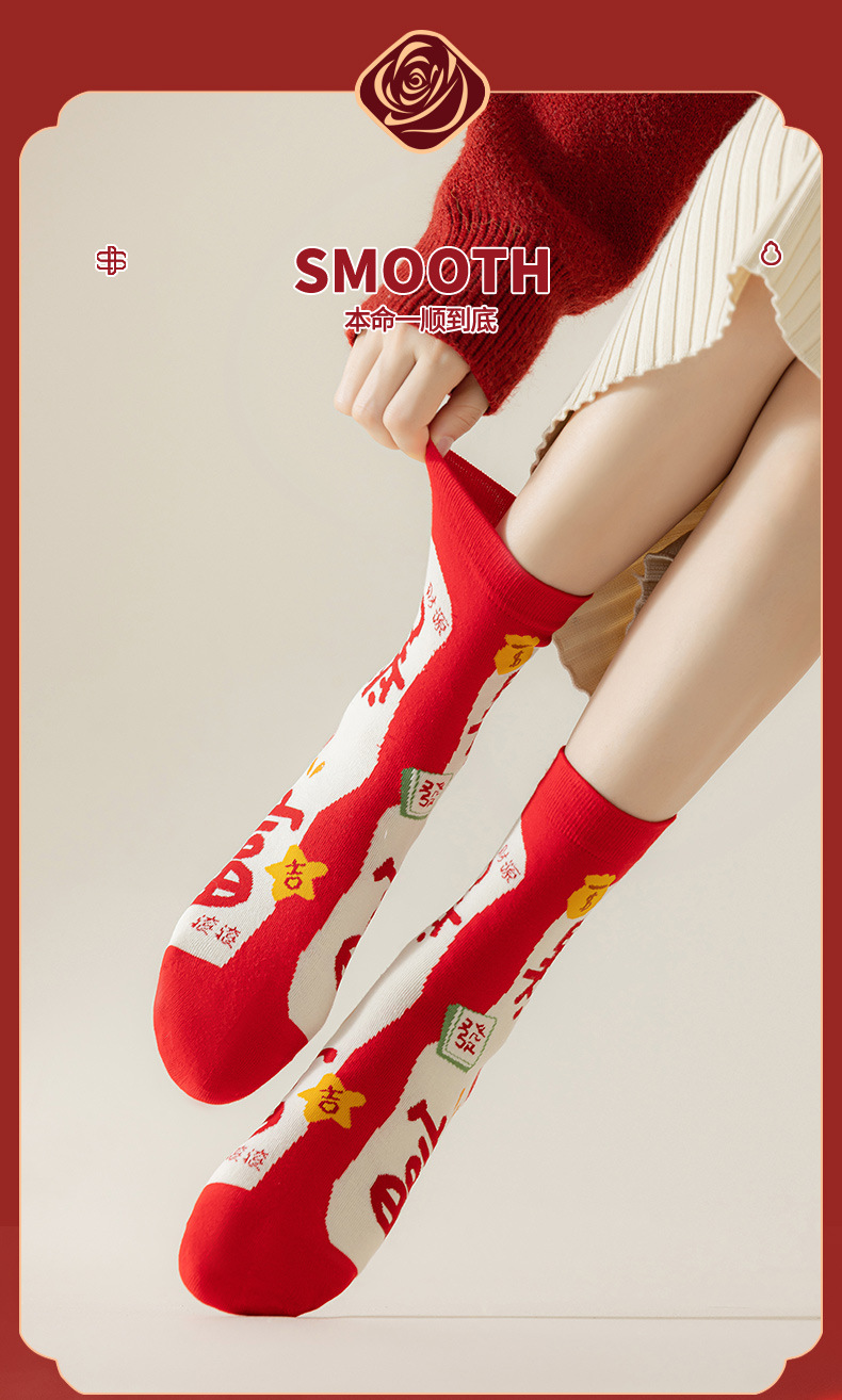 붉은 양말 여성의 가을과 겨울 면화 양말 중간 튜브 양말 Ins 트렌디 한 작은 빨간 책 빨간 양말 뱀 새해 양말 여성