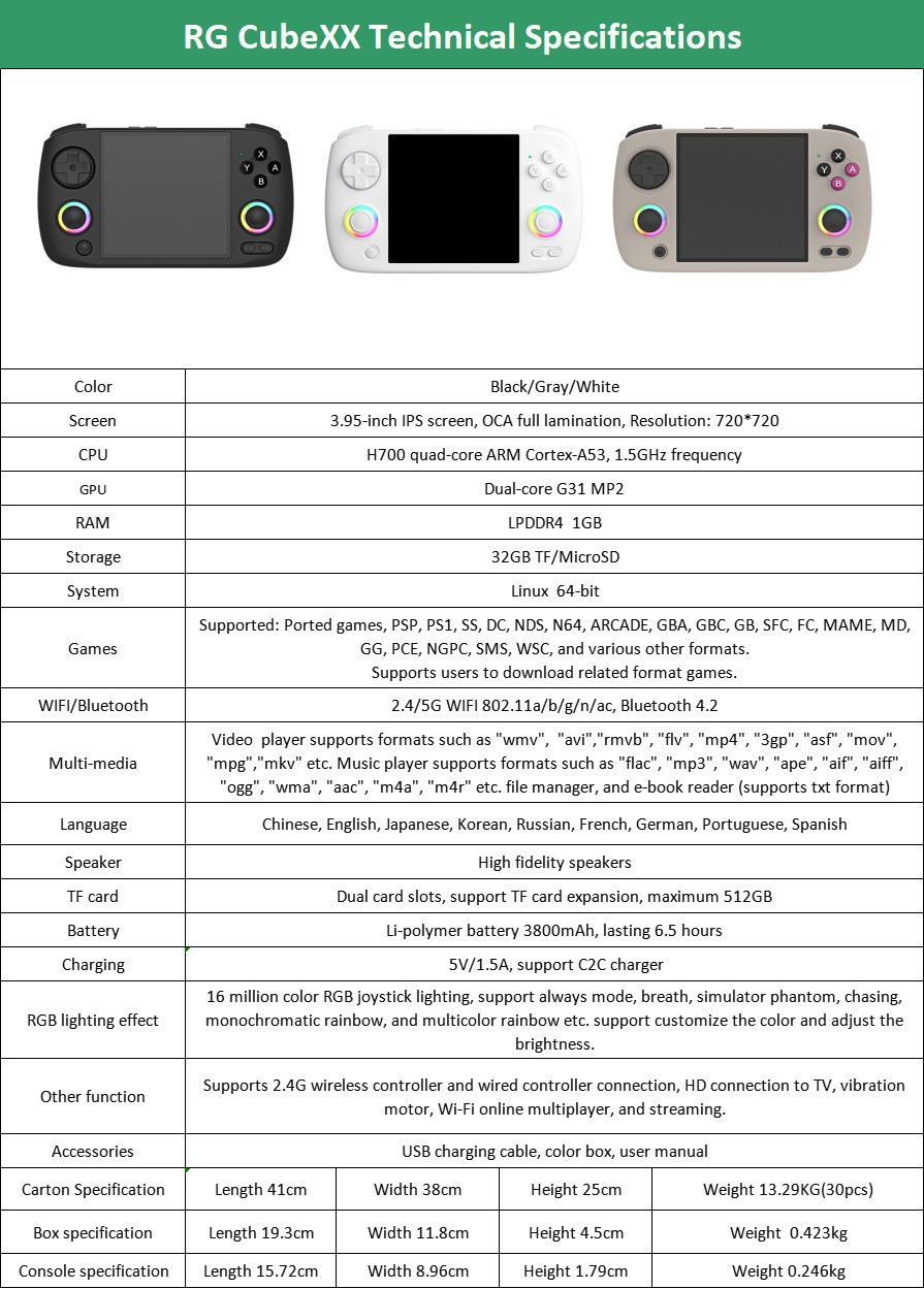 • RG CubeXX 32G에는 게임이 기본으로 제공됩니다.