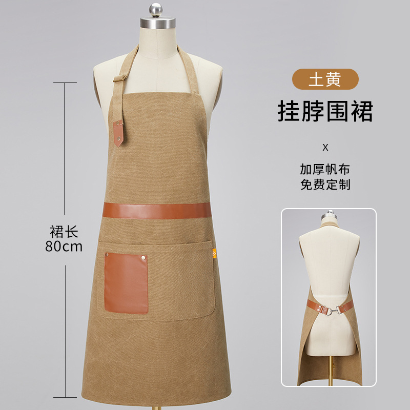 노란색 방수 캔버스 앞치마 맞춤 로고 인쇄 케이터링 특수 우유 차 가게 스낵 하우스 슈퍼마켓 작업복 여성스토어 가기