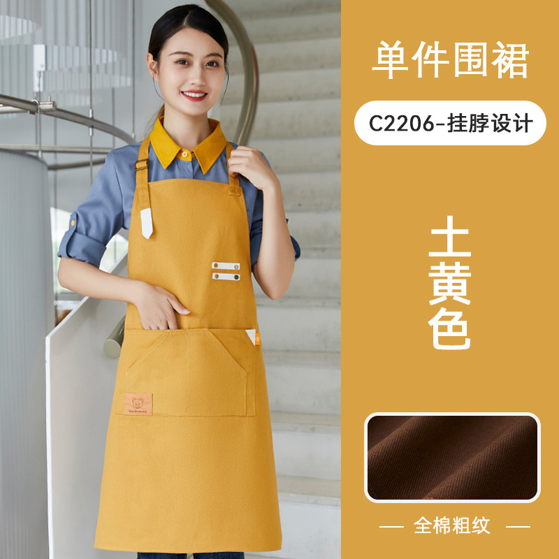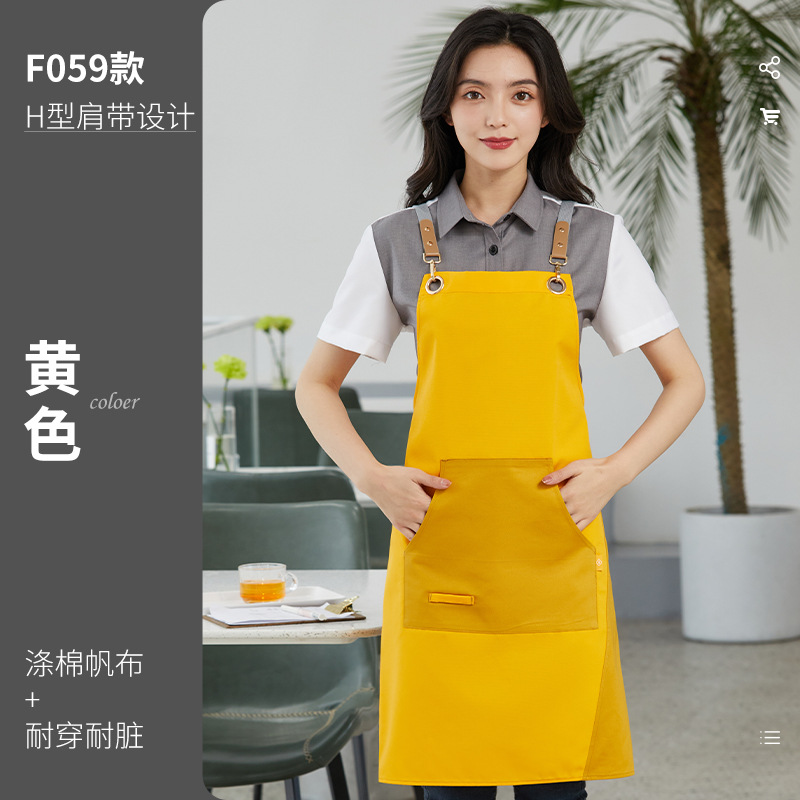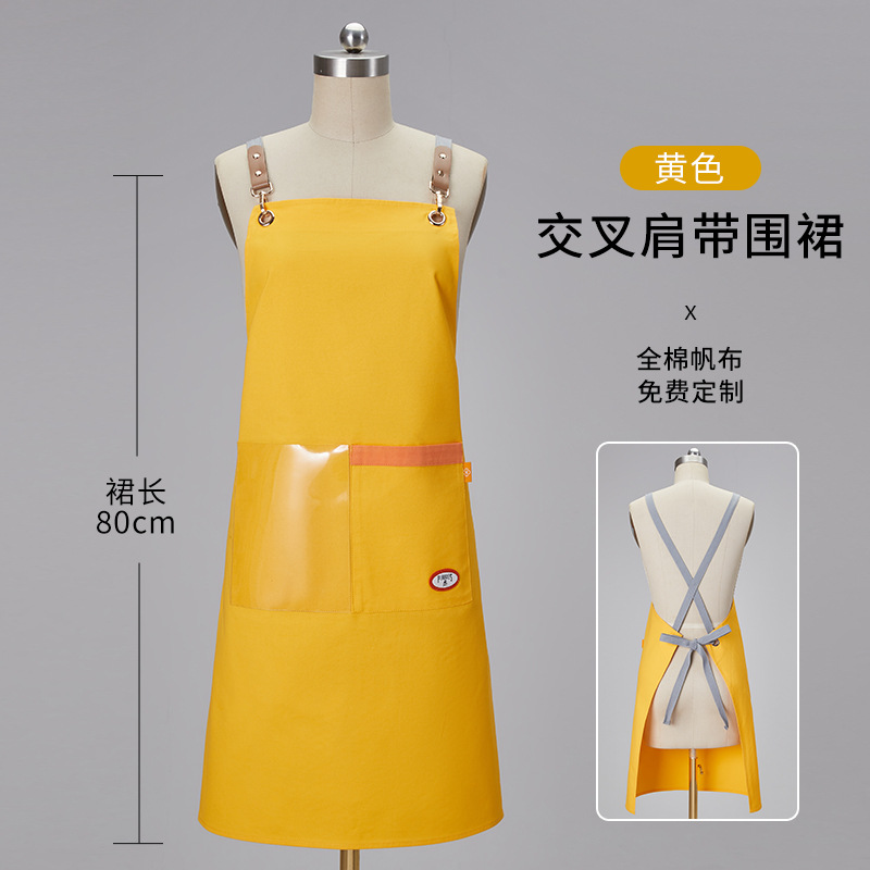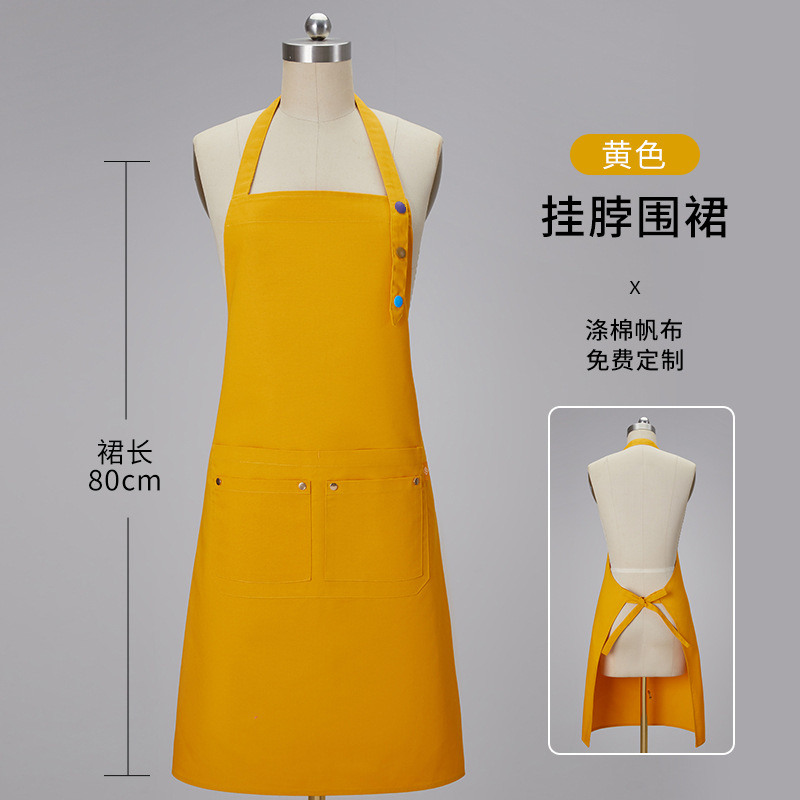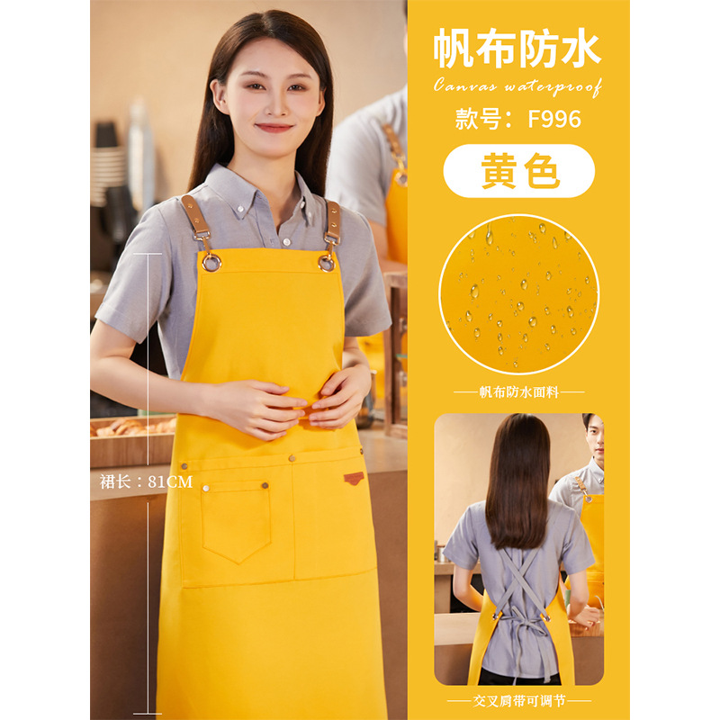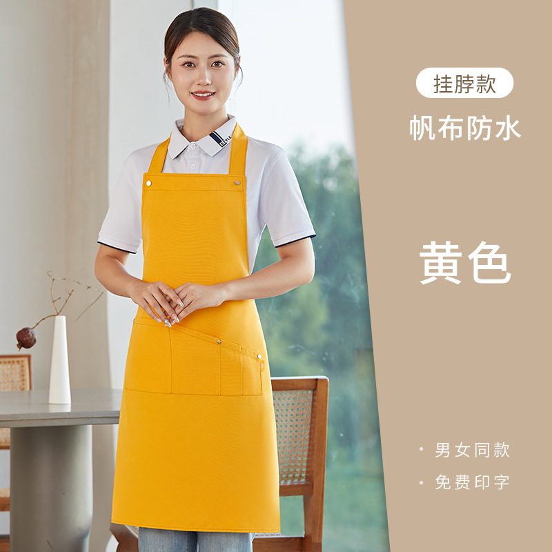 노란색 방수 캔버스 앞치마 맞춤 로고 인쇄 케이터링 특수 우유 차 가게 스낵 하우스 슈퍼마켓 작업복 여성