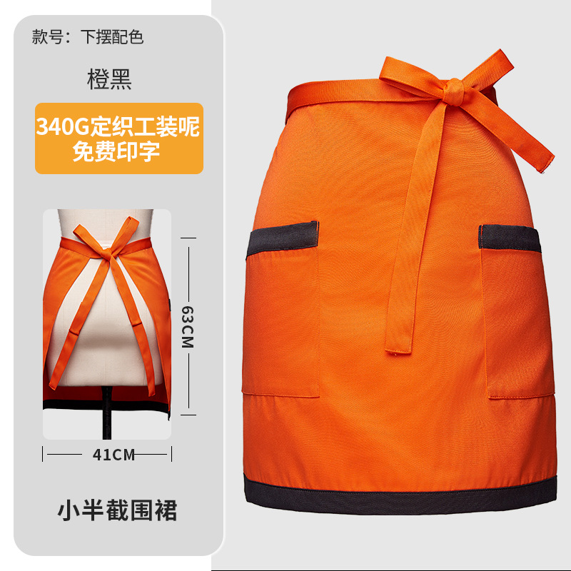 • 오렌지색과 검은색 테두리가 있는 LS-밑단 컬러 초단 앞치마