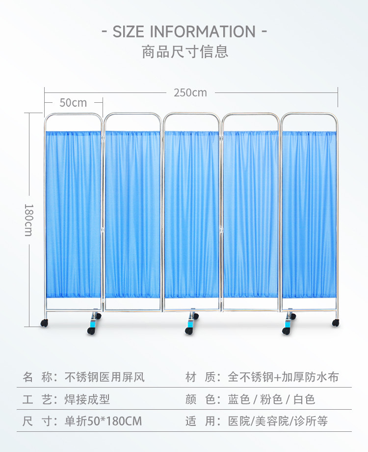 병원 스테인레스 스틸 스크린 클리닉 뷰티 살롱 이동식 파티션 헬스룸 워드 푸시-풀 접이식 스크린 금속