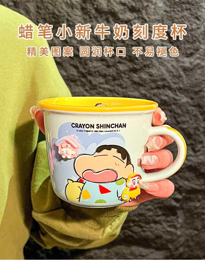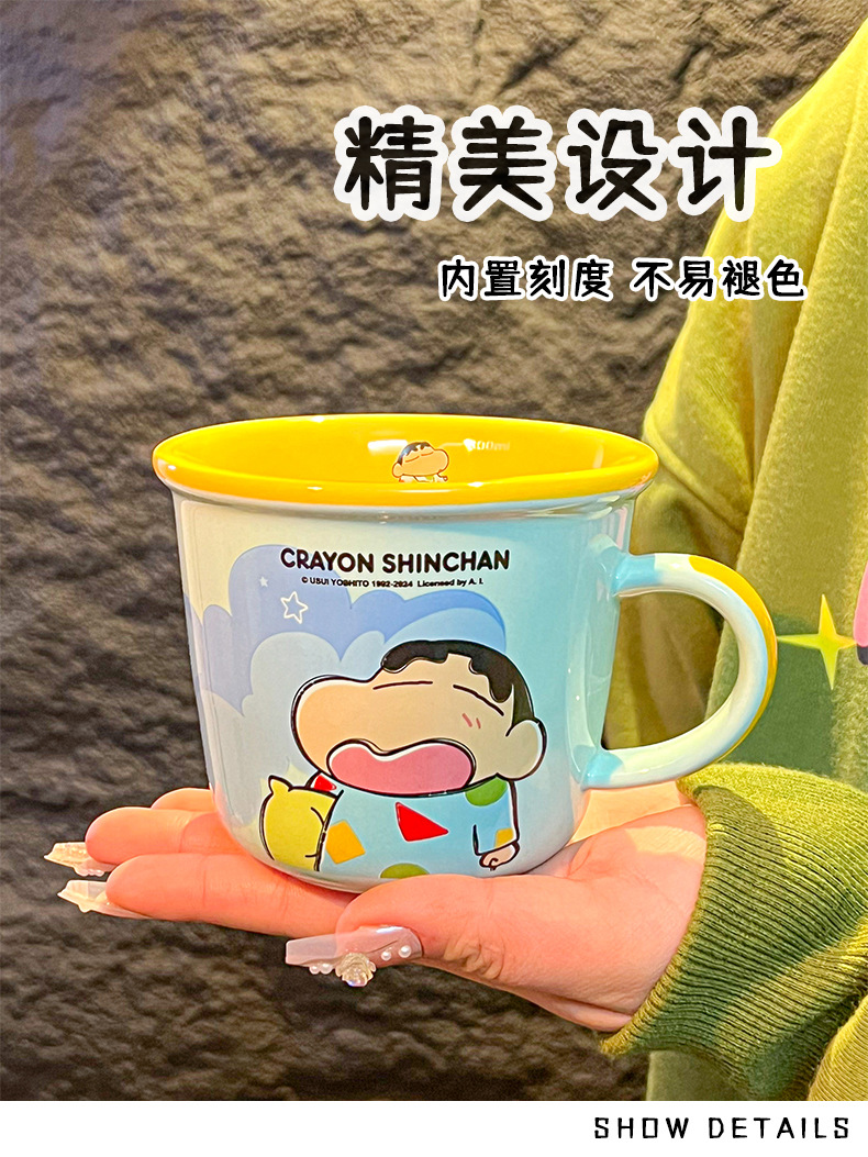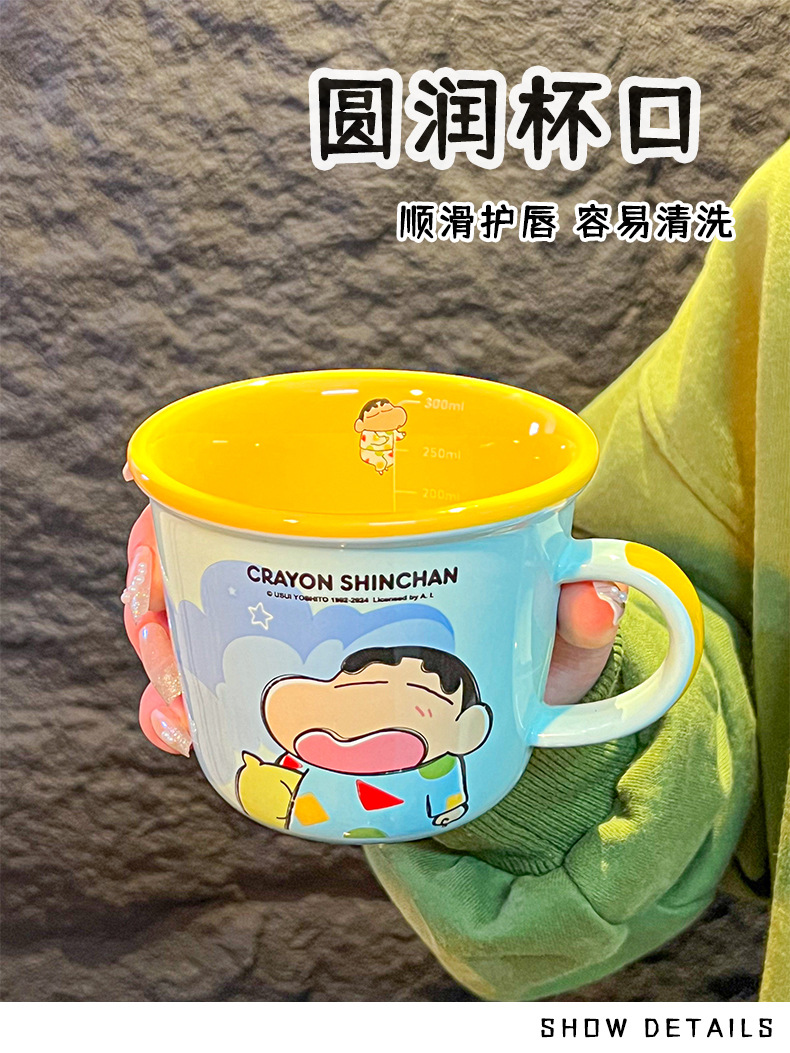 크레용 작은 새 머그잔 만화 우유 스케일 컵 만화 귀여운 아침 식사 세라믹 컵 도매 스케일 컵