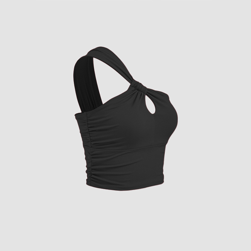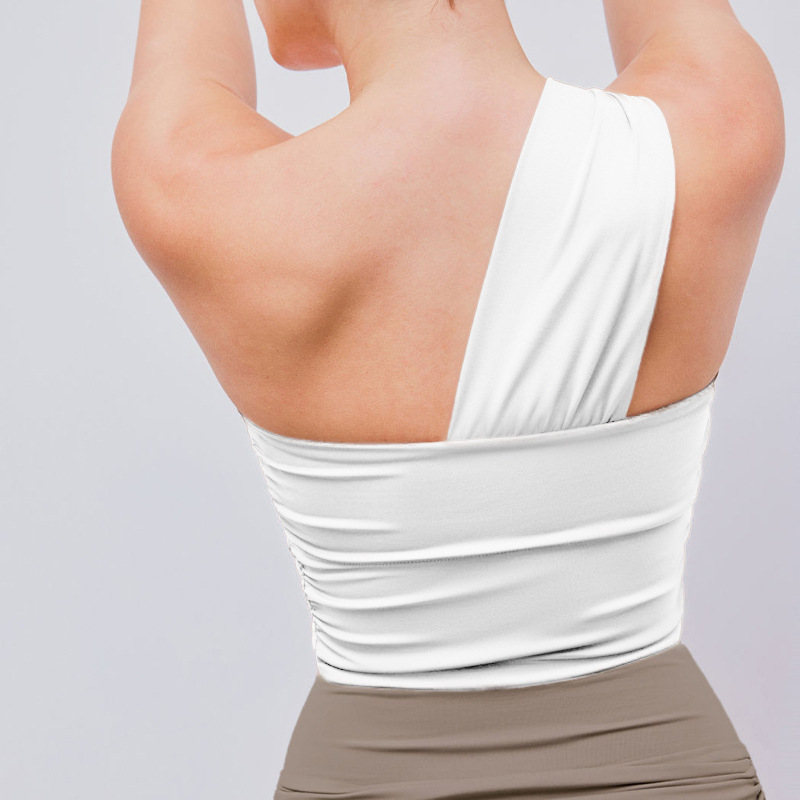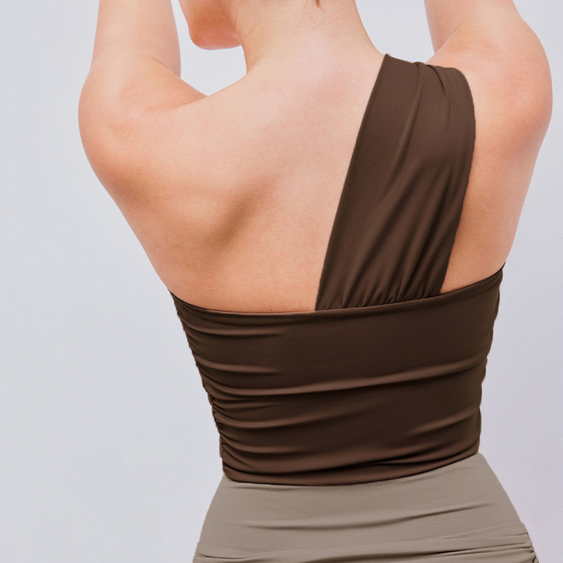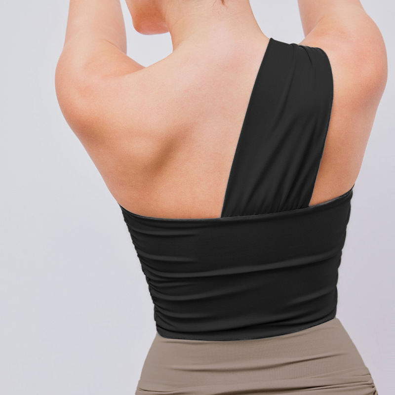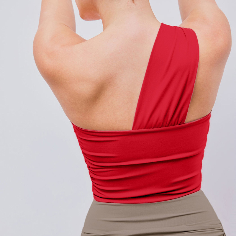 국경 간 주름진 빈 요가 옷 어깨 불규칙한 스포츠 속옷 댄스 훈련 피트니스 조끼 여성을위한 가슴 패드