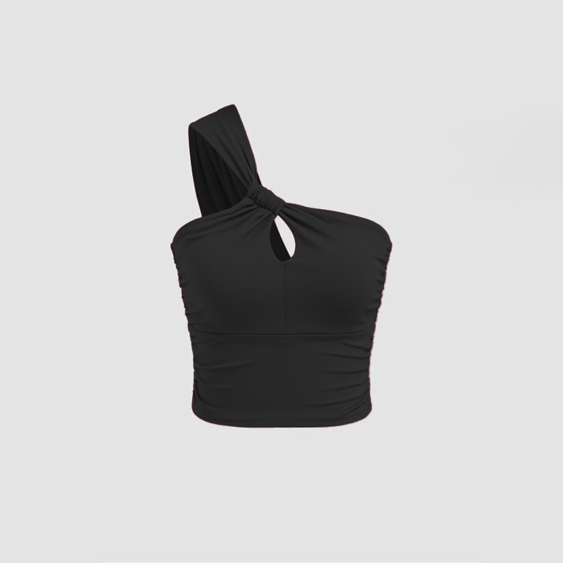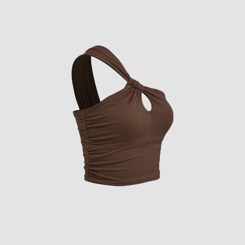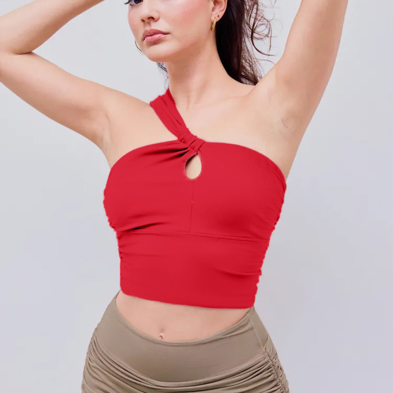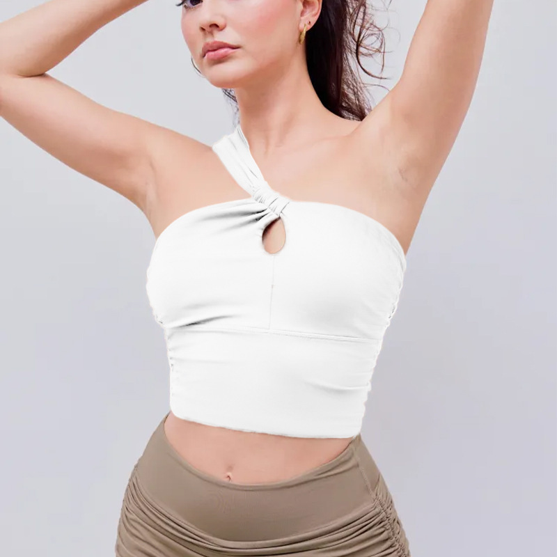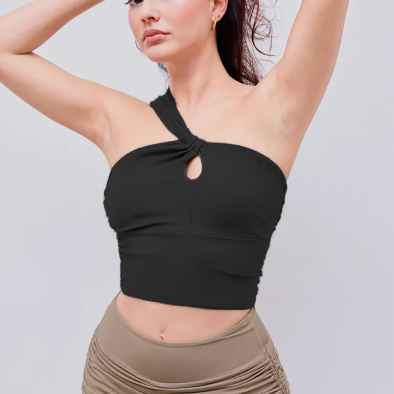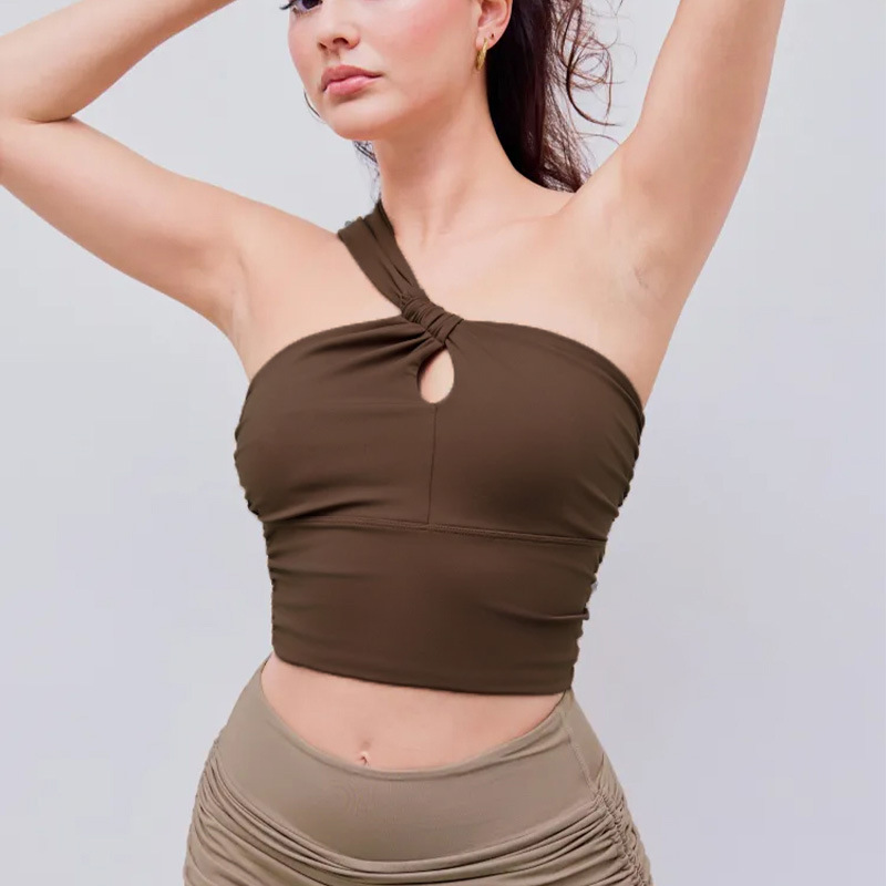 국경 간 주름진 빈 요가 옷 어깨 불규칙한 스포츠 속옷 댄스 훈련 피트니스 조끼 여성을위한 가슴 패드