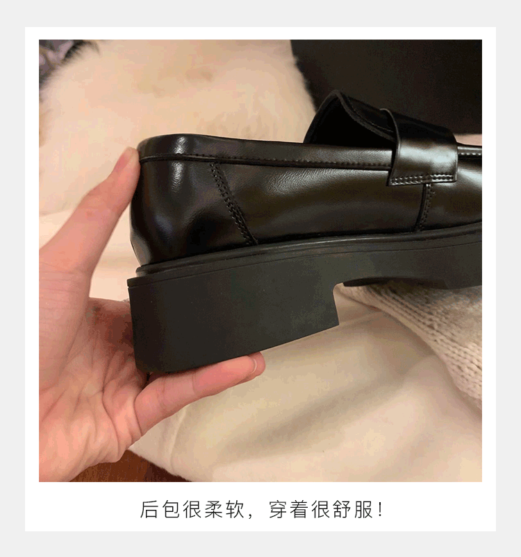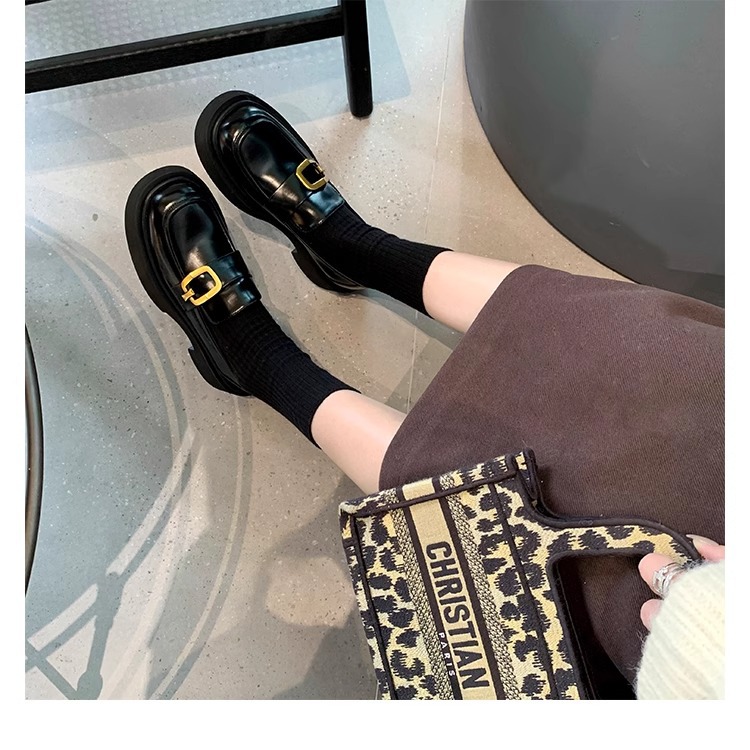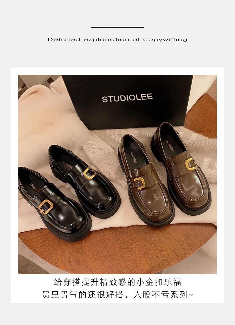 소가죽 버전~포도엄마의 고귀한 골드 버클 정사각형 라운드 토 영국식 게으른 두꺼운 굽 로퍼 여성용 작은 가죽 신발스토어 가기