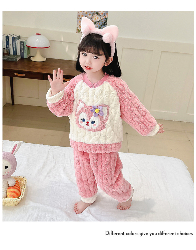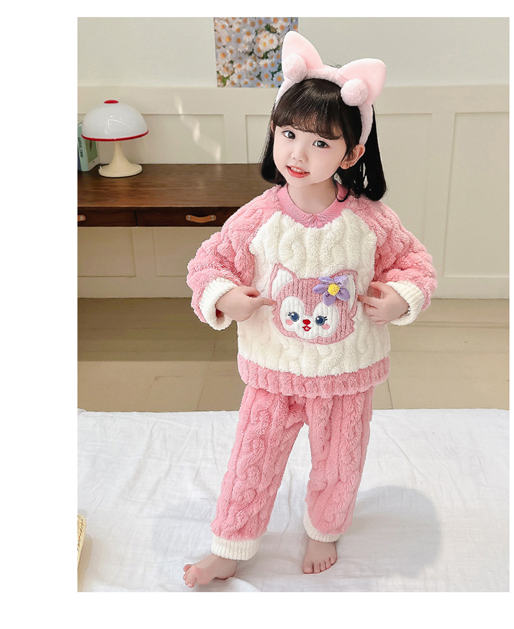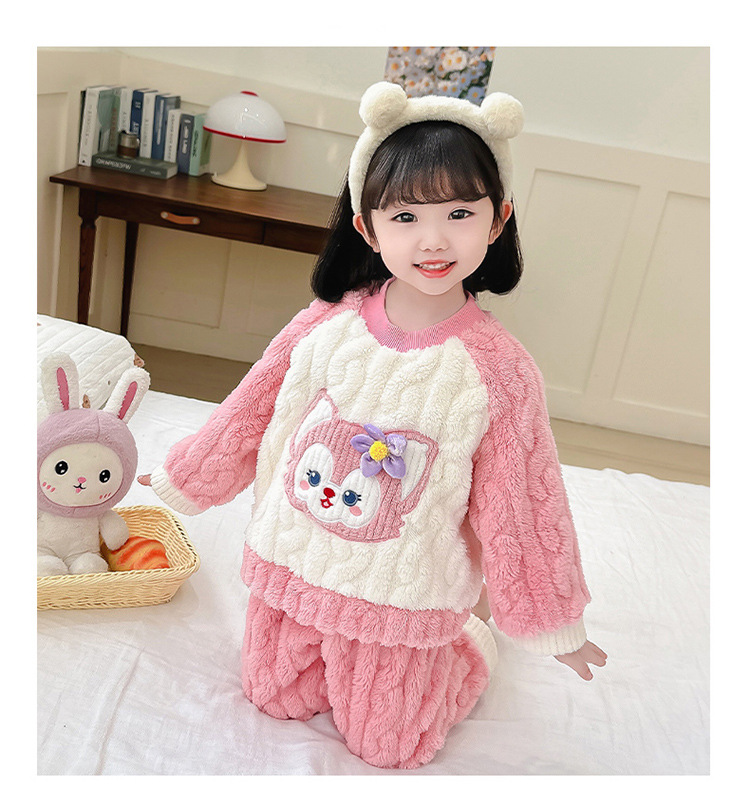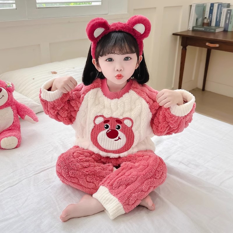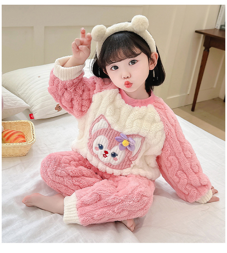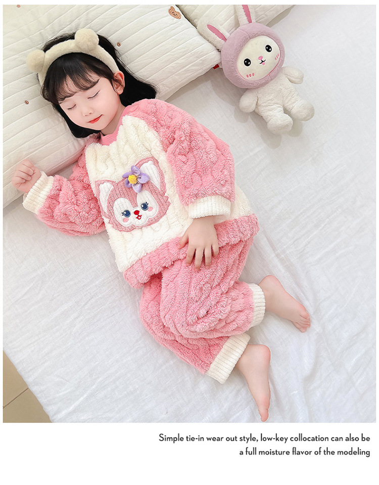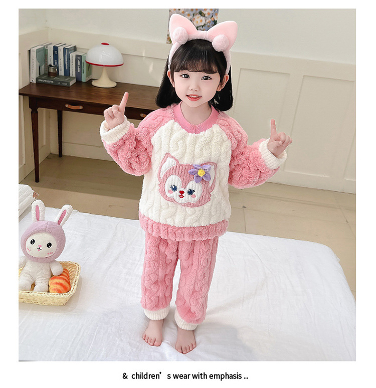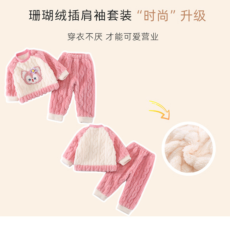 어린이 가을과 겨울 산호 양털 잠옷 귀여운 소녀 만화 따뜻한 분할 아기 플란넬 겨울 집 옷 세트스토어 가기