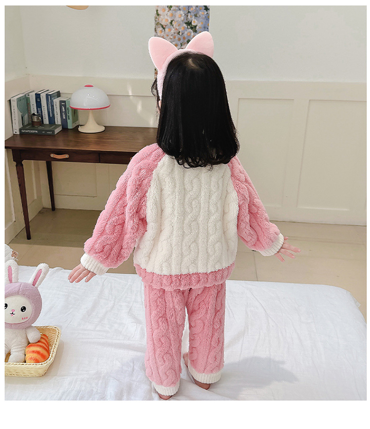 어린이 가을과 겨울 산호 양털 잠옷 귀여운 소녀 만화 따뜻한 분할 아기 플란넬 겨울 집 옷 세트