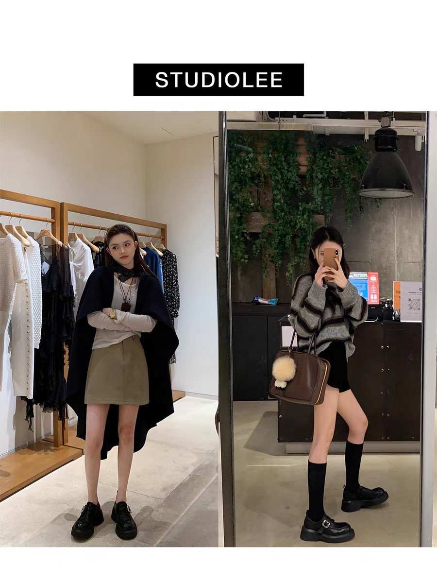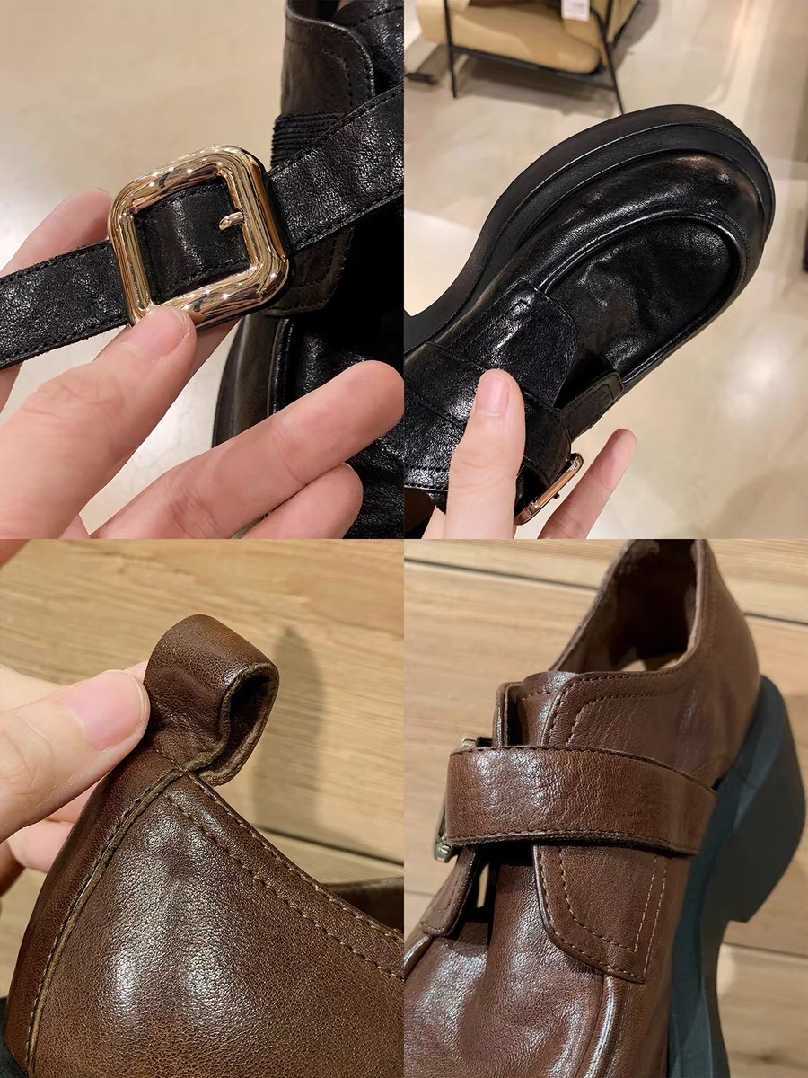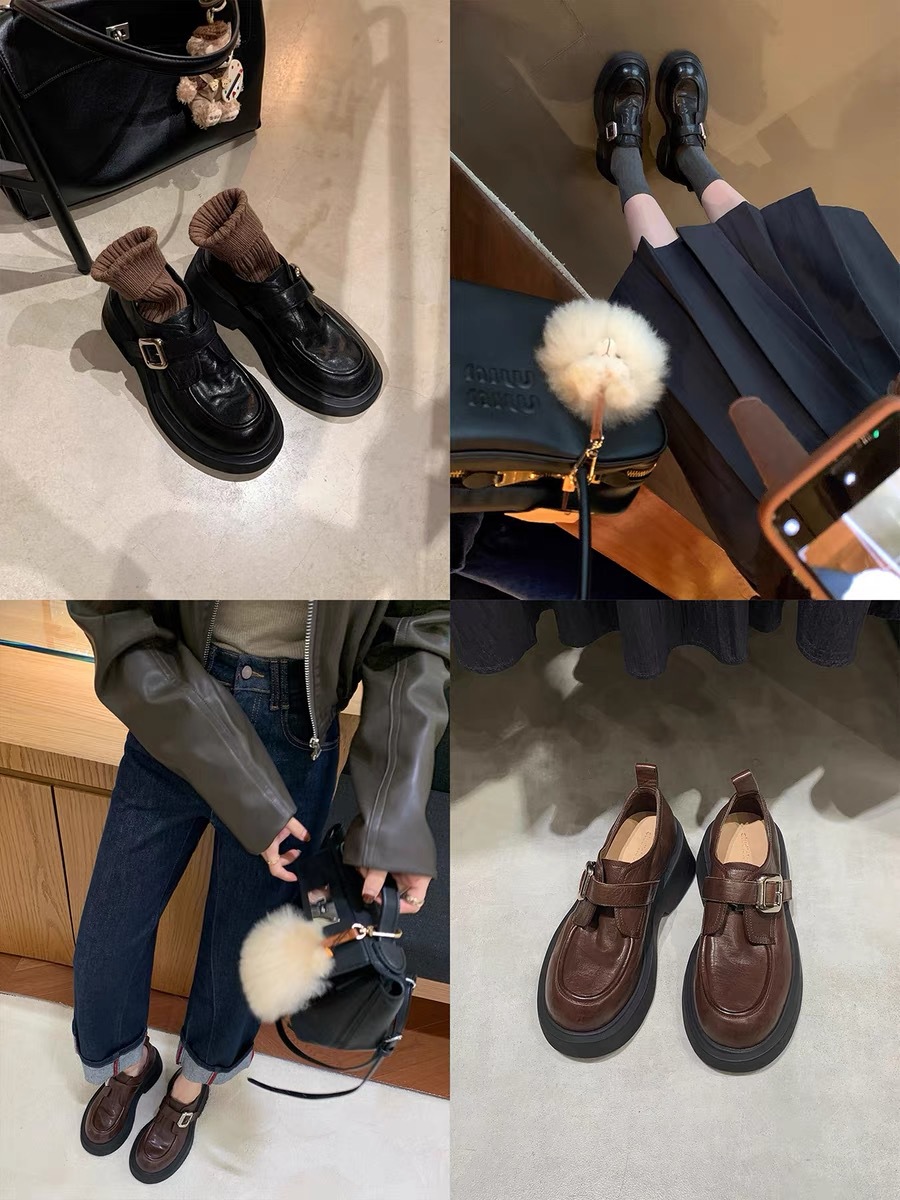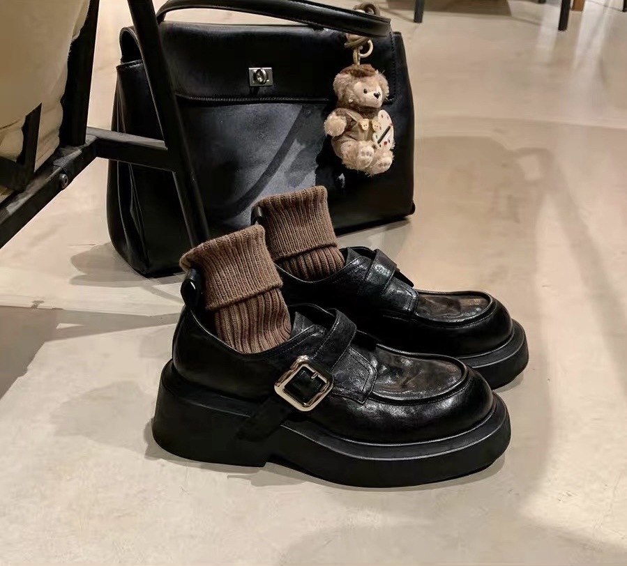 포도 엄마 내부 높이 7CM 스몰 사이즈 3233 라운드 영국 스타일 한 페달 두꺼운 Lefu 싱글 신발 여성용 가죽 신발스토어 가기