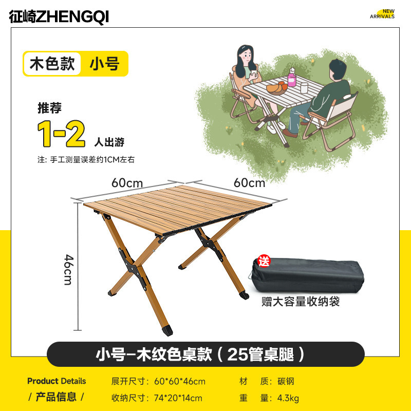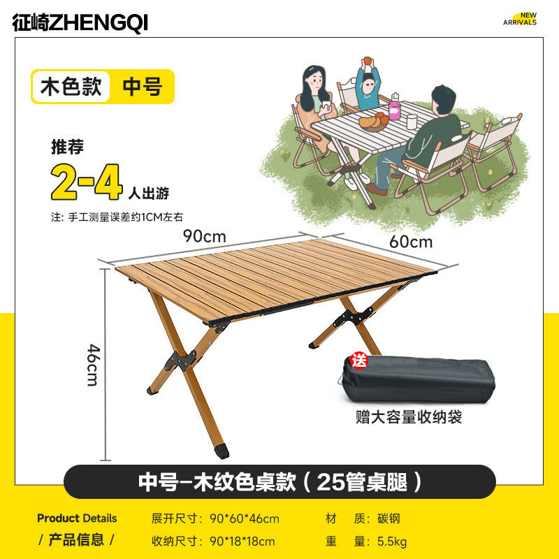 • [알루미늄합금] 90cm 우드그레인 에그롤 테이블 [무료 핸드백]