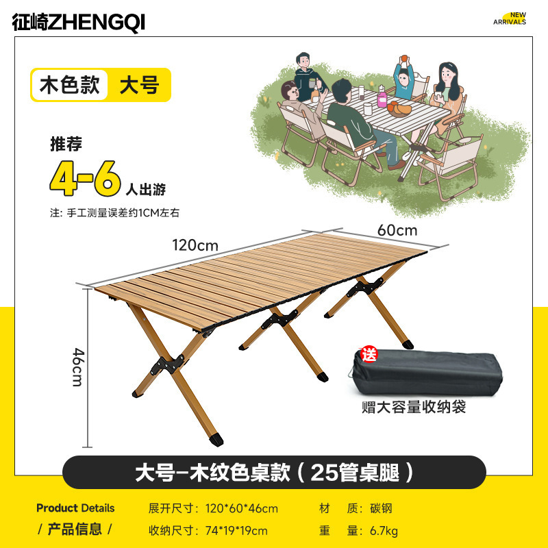 • [알루미늄합금] 120cm 우드그레인 에그롤 테이블 [무료 핸드백]