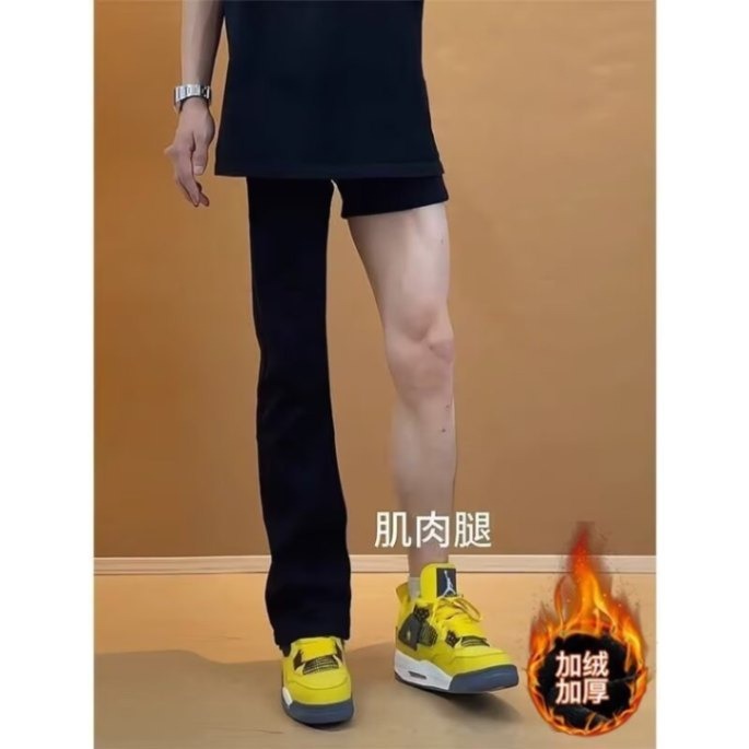 블랙 웨이브 진 남성용 가을 겨울 클린핏 팬츠 아메리칸 하이 스트리트 스타일 스트레이트 약간의 플레어 팬츠 트렌디 브랜드스토어 가기