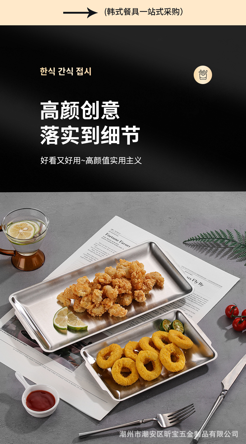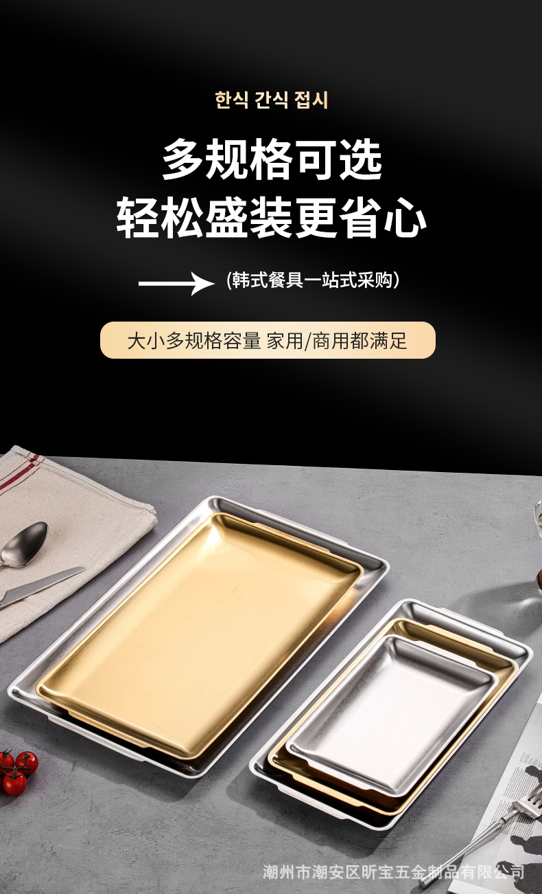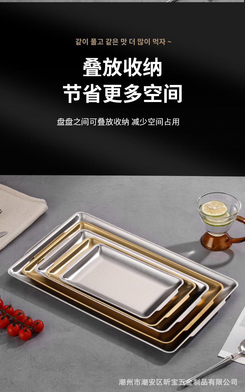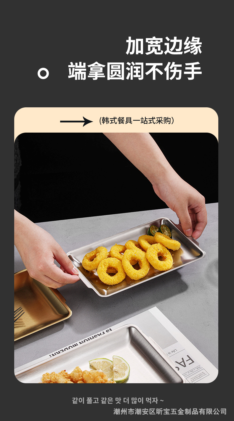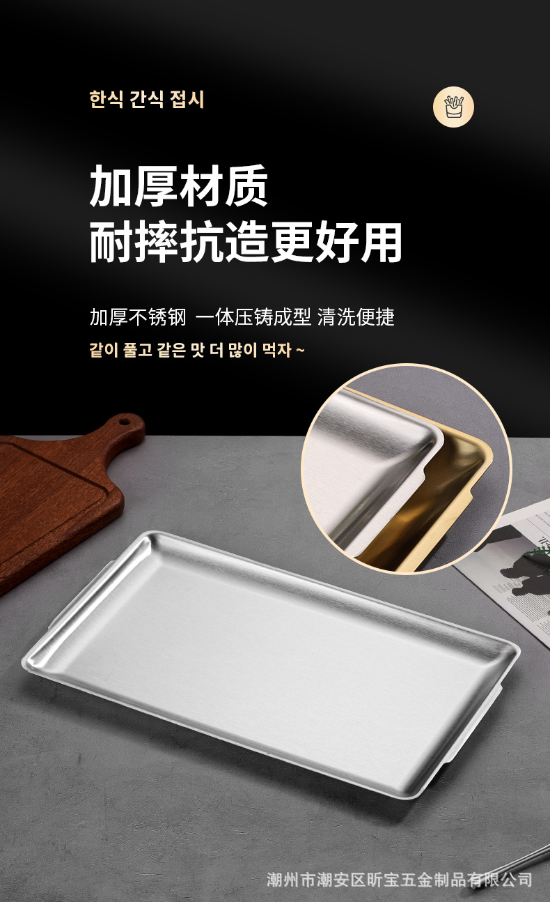 한국식 바베큐 플레이트 스테인레스 스틸 스퀘어 플레이트 귀 바베큐 플레이트 스낵 플레이트 직사각형 상업용 플랫 바닥 트레이스토어 가기