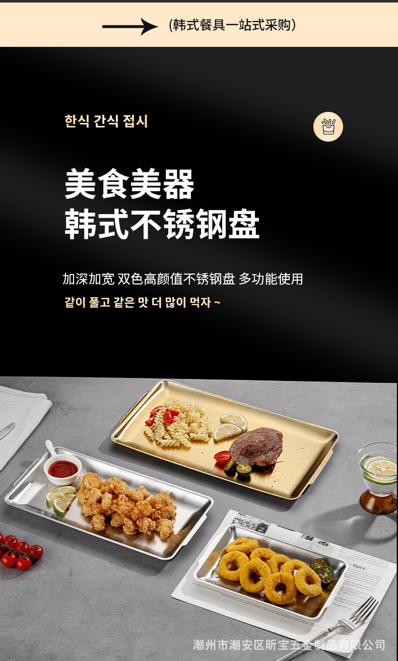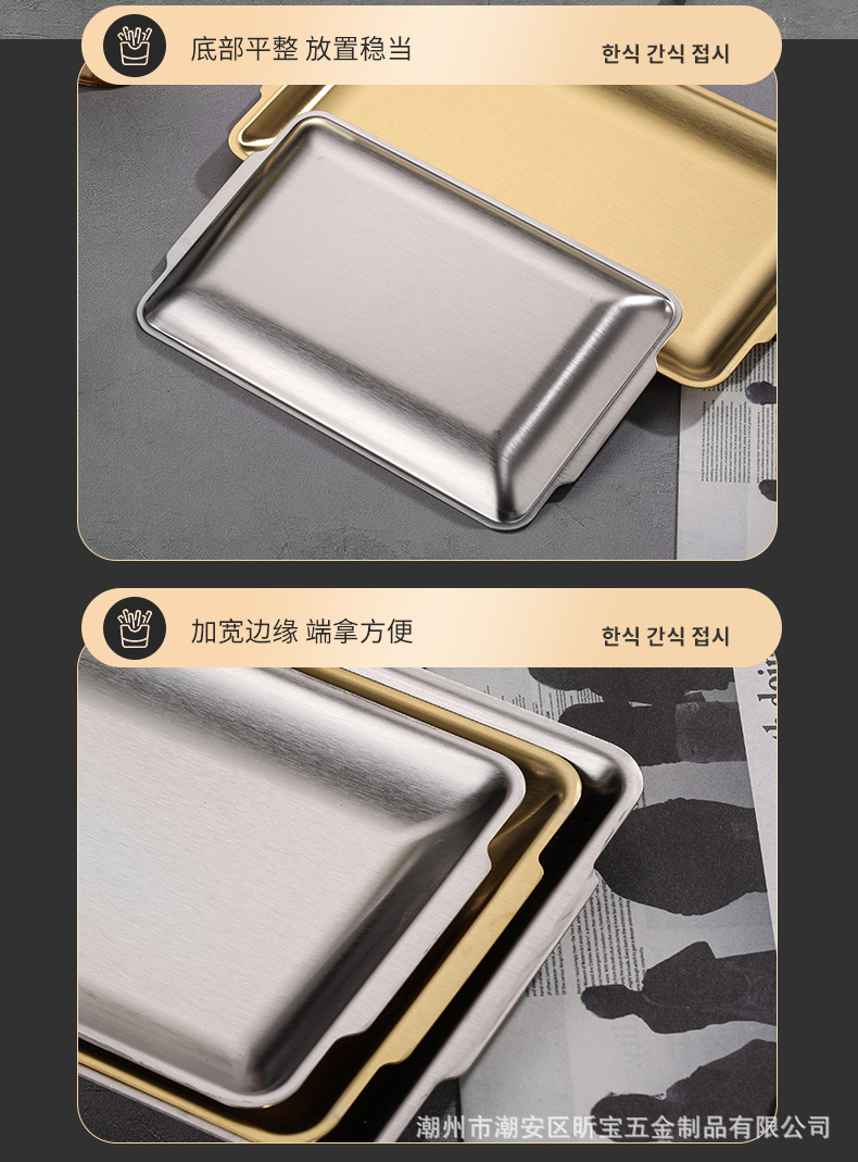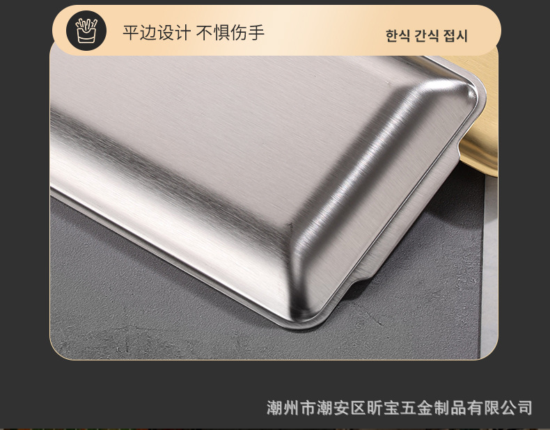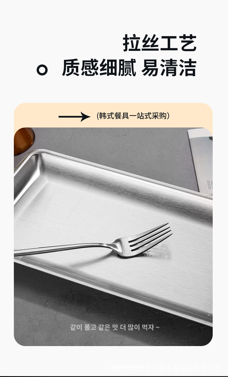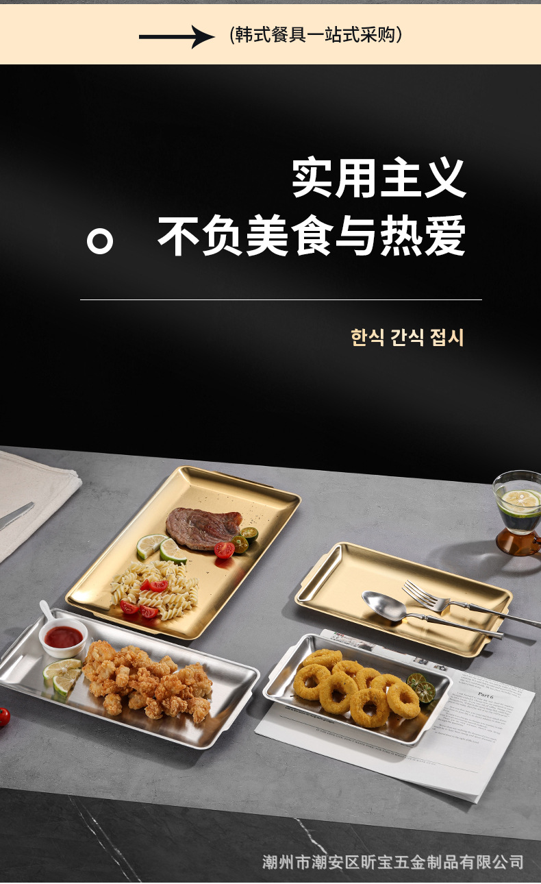 한국식 바베큐 플레이트 스테인레스 스틸 스퀘어 플레이트 귀 바베큐 플레이트 스낵 플레이트 직사각형 상업용 플랫 바닥 트레이스토어 가기