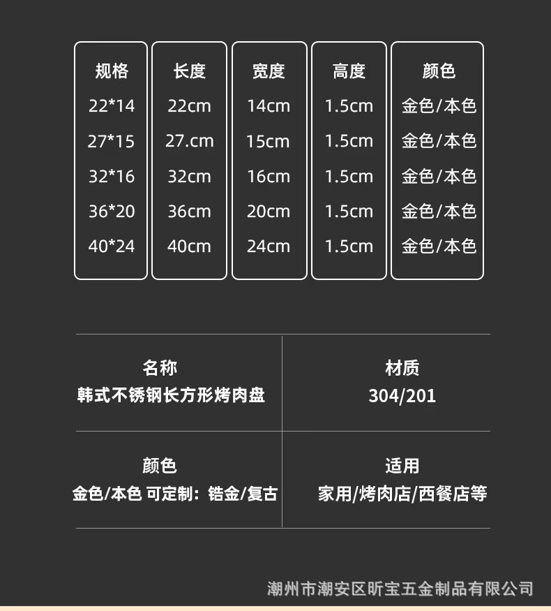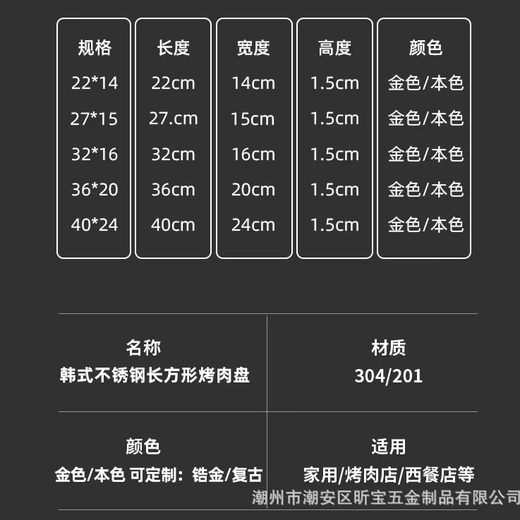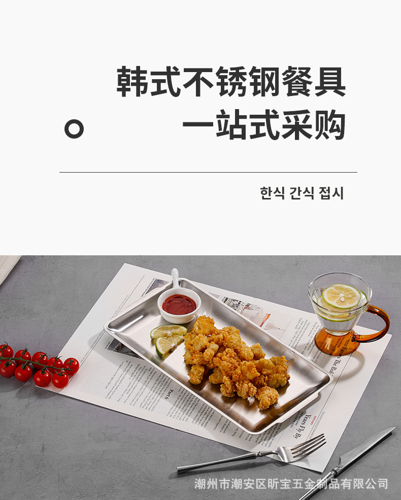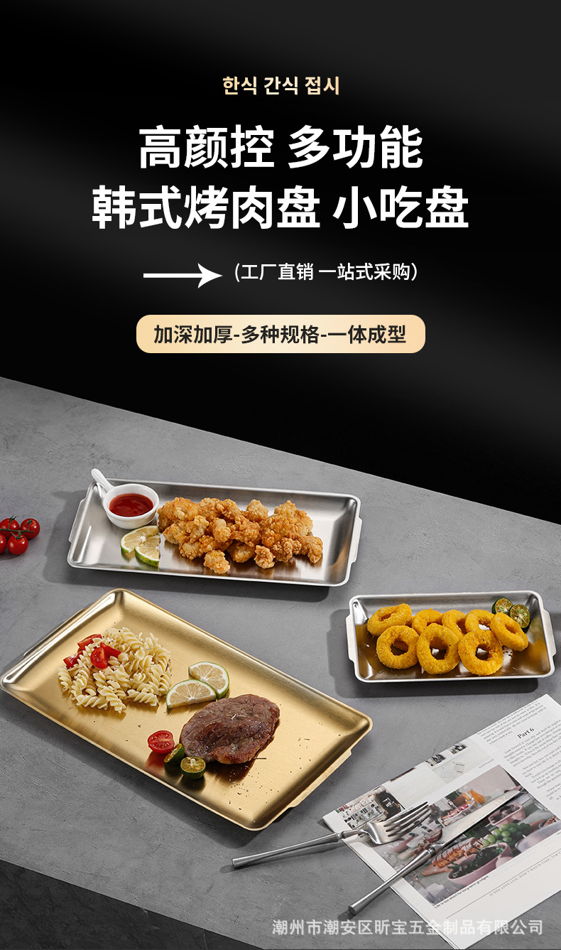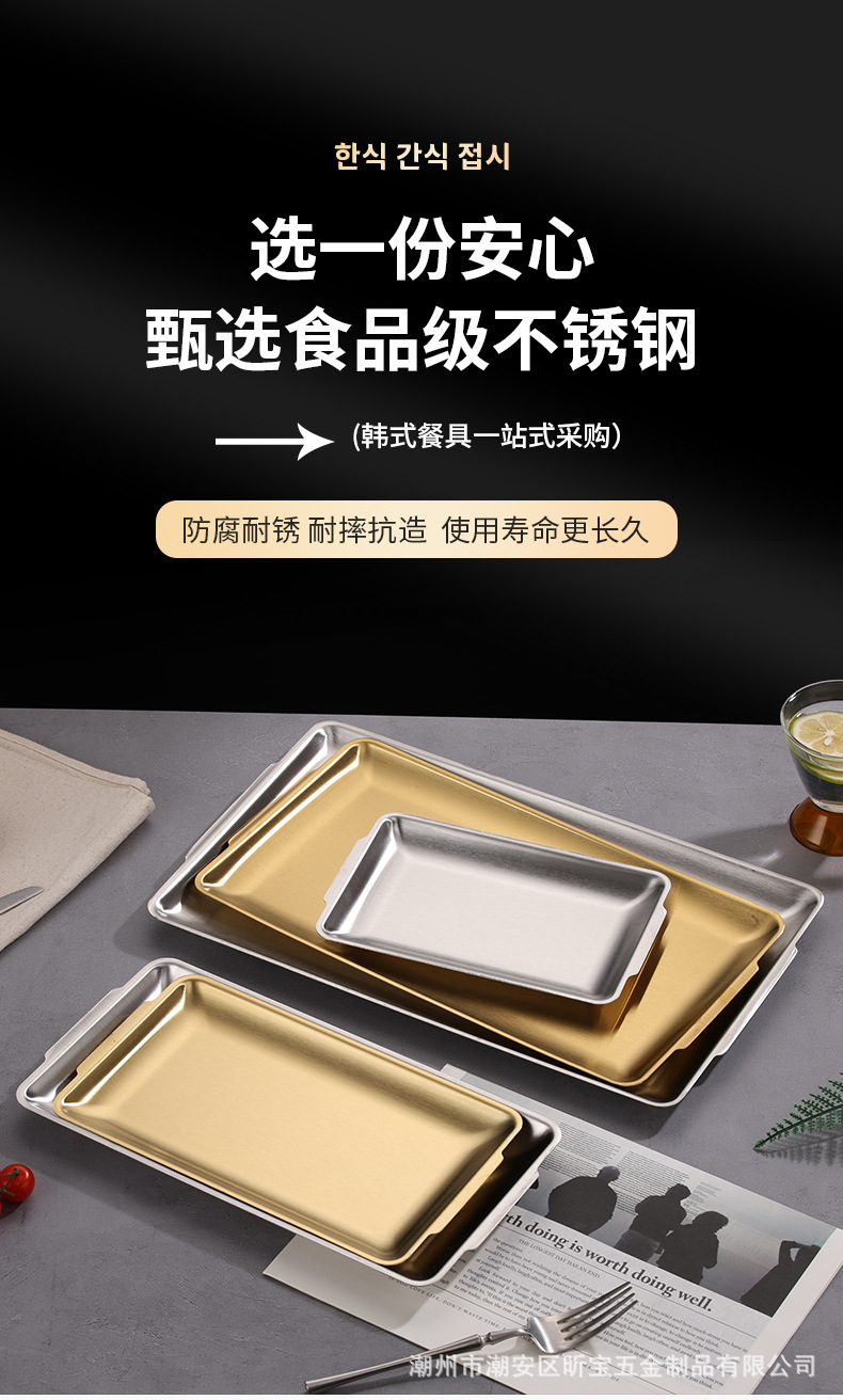 한국식 바베큐 플레이트 스테인레스 스틸 스퀘어 플레이트 귀 바베큐 플레이트 스낵 플레이트 직사각형 상업용 플랫 바닥 트레이