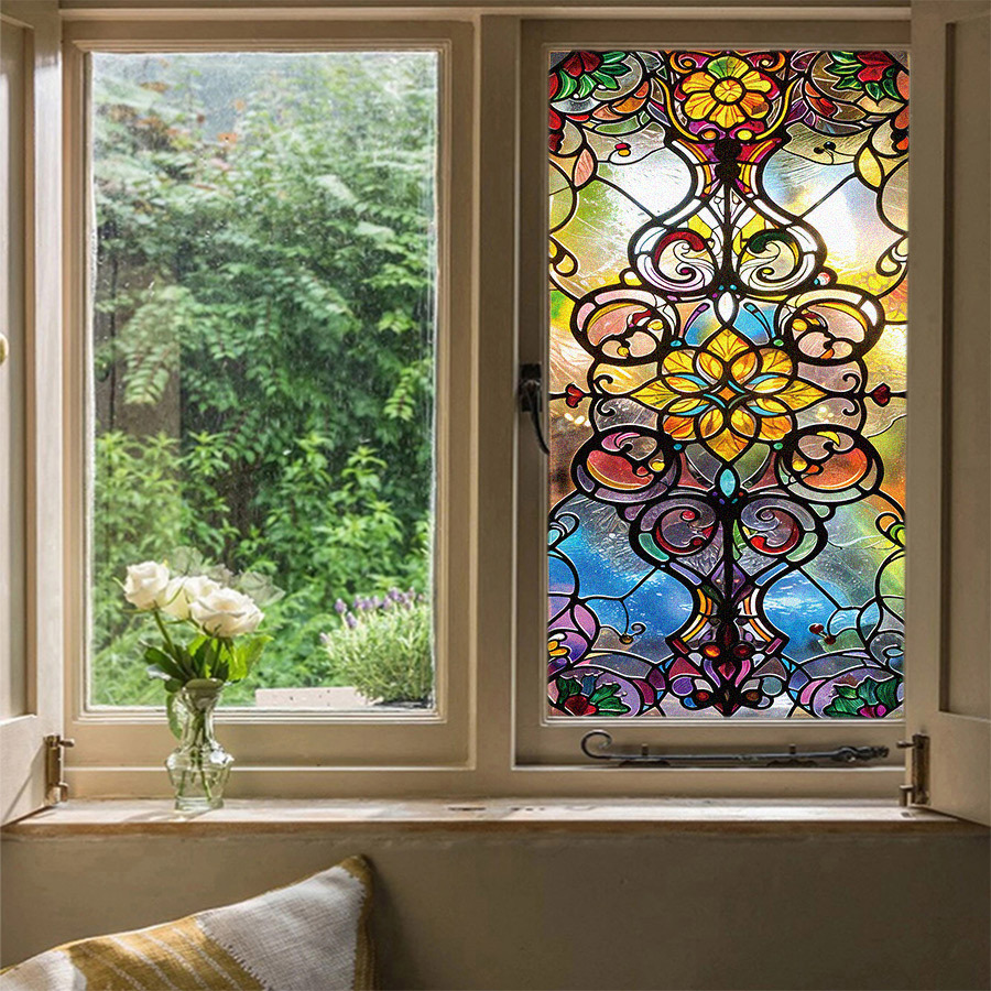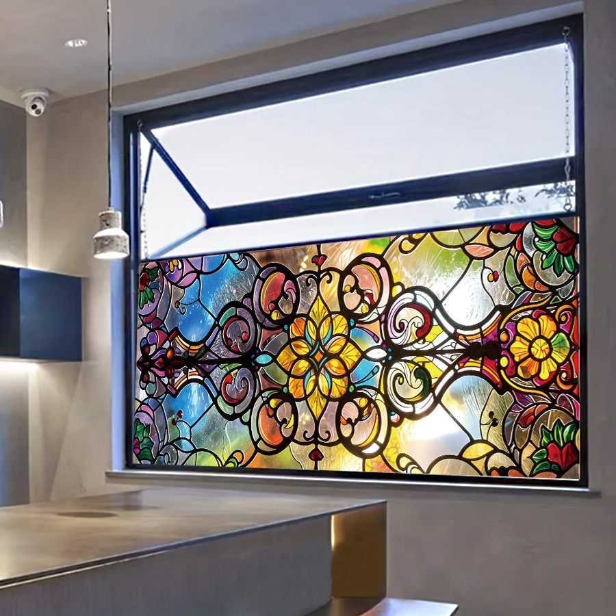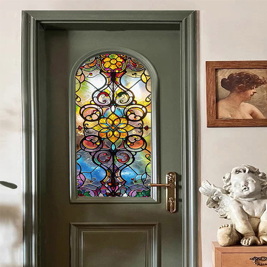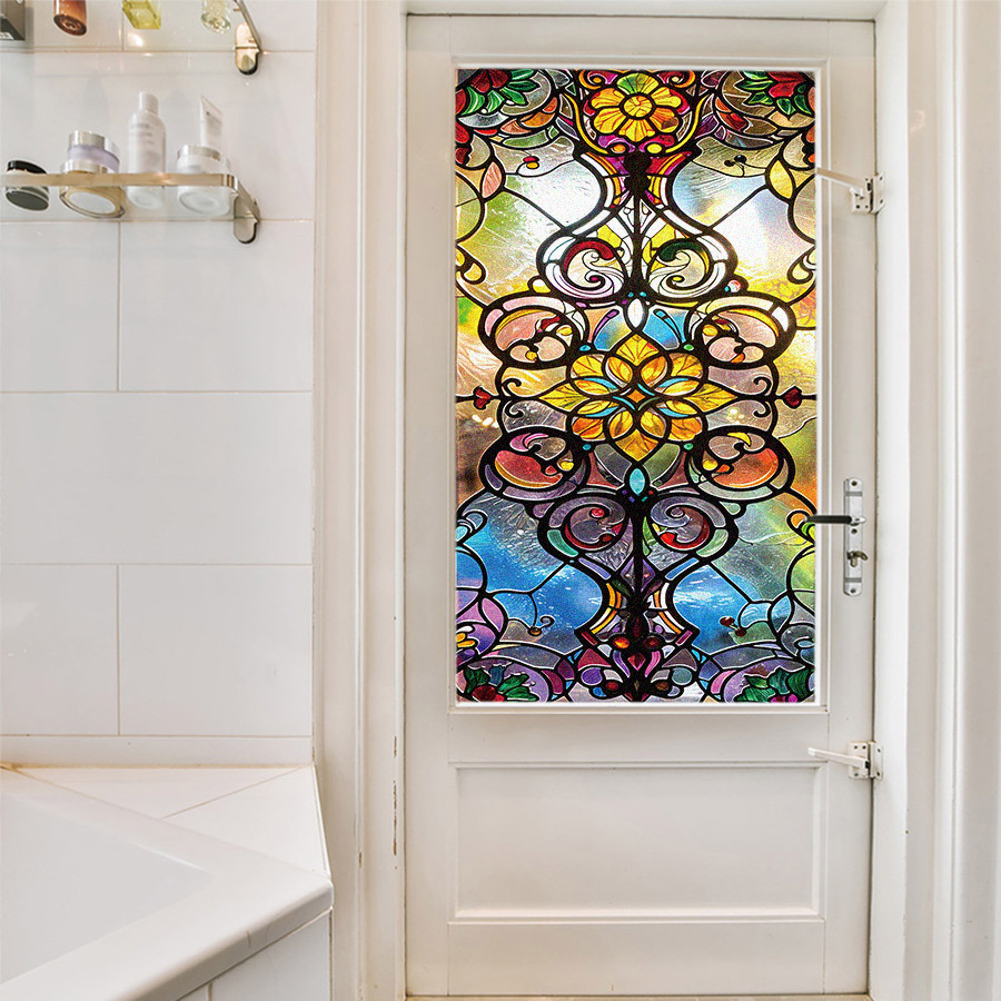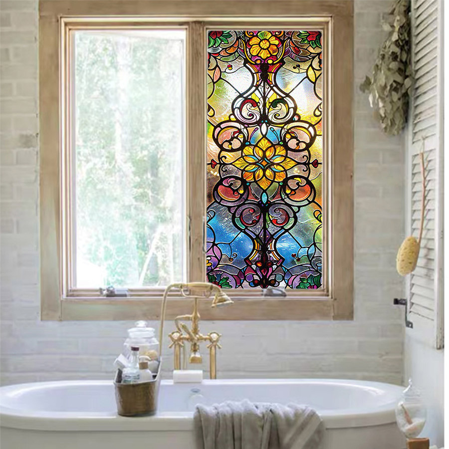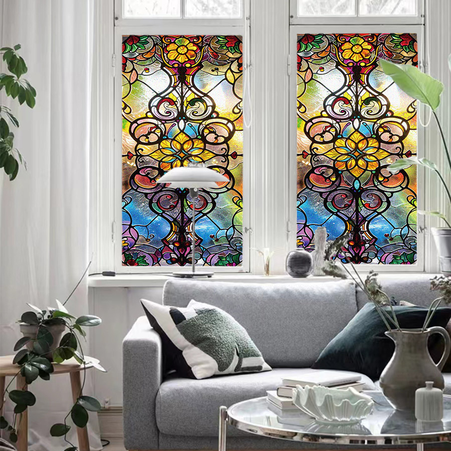 바로크 유럽 레트로 아트 컬러 스티커 정전기 유리 스티커 PVC 접착제 무료 유리 필름 콜라주