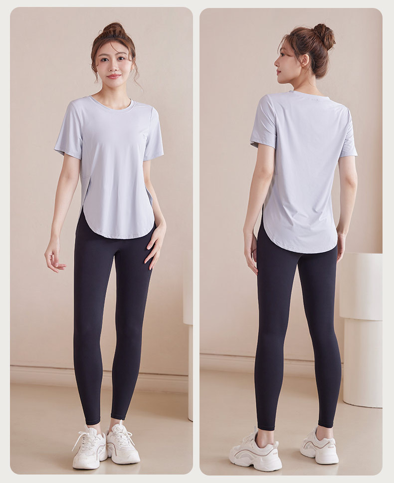 플러스 사이즈 반팔 요가 티셔츠 여성용 통통녀 여름 얼음 느낌 느슨한 운동복 200kg 아침 달리기 통기성 피트니스 코트