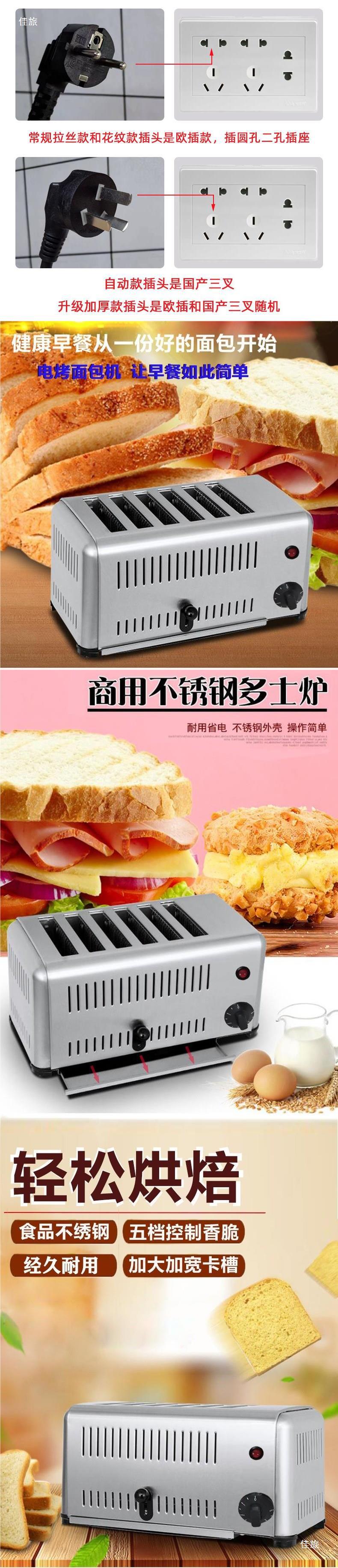 토스터 빵 기계 상업용 4 조각 6 조각 가열 토스트 드라이버 가정용 구운 샌드위치 아침 식사 베이킹 고기 클립