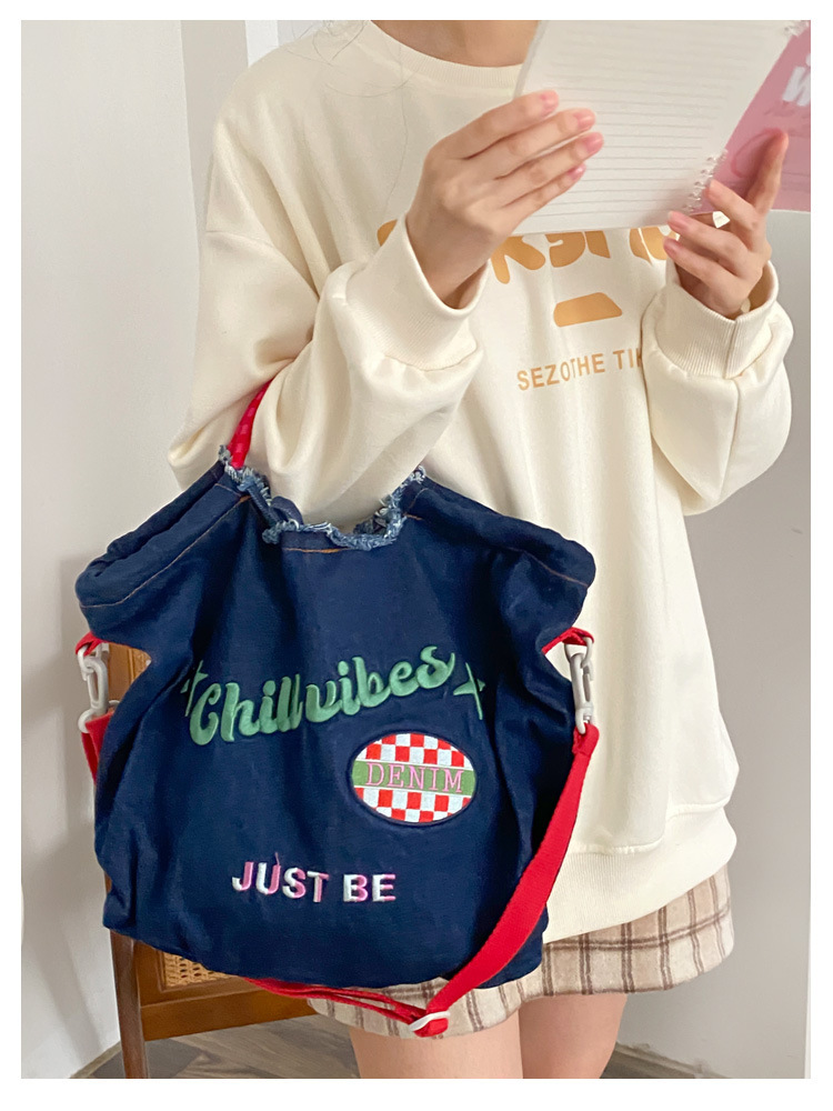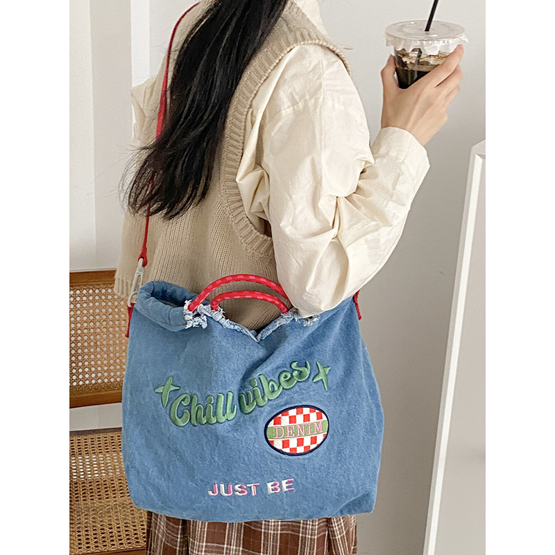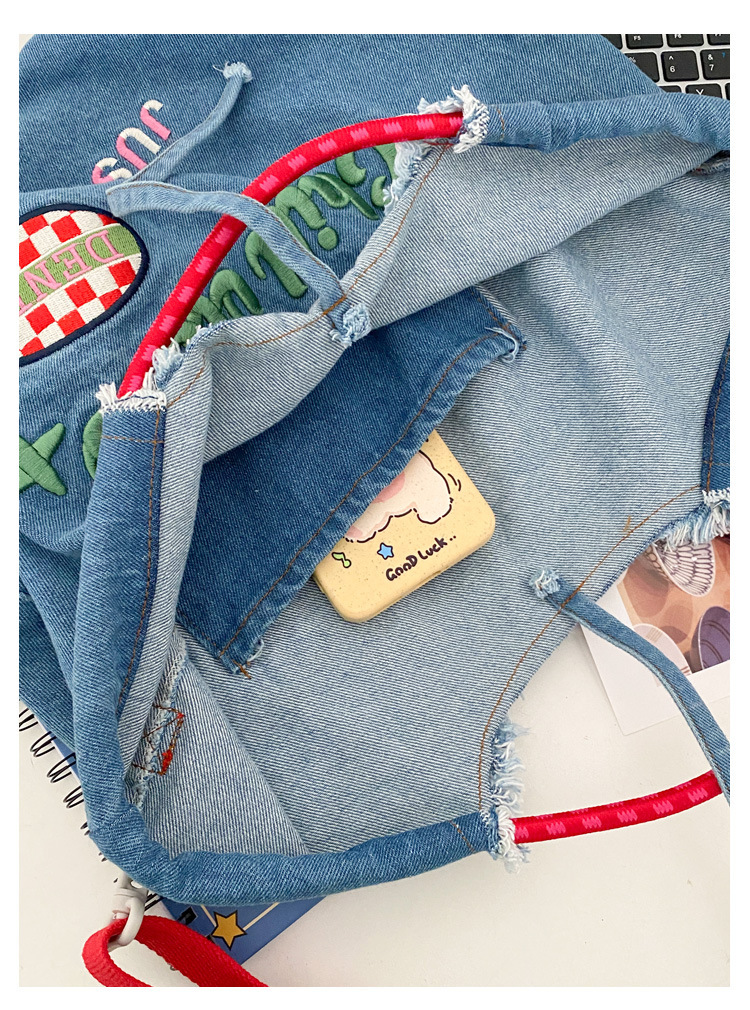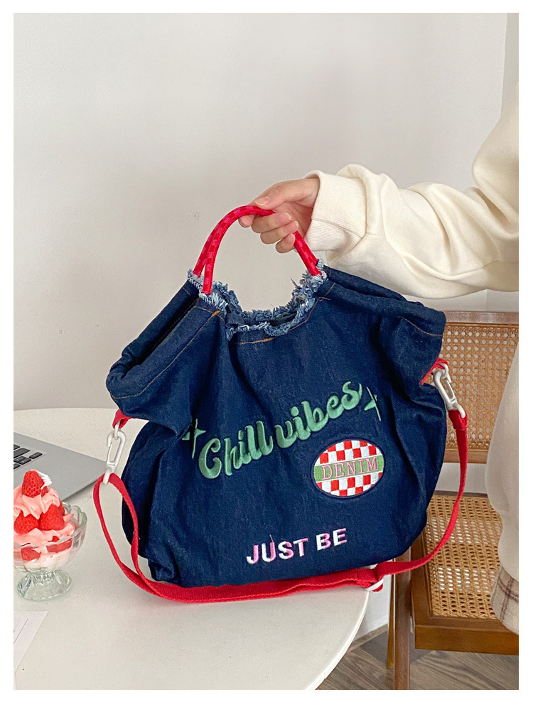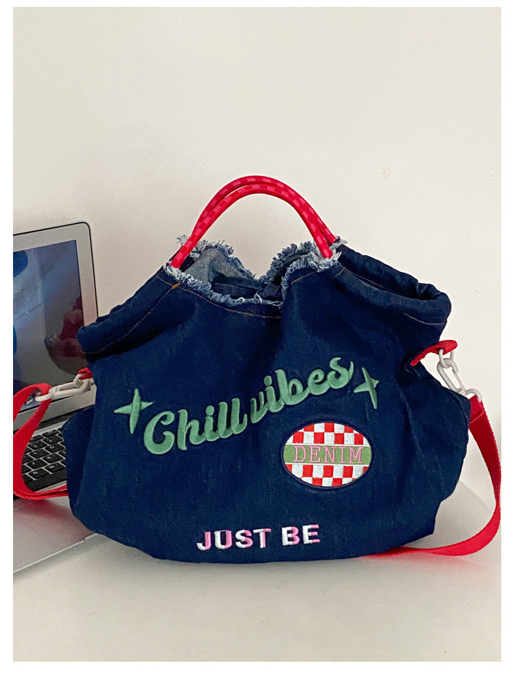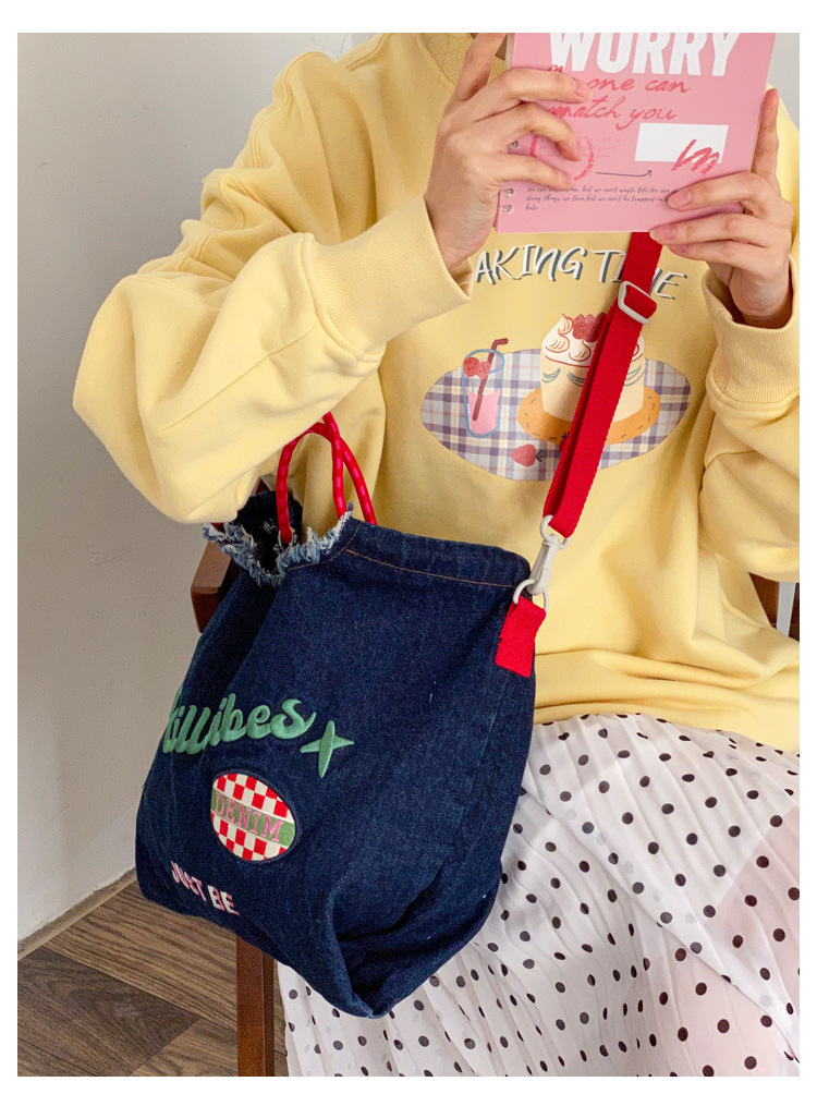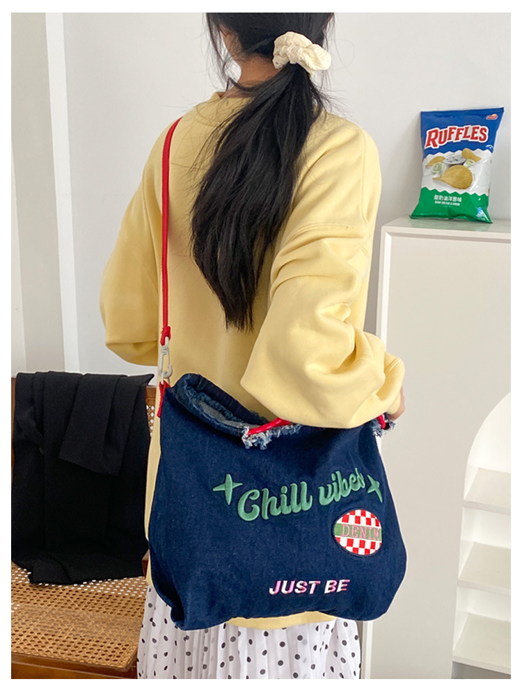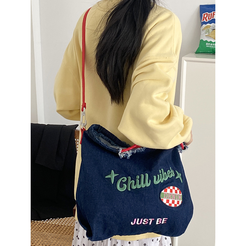 원래 디자인 데님 크로스 바디 백 여성 올 매치 조정 가능한 어깨 끈 학생 학교 가방 도파민 컬러 핸드백스토어 가기