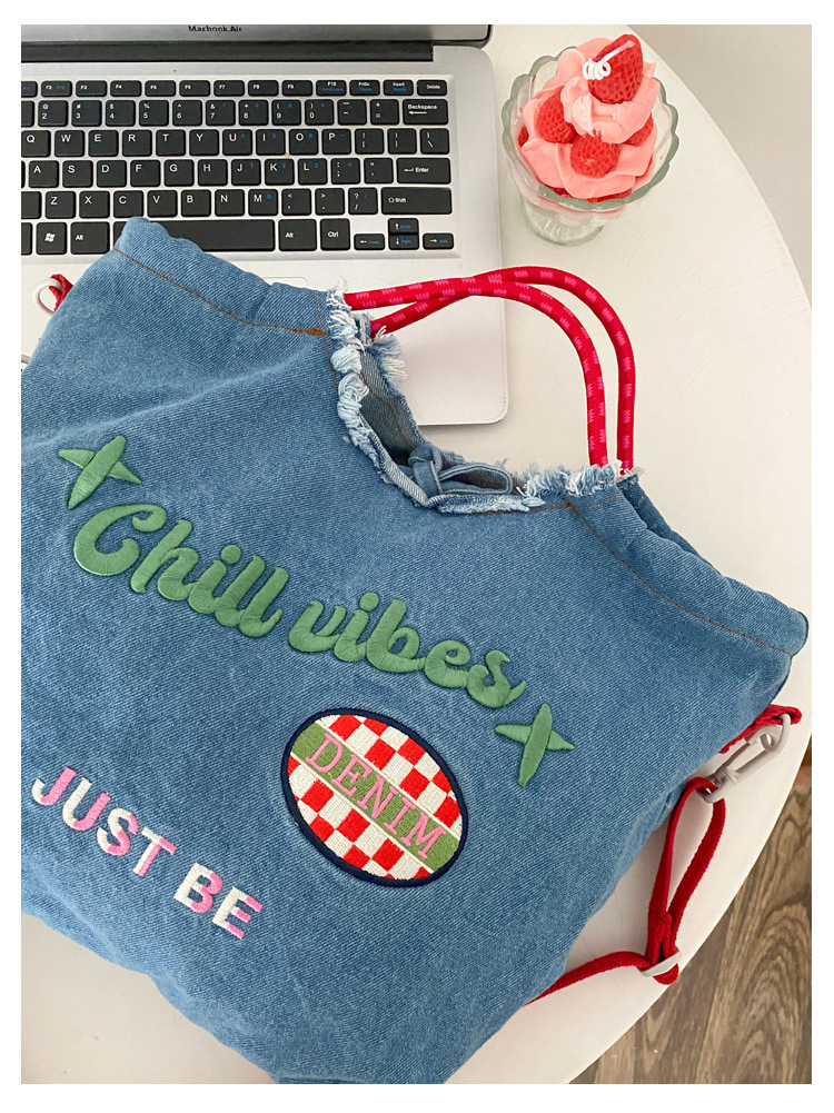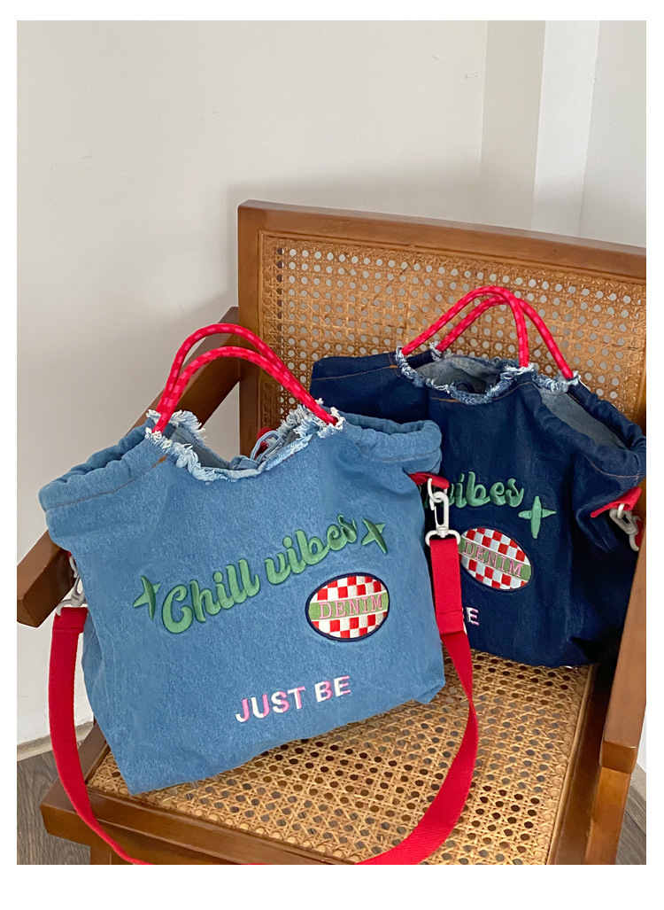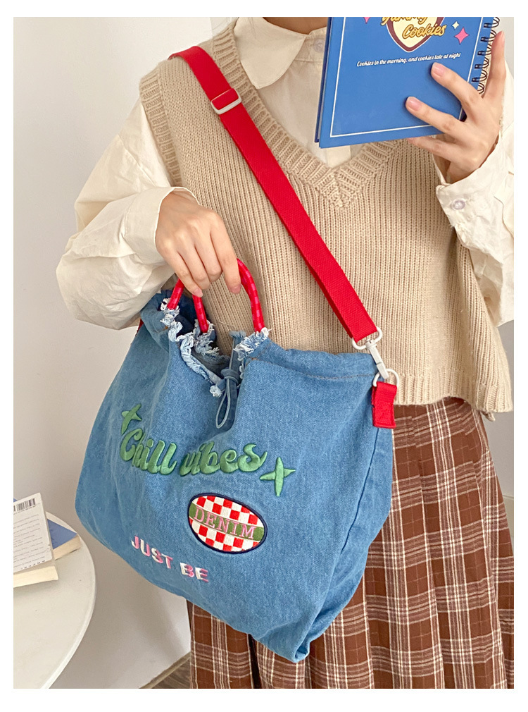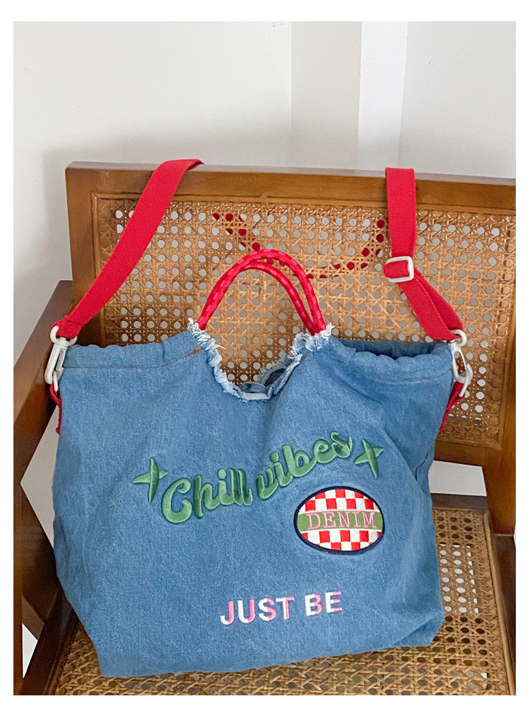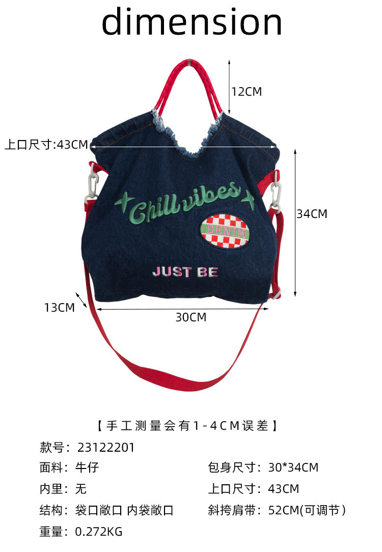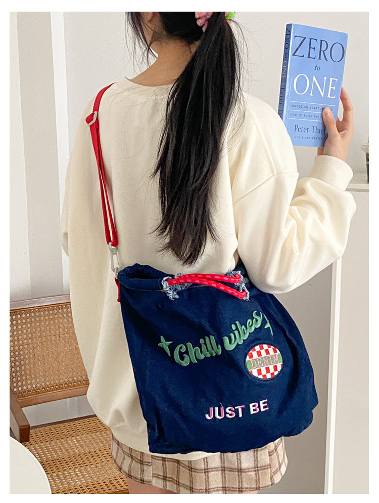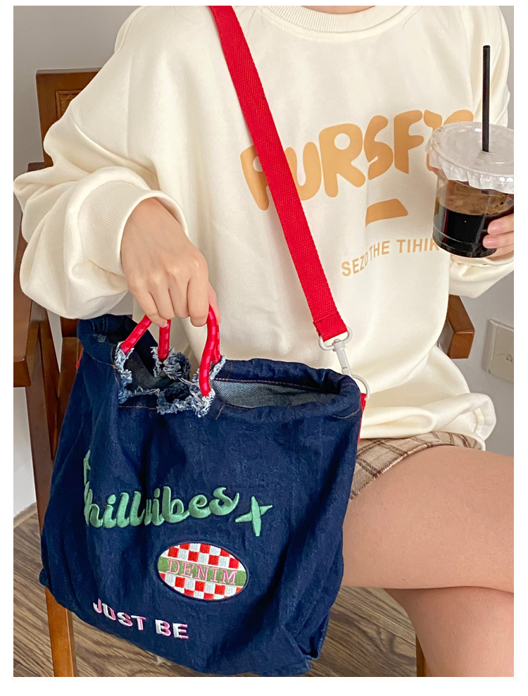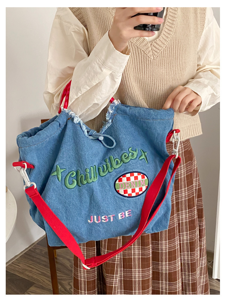 원래 디자인 데님 크로스 바디 백 여성 올 매치 조정 가능한 어깨 끈 학생 학교 가방 도파민 컬러 핸드백스토어 가기