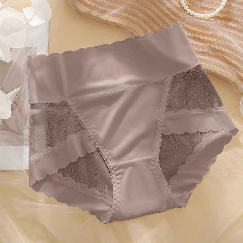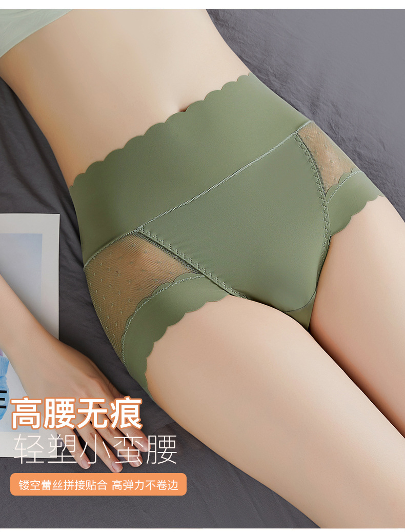 가을과 여름 얇은 높은 허리 배 얼음 실크 원활한 속옷 여성 스티칭 웨이브 도트 메쉬 엉덩이 섹시한 여성 삼각형