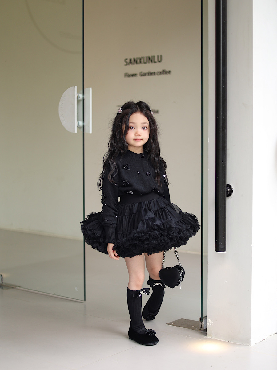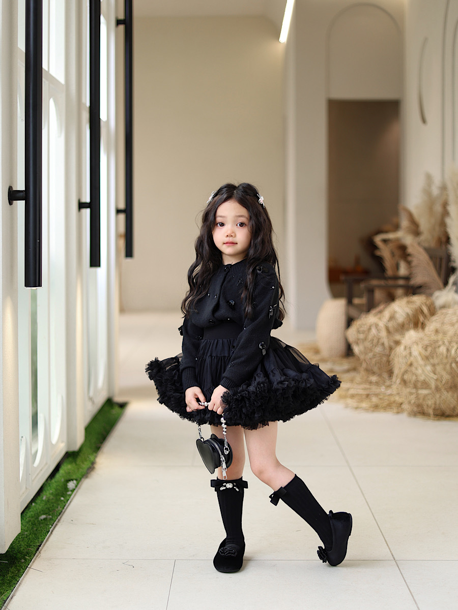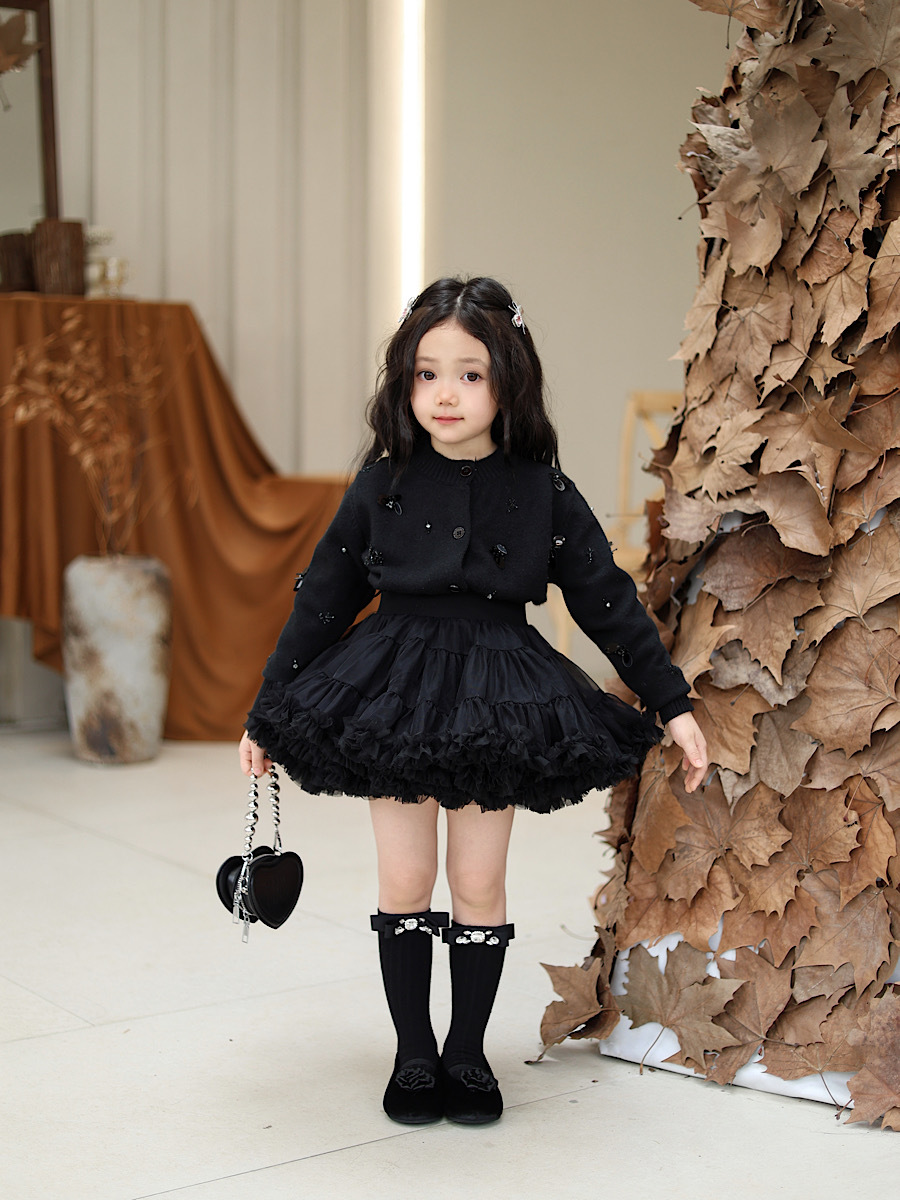 • 블랙 핸드 스티치 비즈 가디건