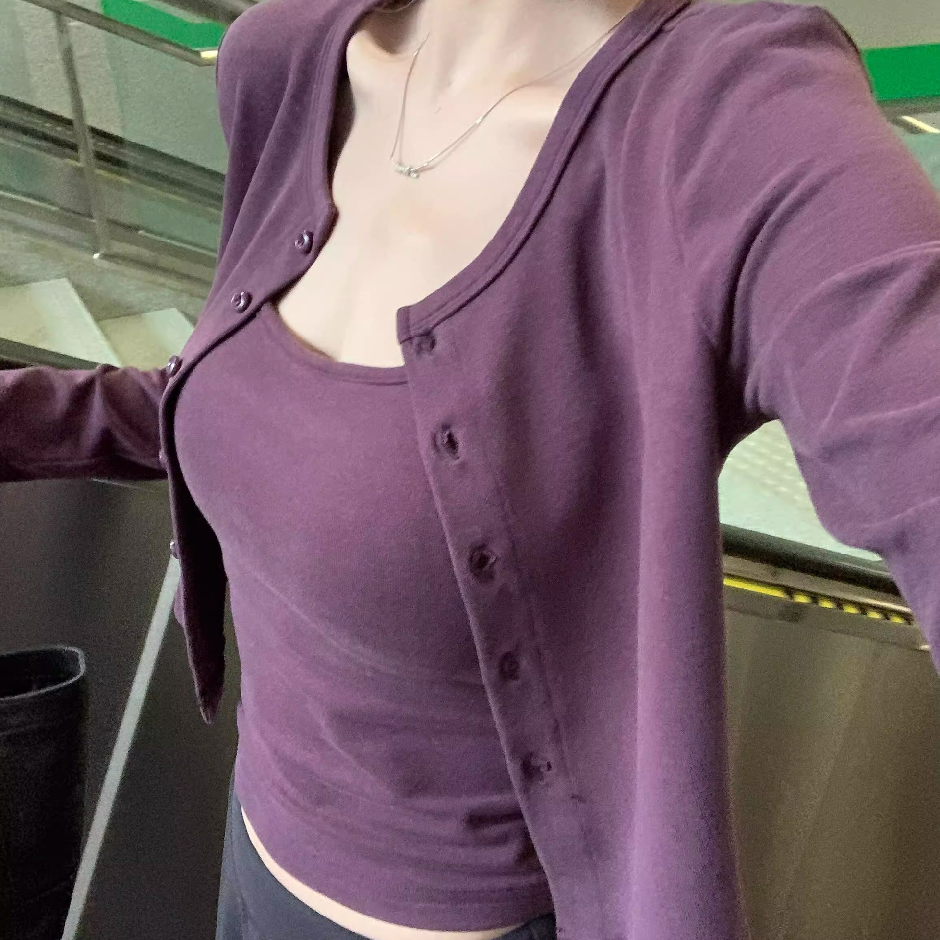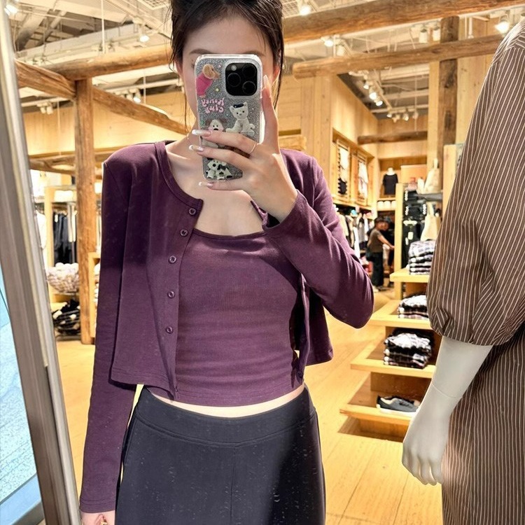 국경 간 가을과 겨울 모달 우아한 카미솔 내부 정리 니트 카디건 쇼트 탑 여성 의류스토어 가기