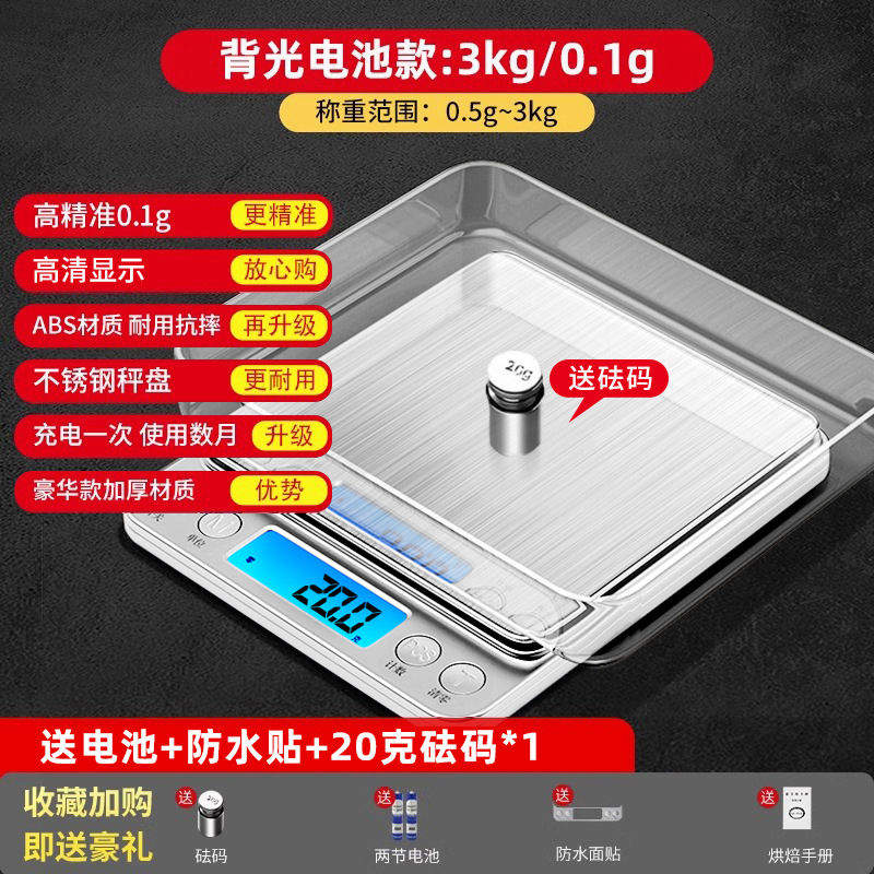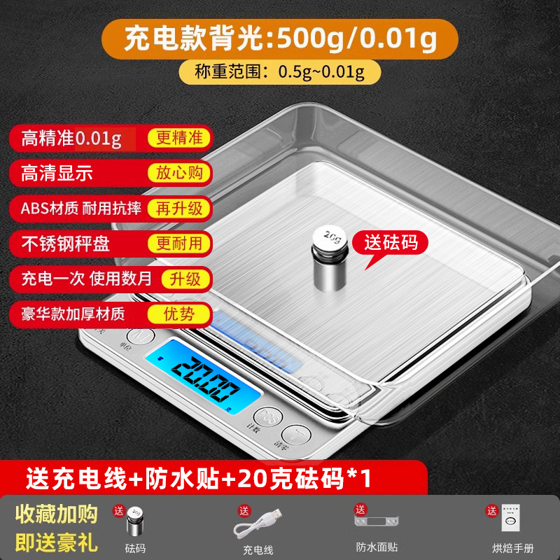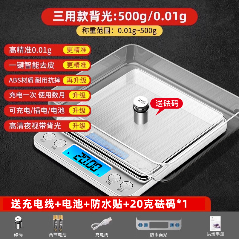 • 삼용 백라이트/3kg/0.1g에는 충전 케이블 + 배터리 + 5가지 사은품이 함께 제공됩니다.