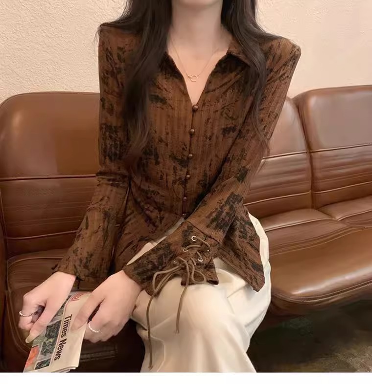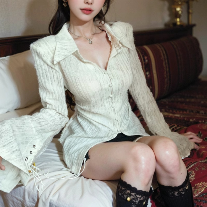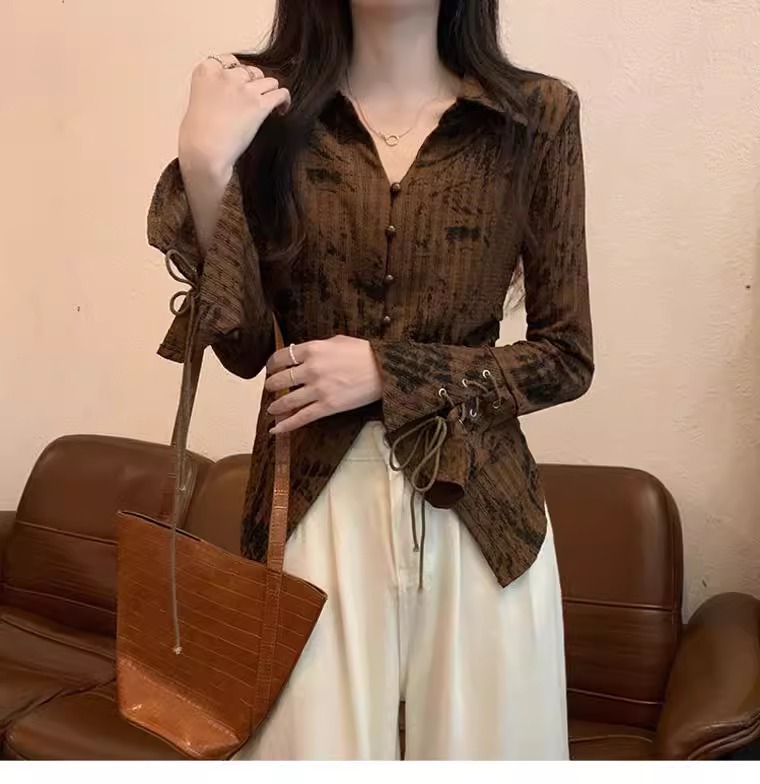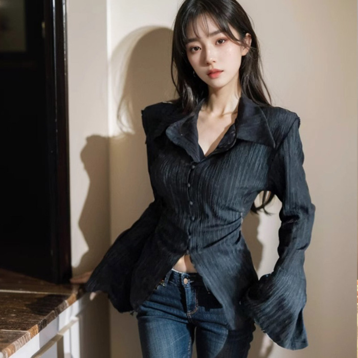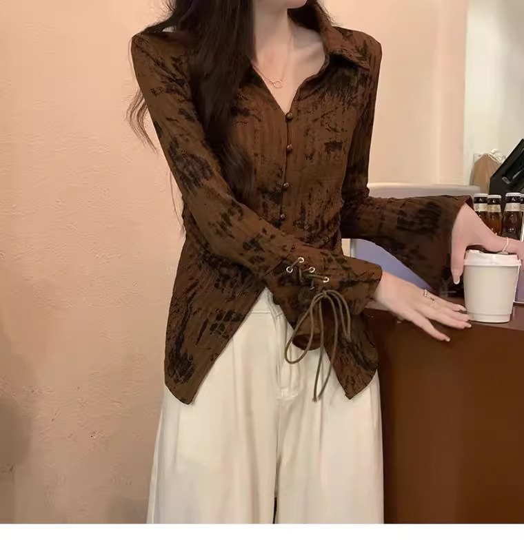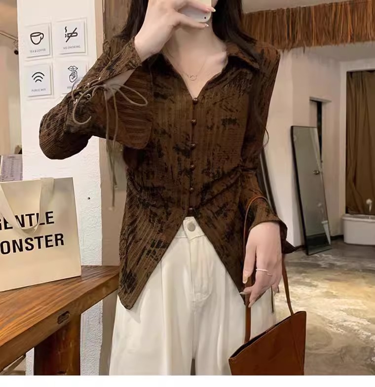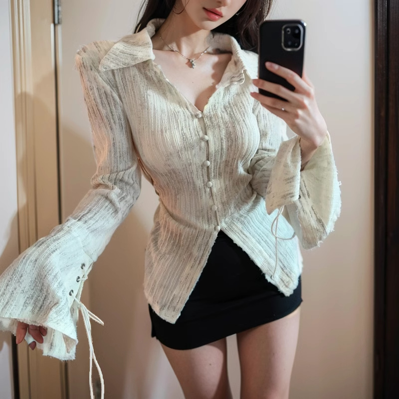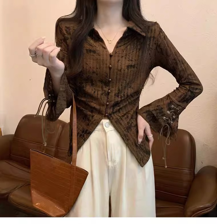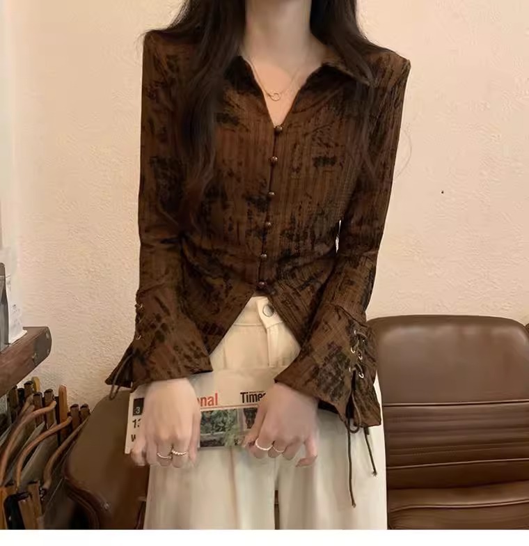 공식 그림 실제 가격 긴 소매 셔츠 여성의 가을 새로운 스파이스 소녀 슬림 핏 슬리밍 순수한 욕망 디자인 센스 옷깃 탑스토어 가기