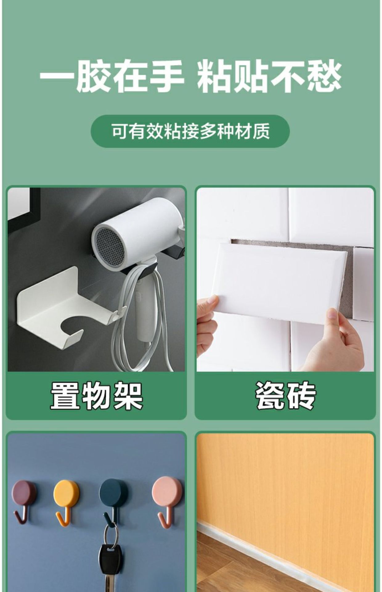 강력한 못없는 접착제 보관 랙 벽 고정 후크 구멍이없는 접착제 다목적 벽 타일 유리 접착제 목공스토어 가기