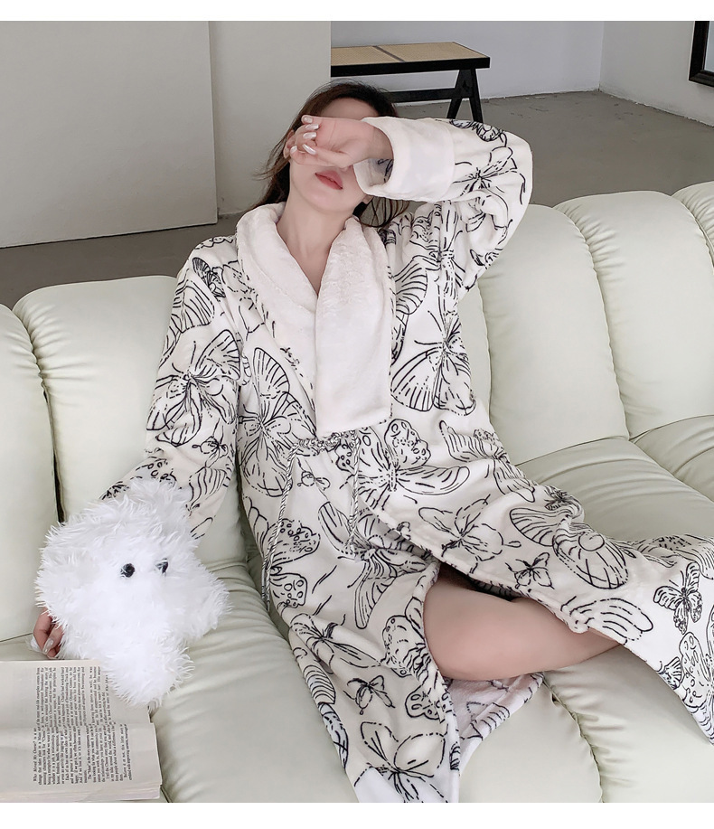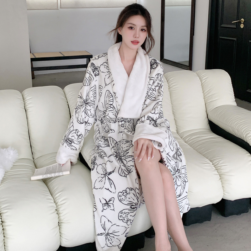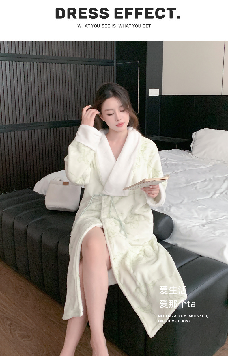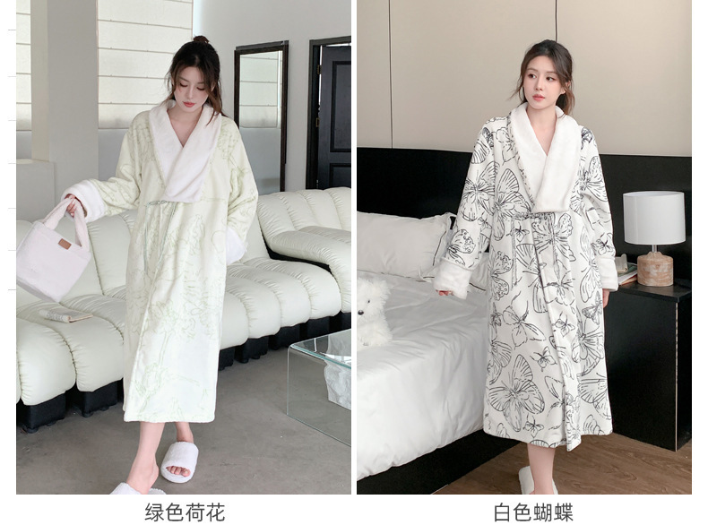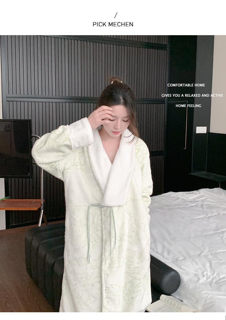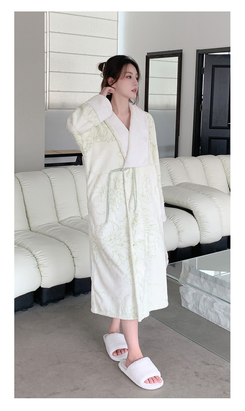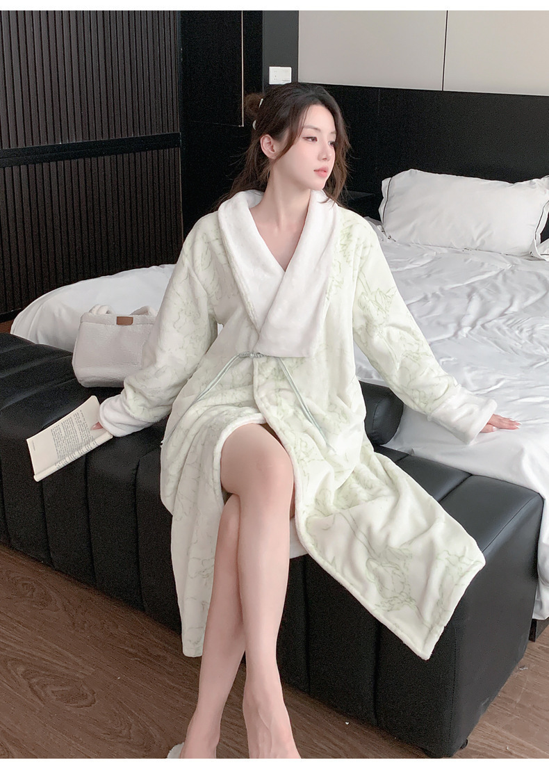 플란넬 나이트 가운 원피스 여성 두꺼운 긴 중국 버클 성인 호텔 플러스 사이즈 고급 양털 산호 양털 가을과 겨울 잠옷스토어 가기
