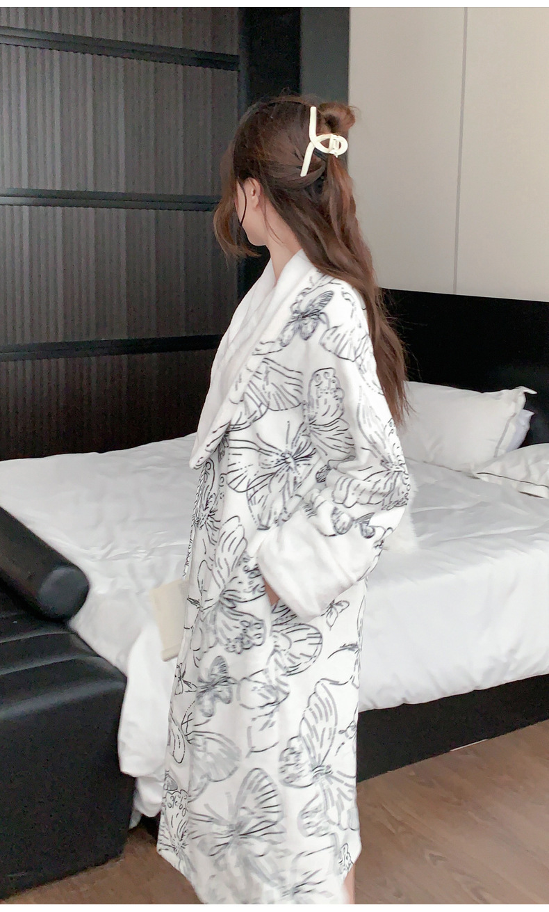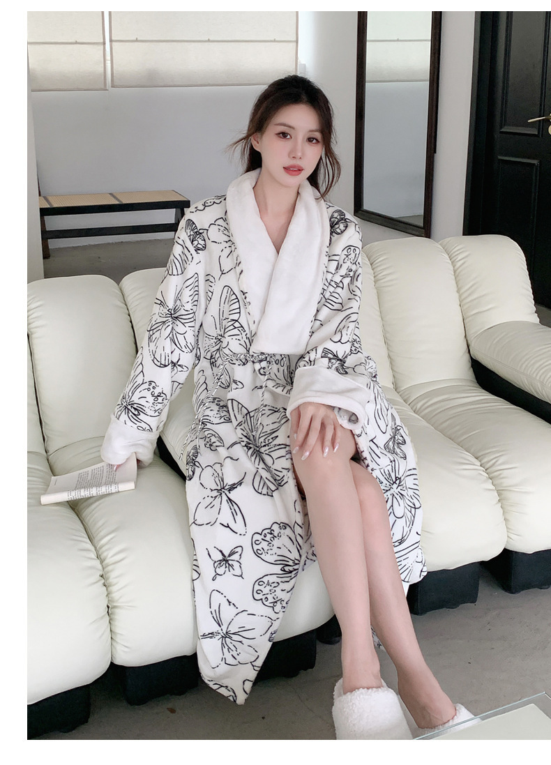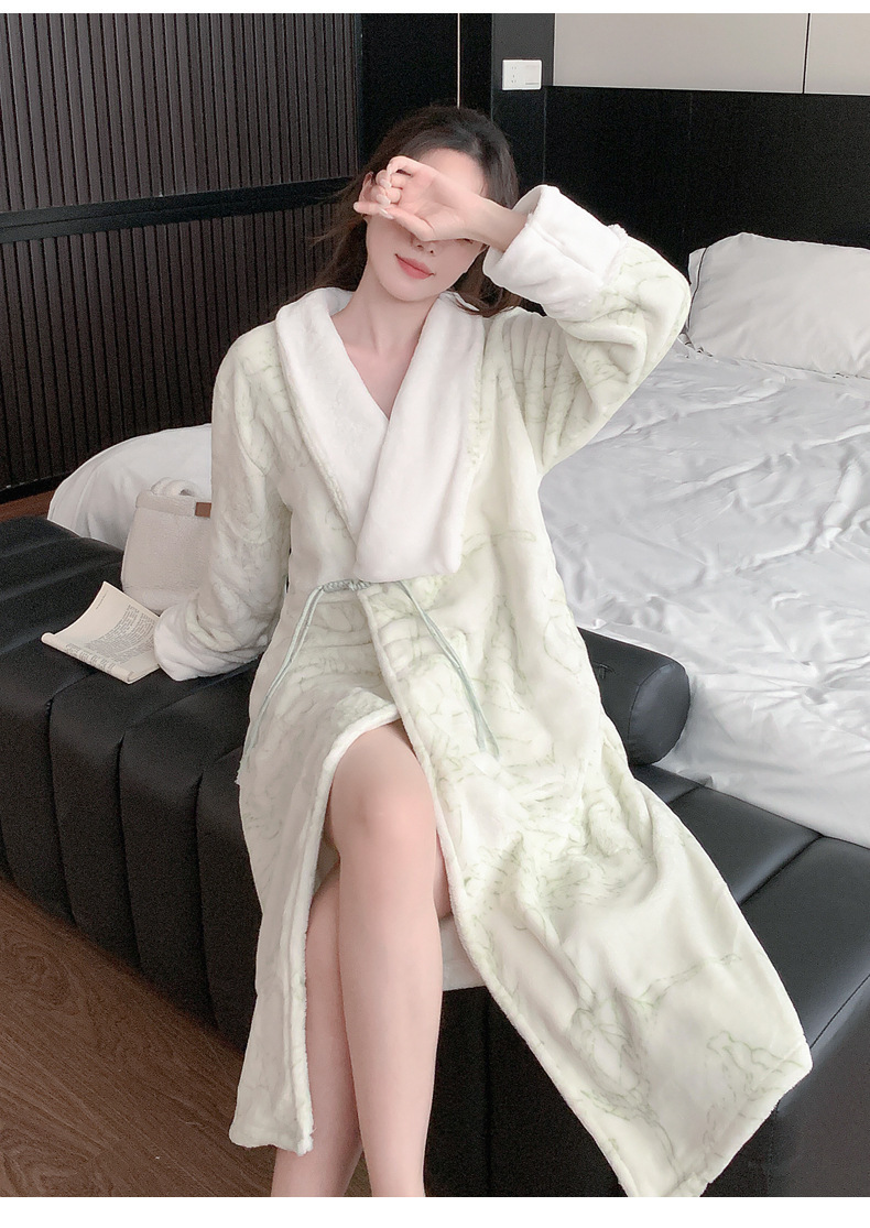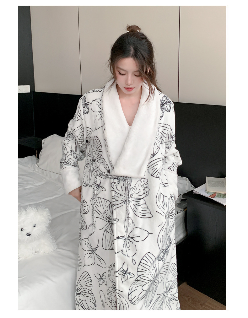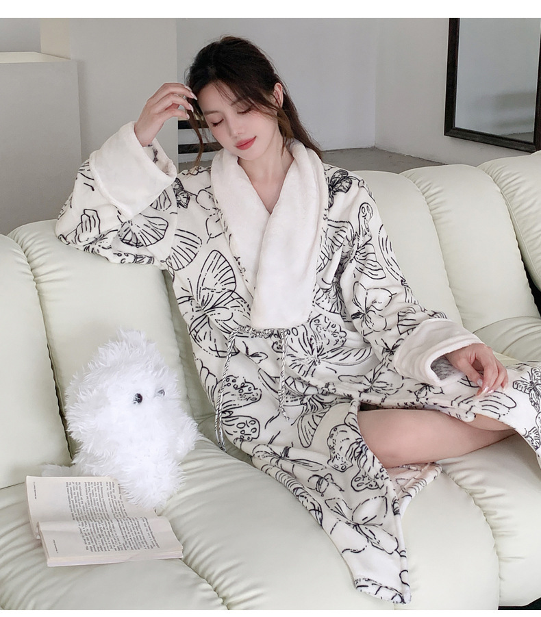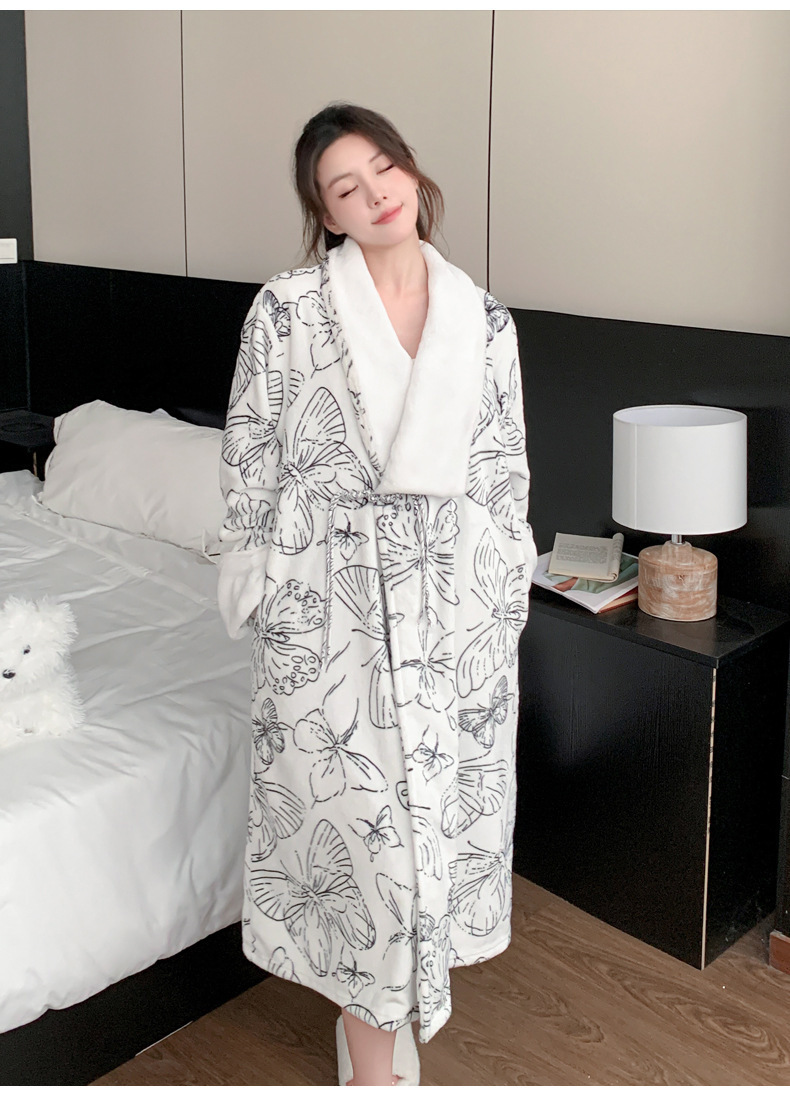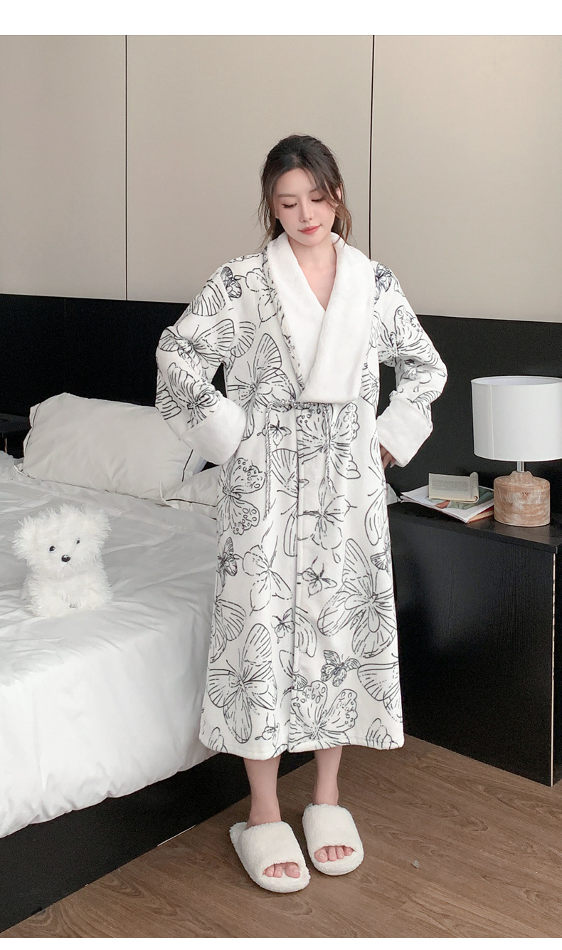 플란넬 나이트 가운 원피스 여성 두꺼운 긴 중국 버클 성인 호텔 플러스 사이즈 고급 양털 산호 양털 가을과 겨울 잠옷스토어 가기