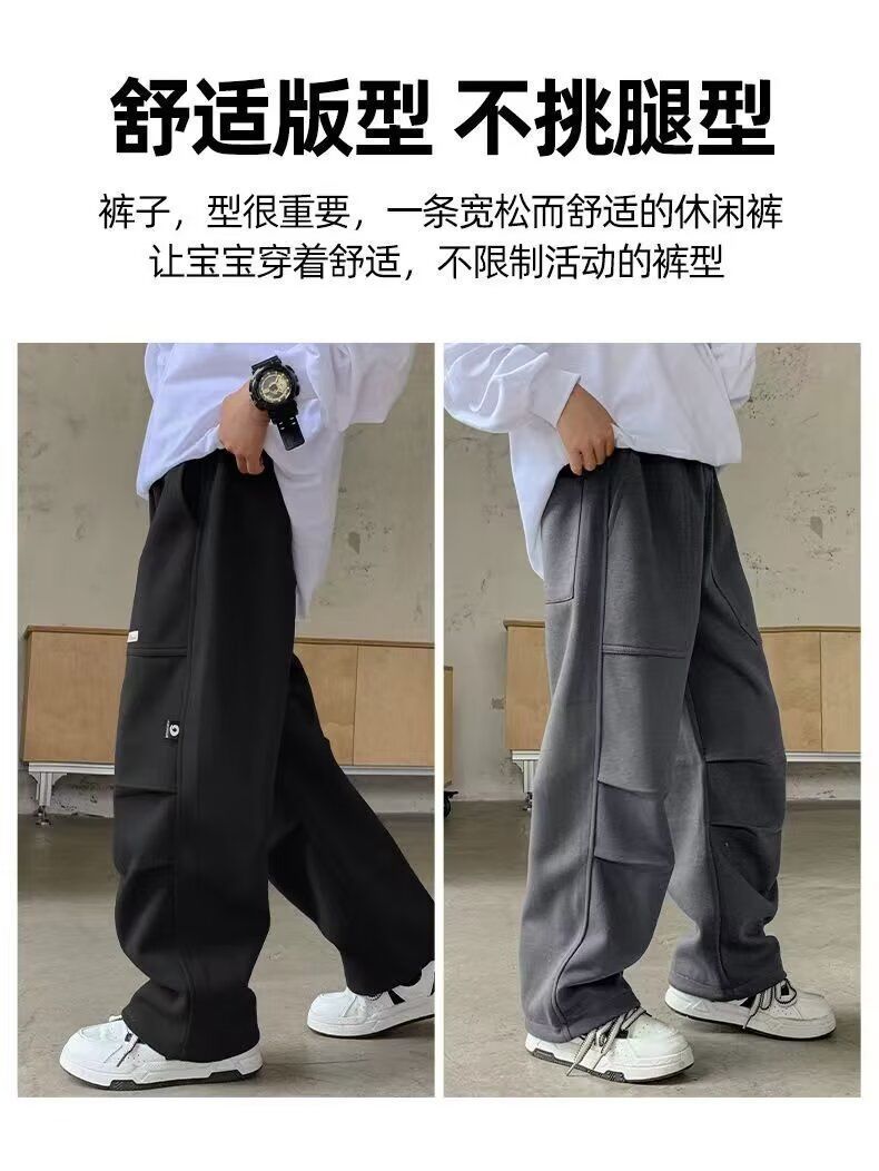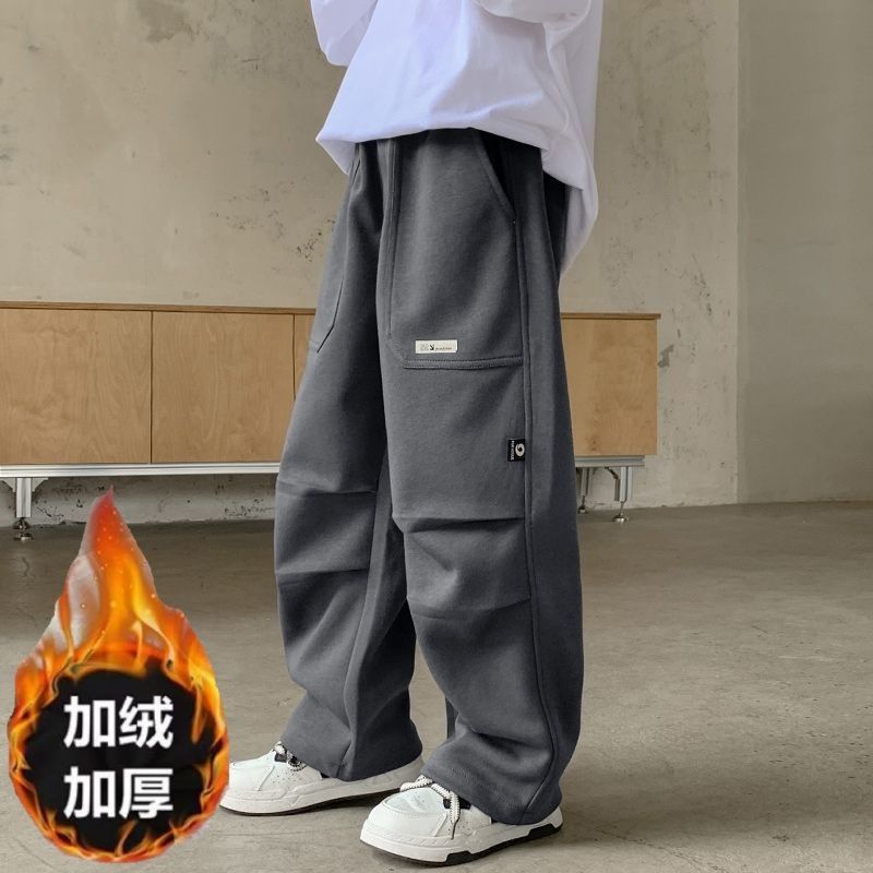 남학생 기모 바지 겨울 2024 새로운 한 조각 양털 어린이 주술 바지 가을과 겨울 중 큰 어린이 캐주얼 바지스토어 가기
