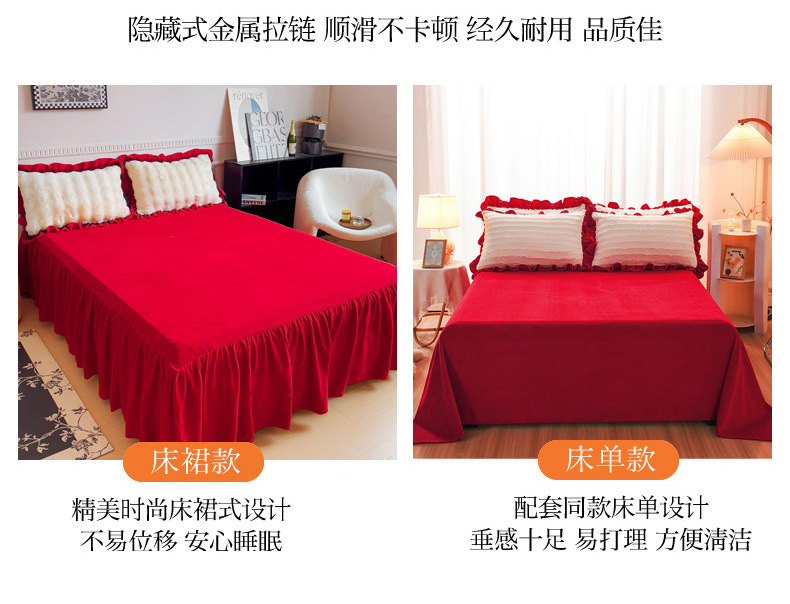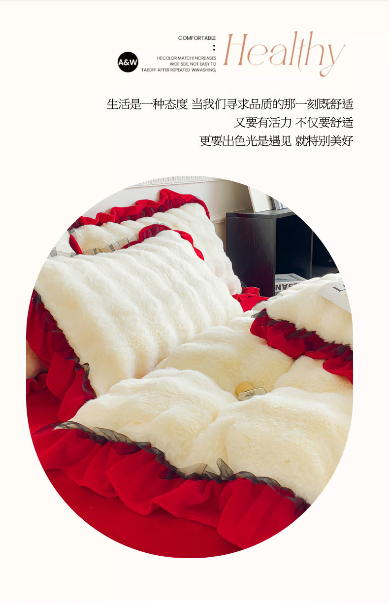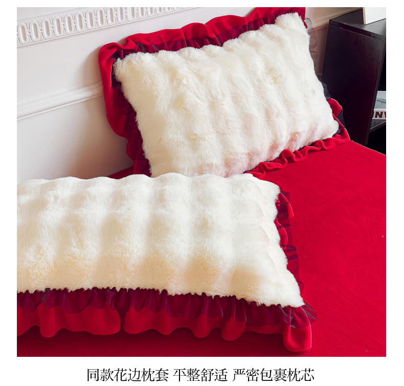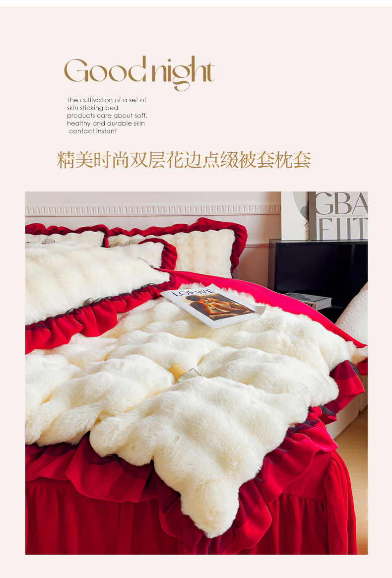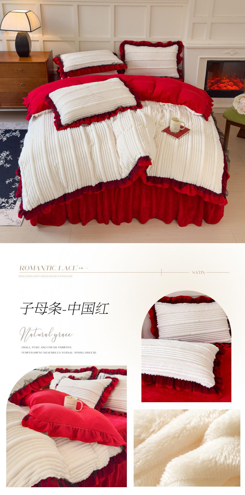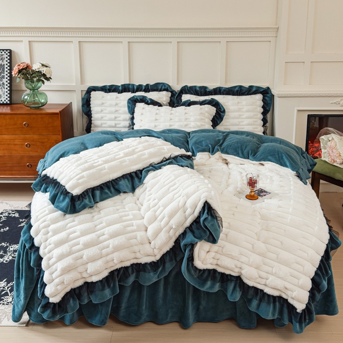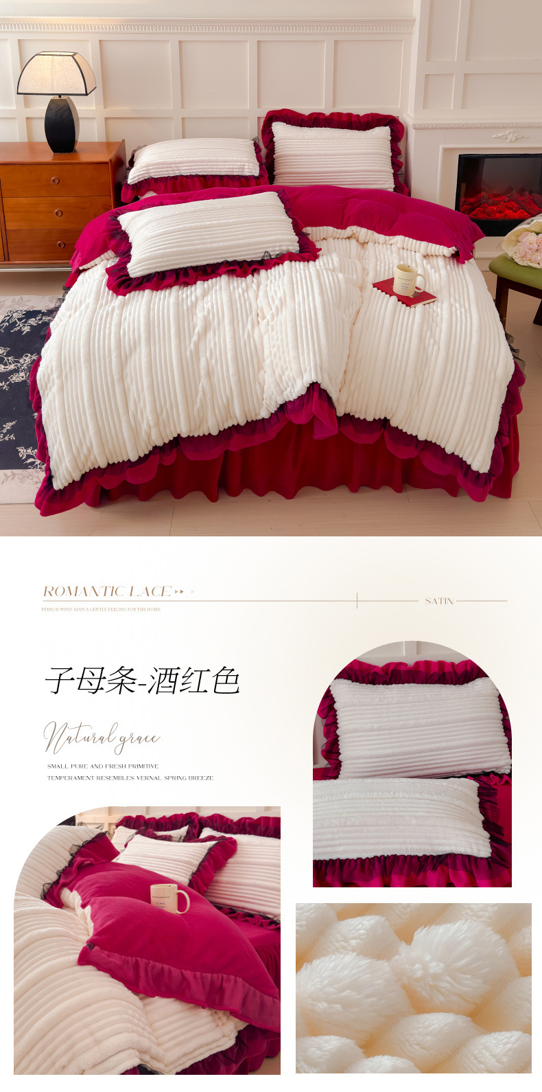 두꺼운 따뜻한 토끼 토끼 벨벳 우유 벨벳 침대 스커트 시트 4 피스 세트의 2024 새로운 한국어 버전