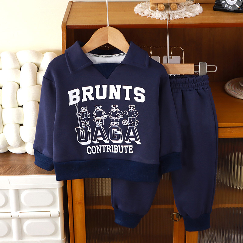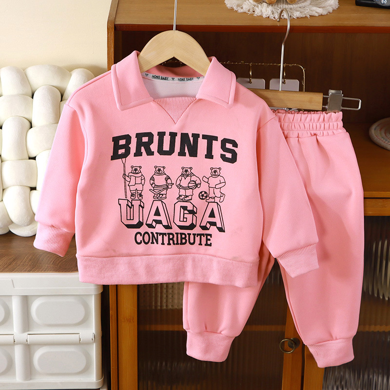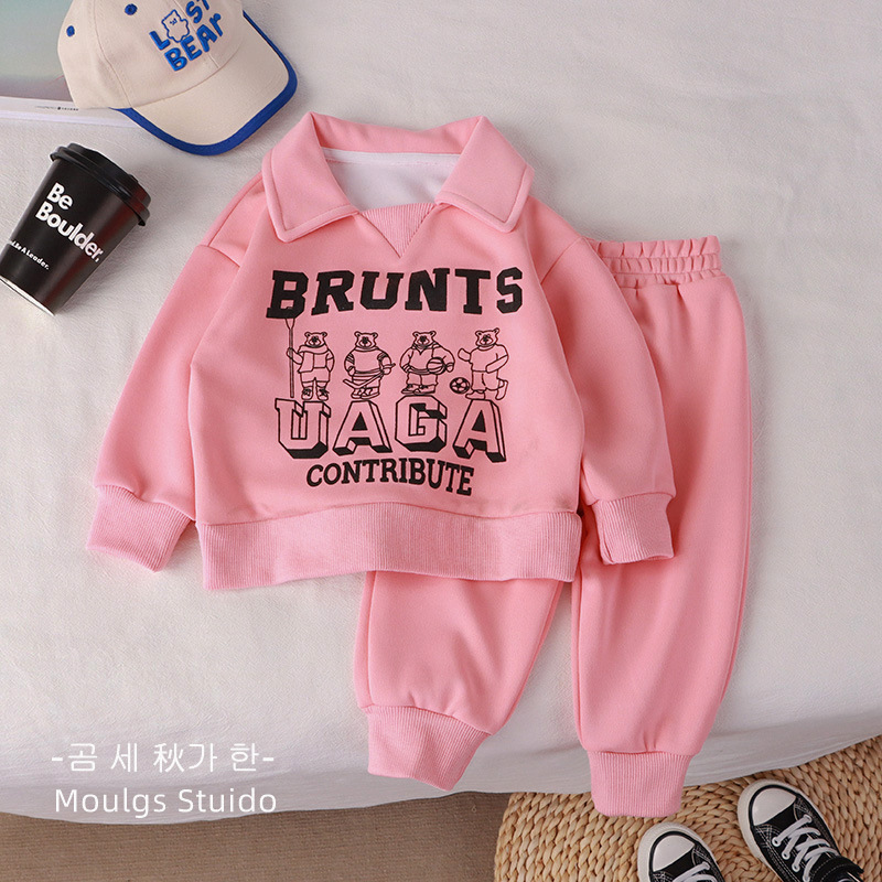 어린이 폴로 셔츠 스웨터 세트 가을과 겨울 새로운 소년 소녀 스포츠 옷깃 패션 최고 중형 및 대형 아동복 도매