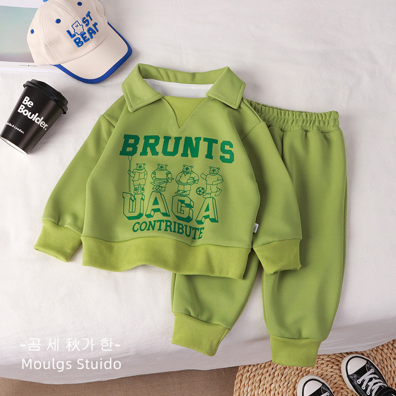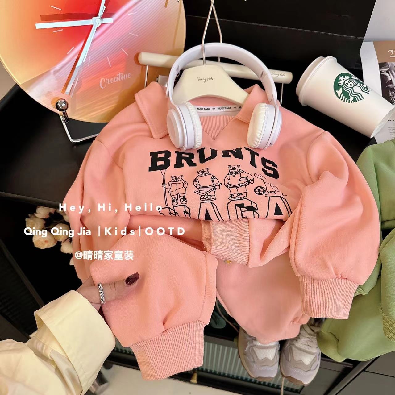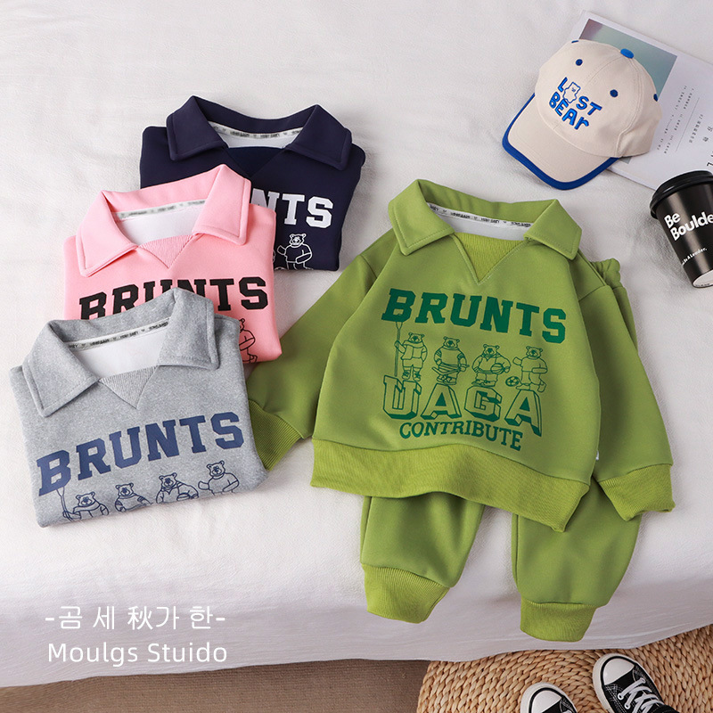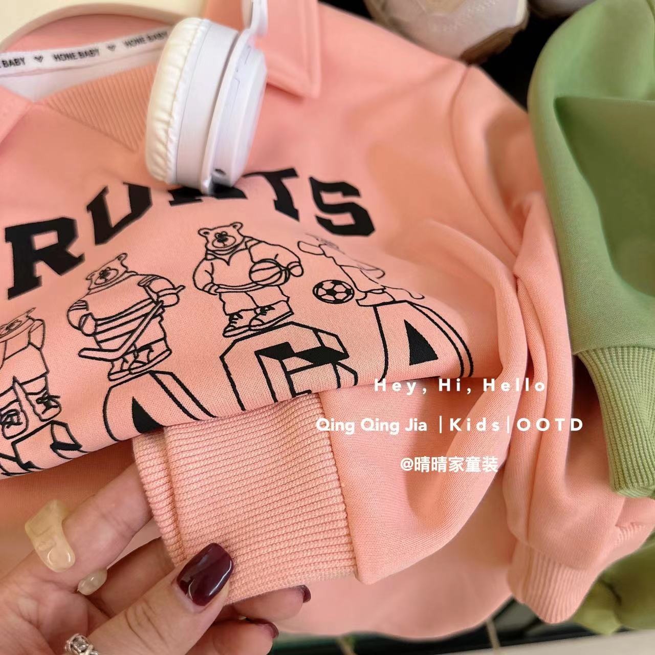 어린이 폴로 셔츠 스웨터 세트 가을과 겨울 새로운 소년 소녀 스포츠 옷깃 패션 최고 중형 및 대형 아동복 도매스토어 가기