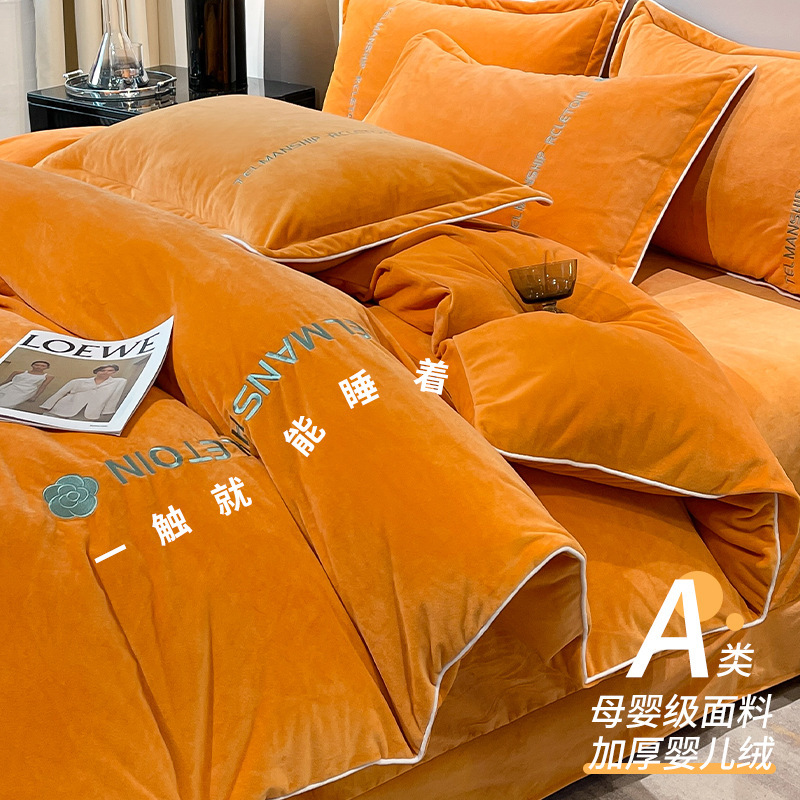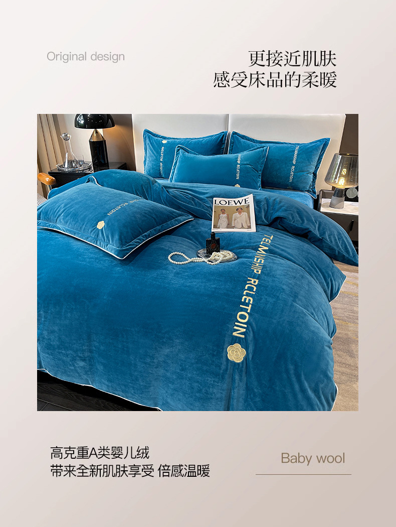 加厚保暖埋绳款山茶花简约风纯色婴儿绒母婴级牛奶绒工厂贸易