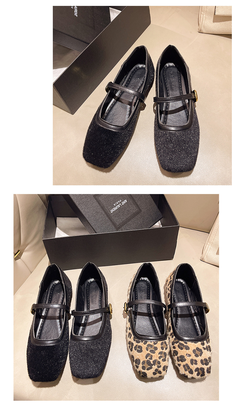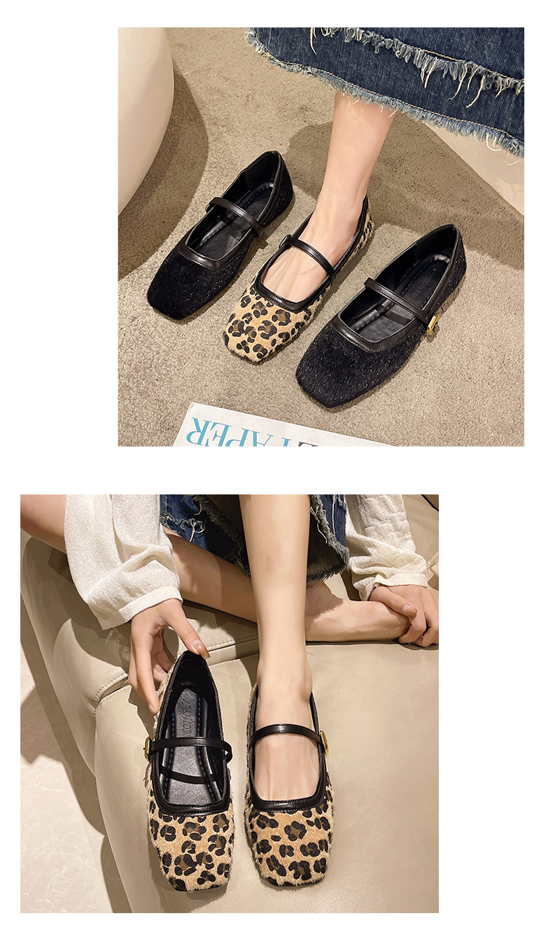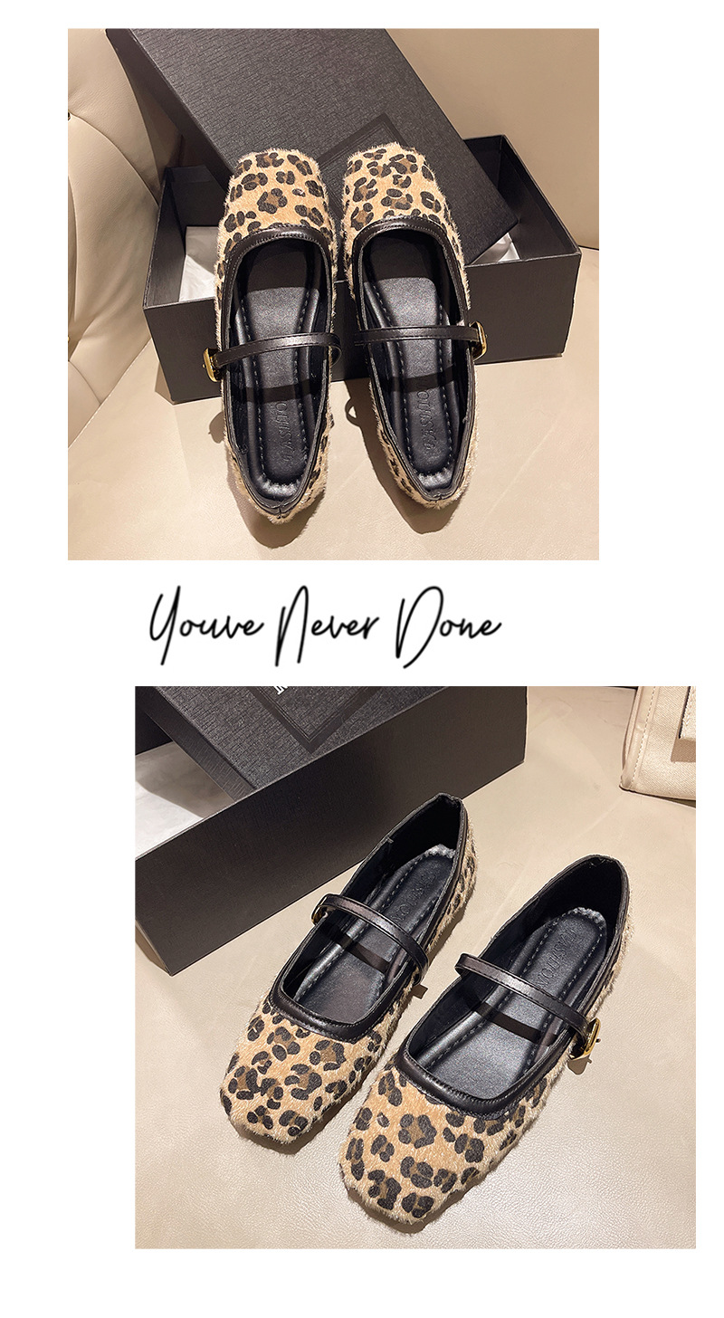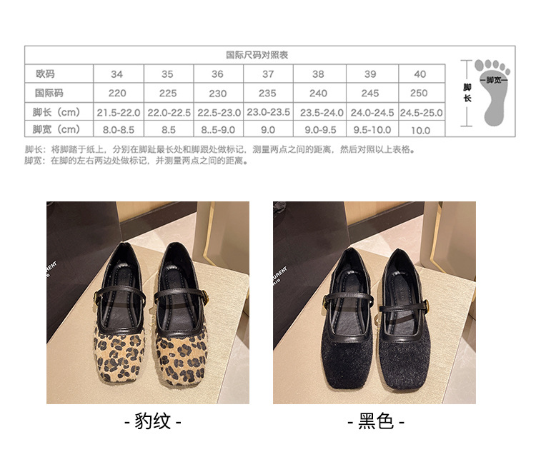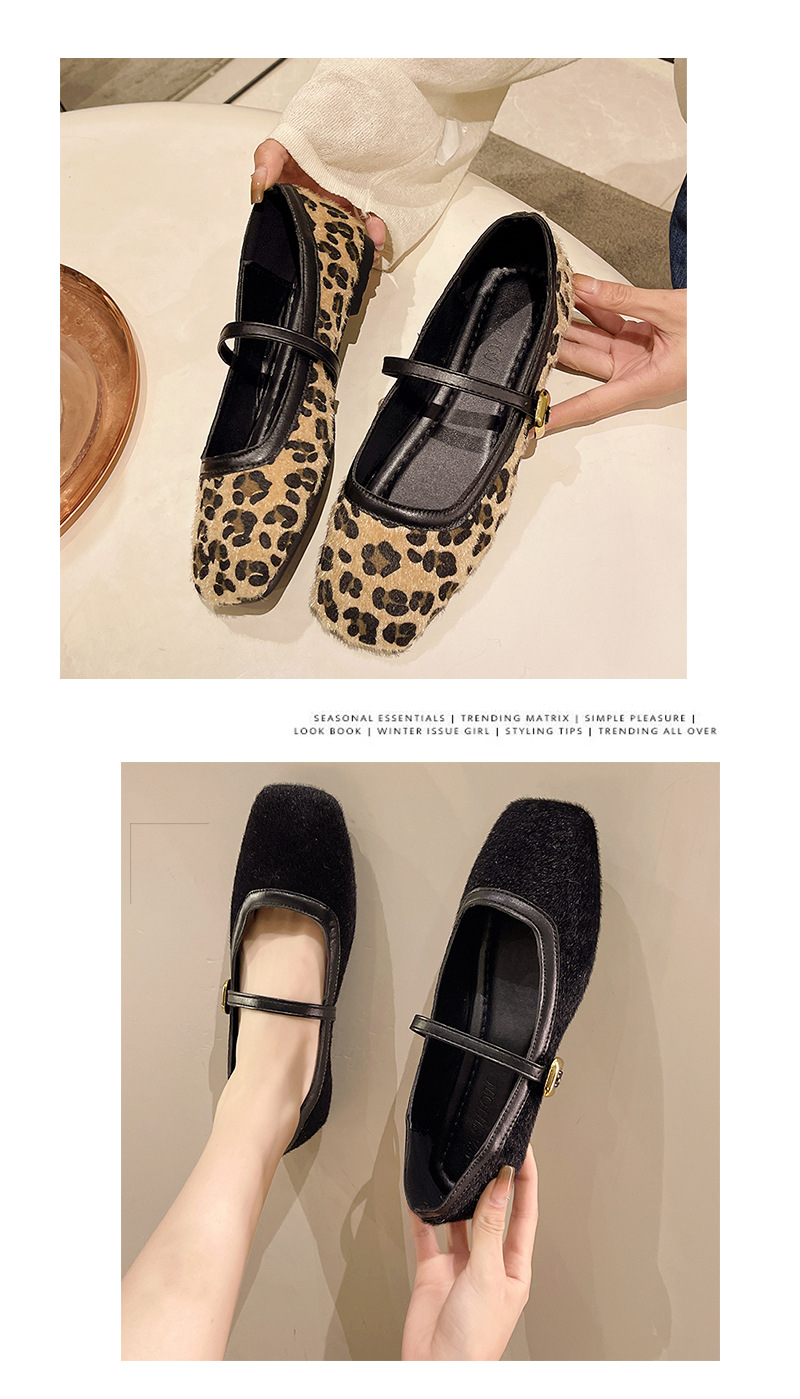 가을 2024 새로운 패션 레오파드 무늬 캐주얼 신발 금속 장식 신발 광장 머리 얕은 입 싱글 신발 도매스토어 가기