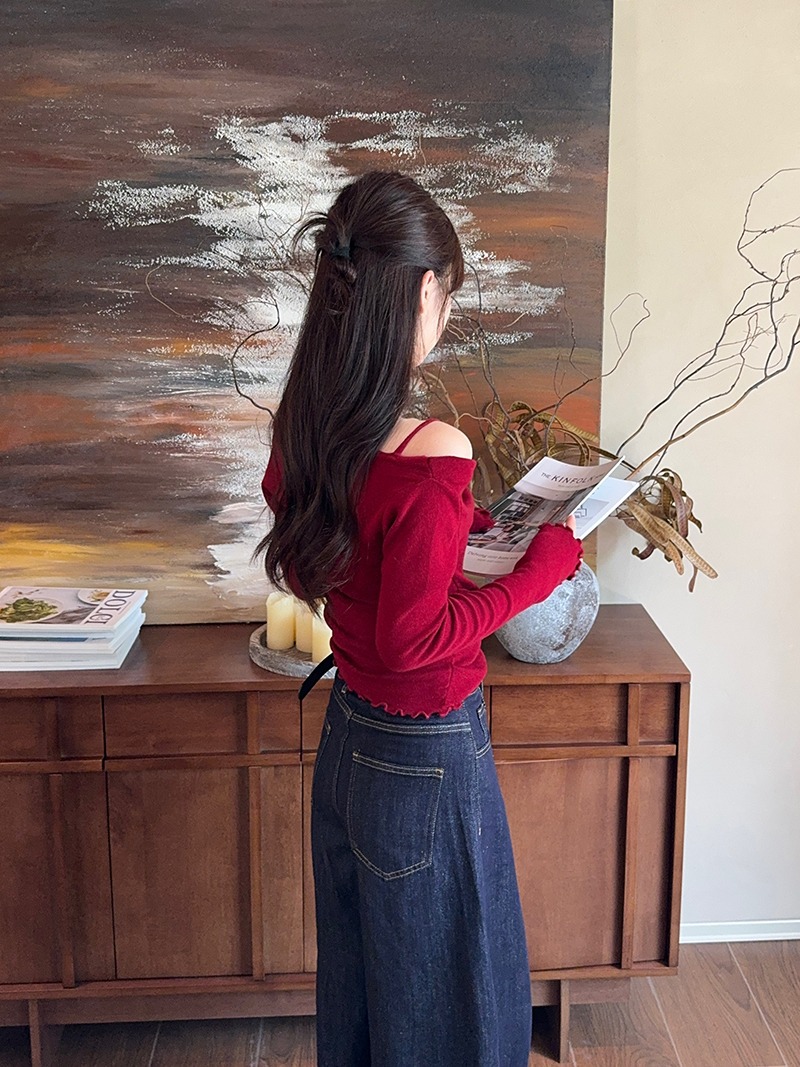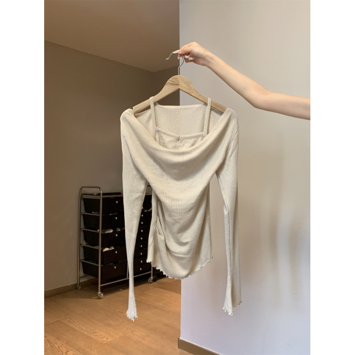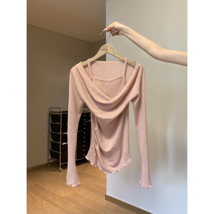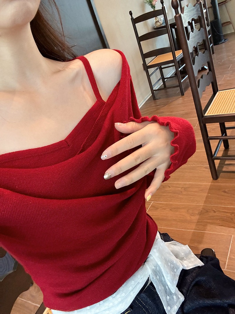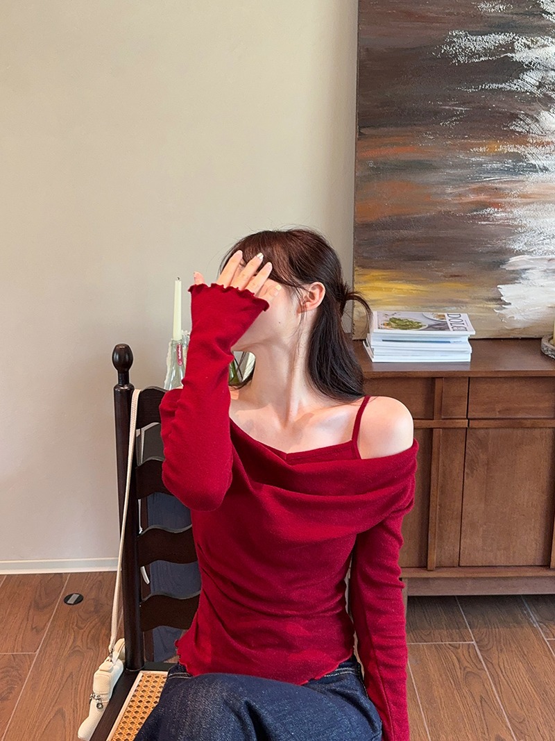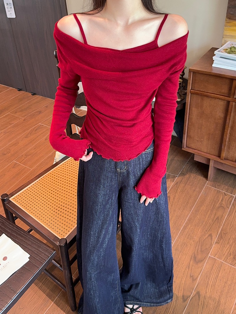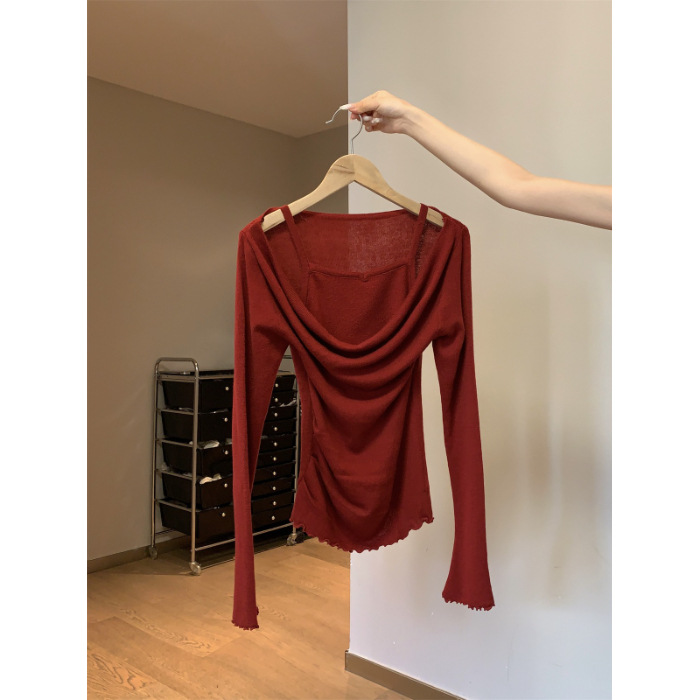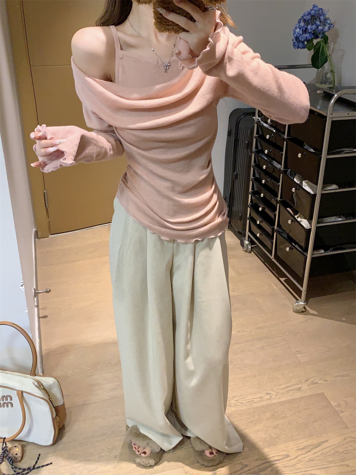 국경 간 세대 헤어 가을과 겨울 스윙 칼라 나무 귀 트림 얇은 기질 가짜 투피스 긴팔 스웨터 여성용 겉옷 탑스토어 가기