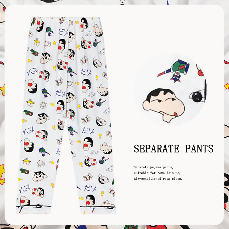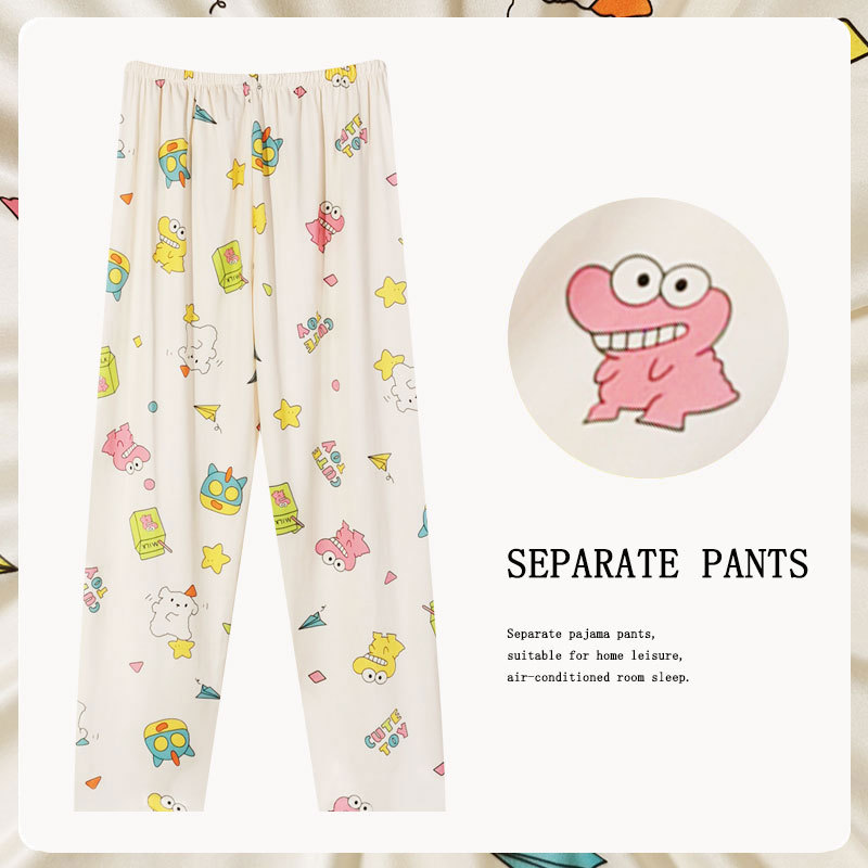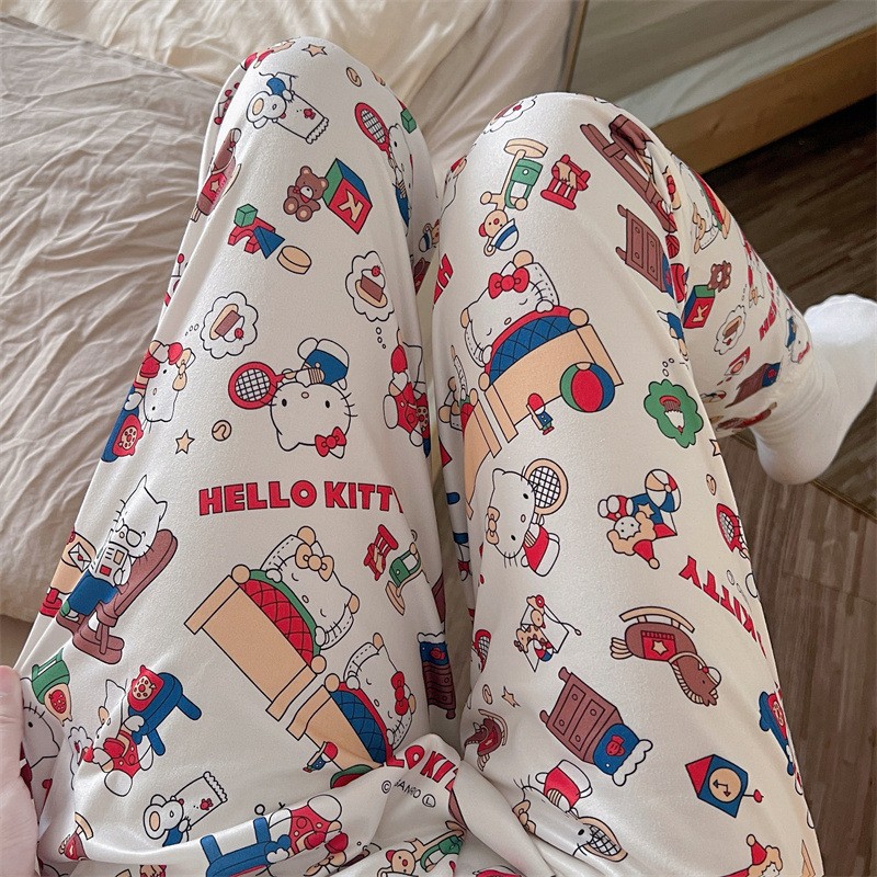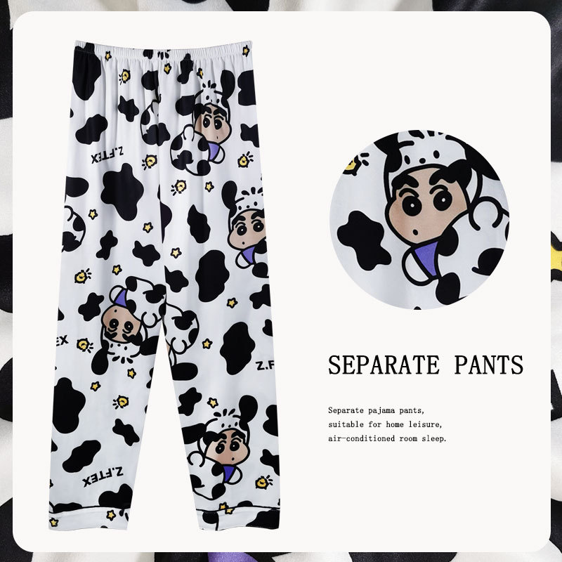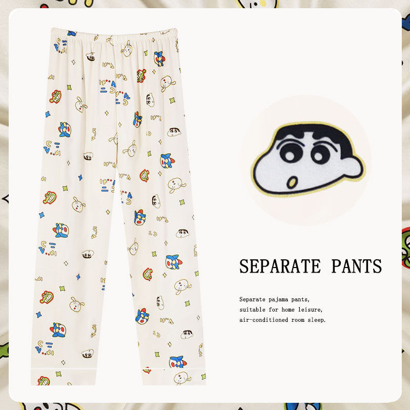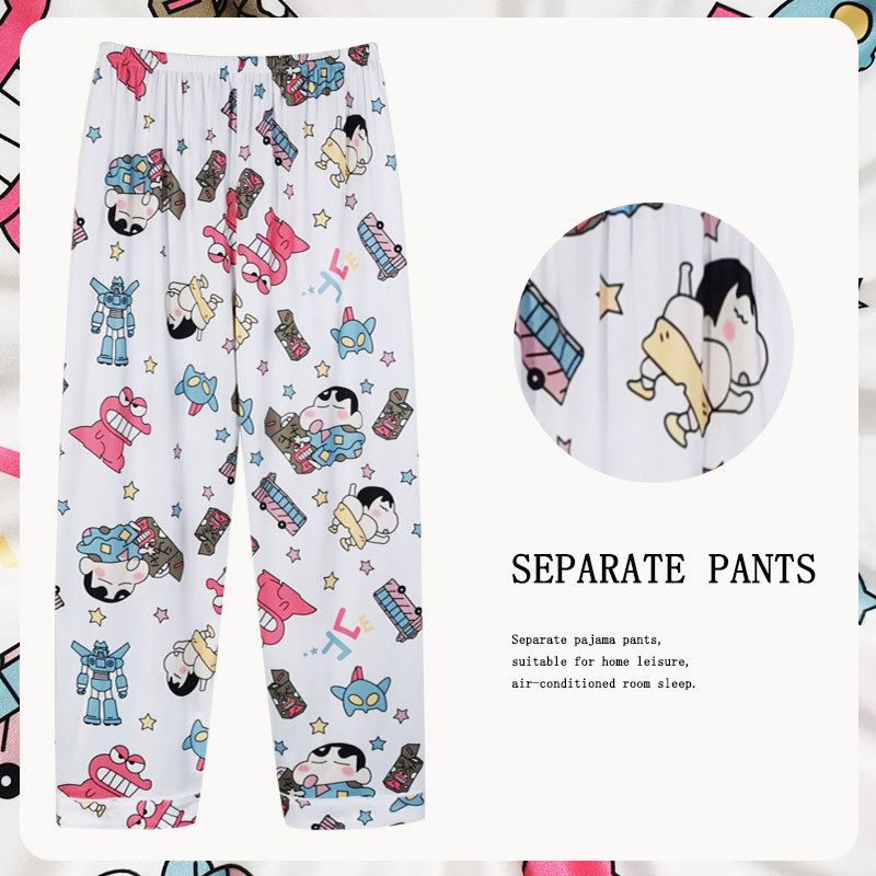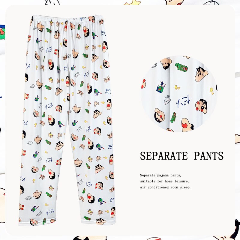 Moe Fun 만화 걷는 남녀 파자마 바지 봄과 가을 사이버 축하 헬로 키티 크레용 신 뉴 코튼 홈 에어컨 바지스토어 가기